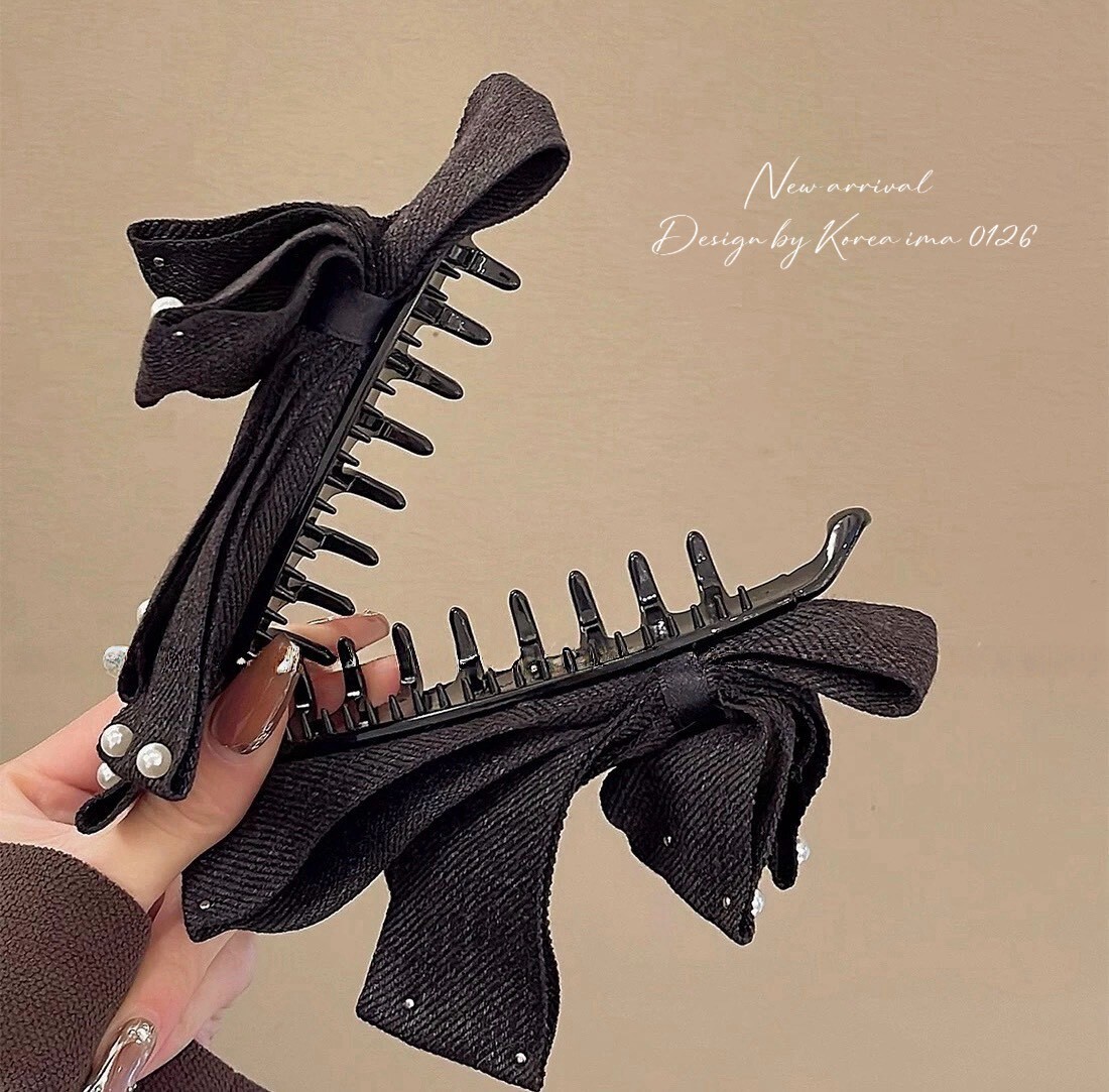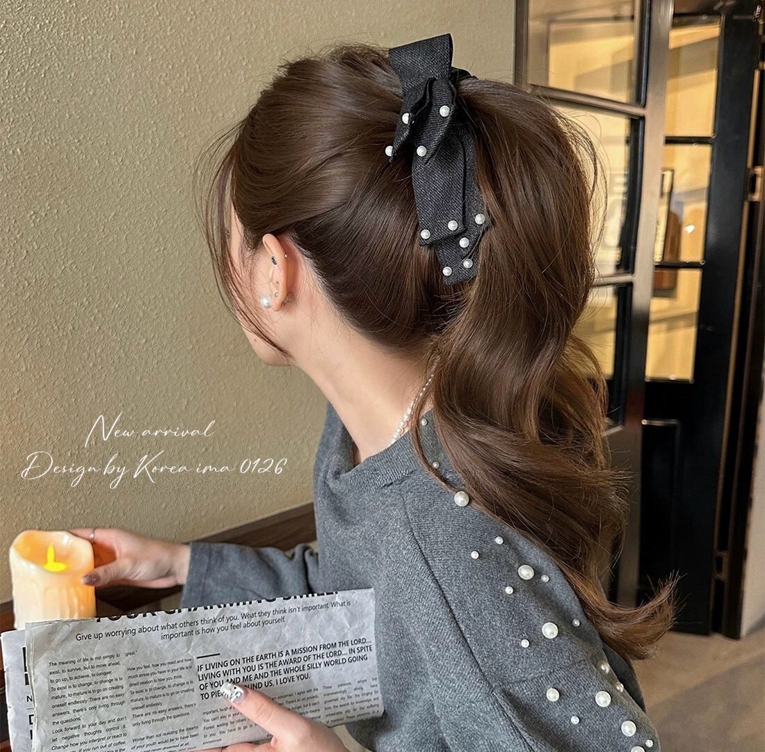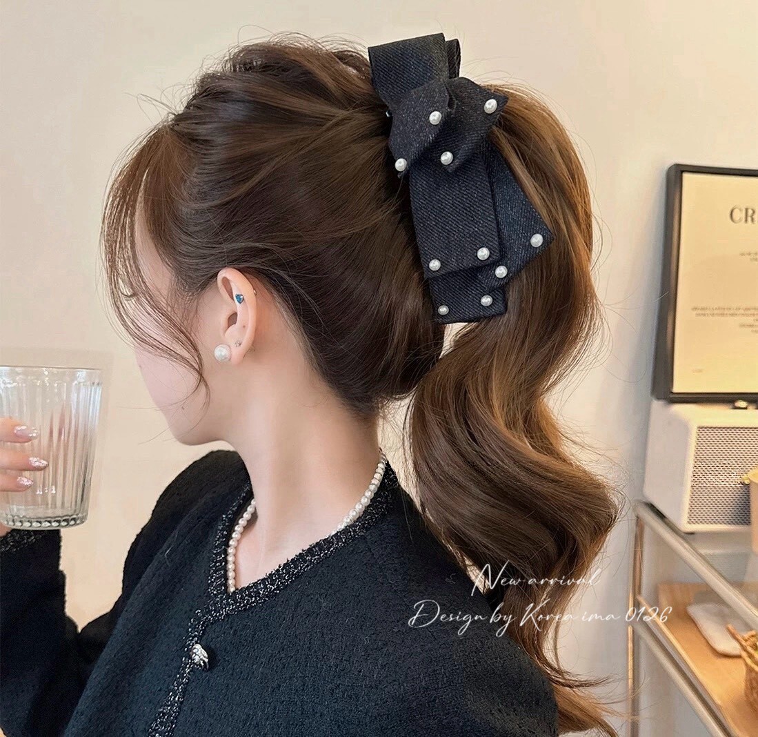 *o-ha-you*【FEM205009】韓KOREA氣質名媛蝴蝶結綴珍珠髮夾香蕉夾馬尾