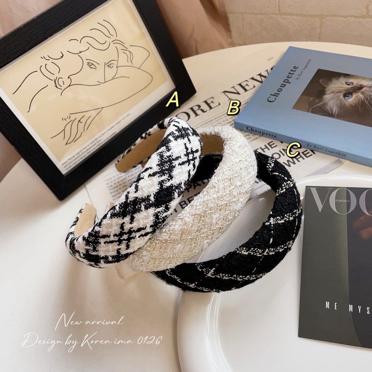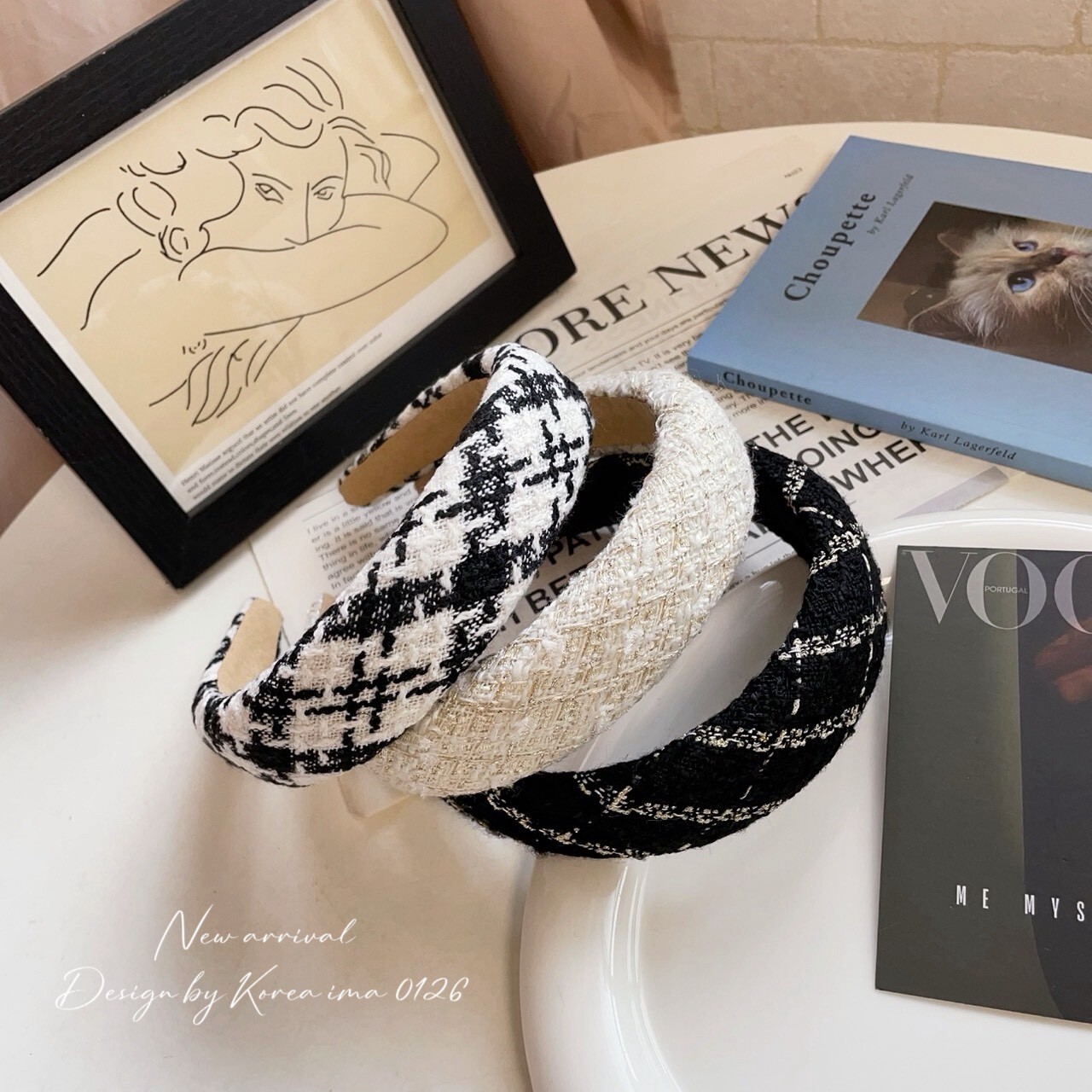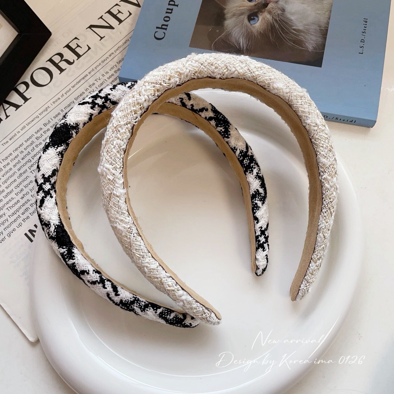 *o-ha-you*【FEM205013】韓KOREA甜美毛呢感小香風金蔥髮箍-3色
