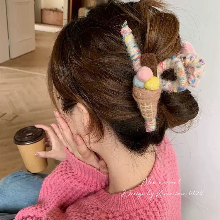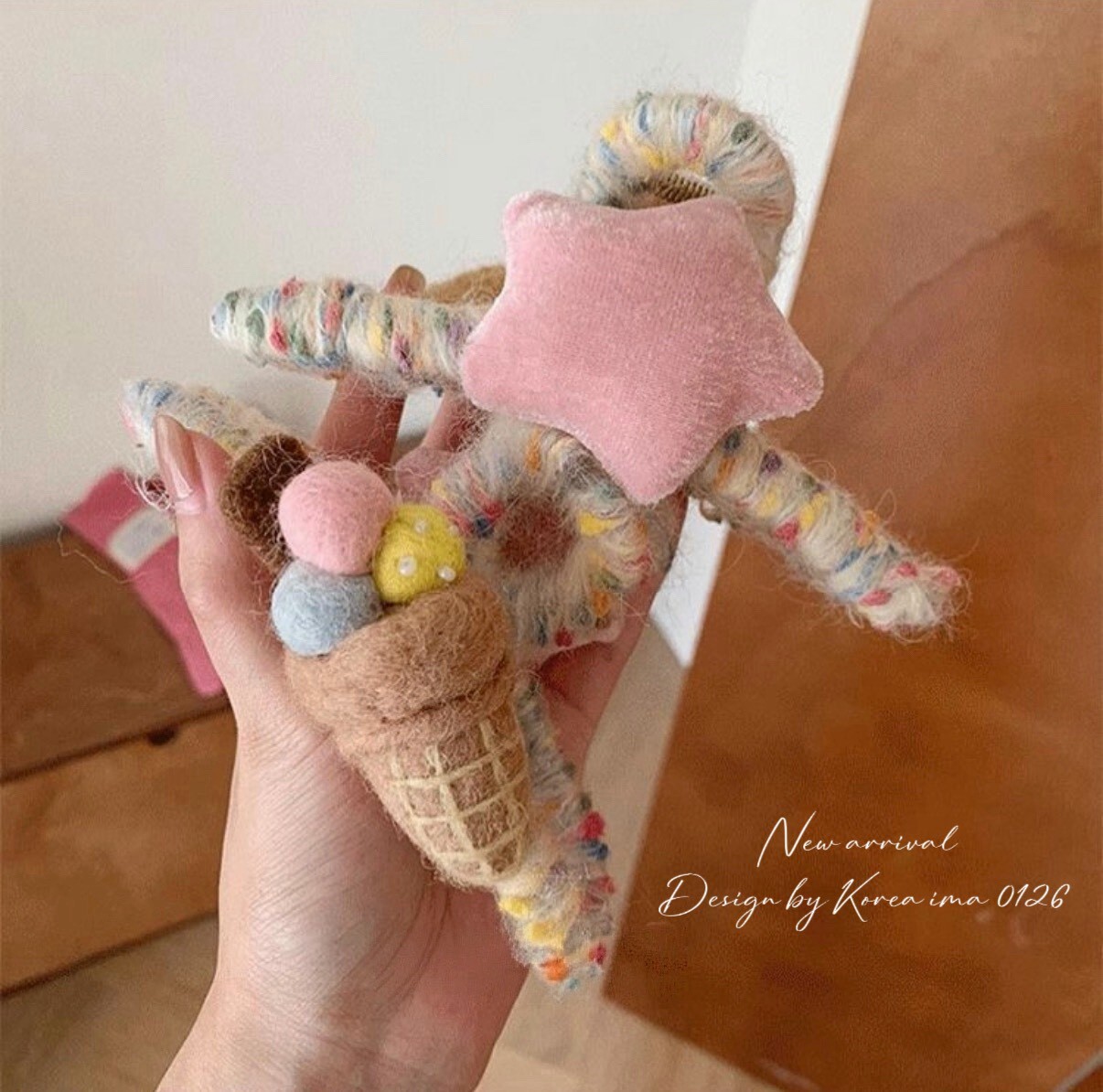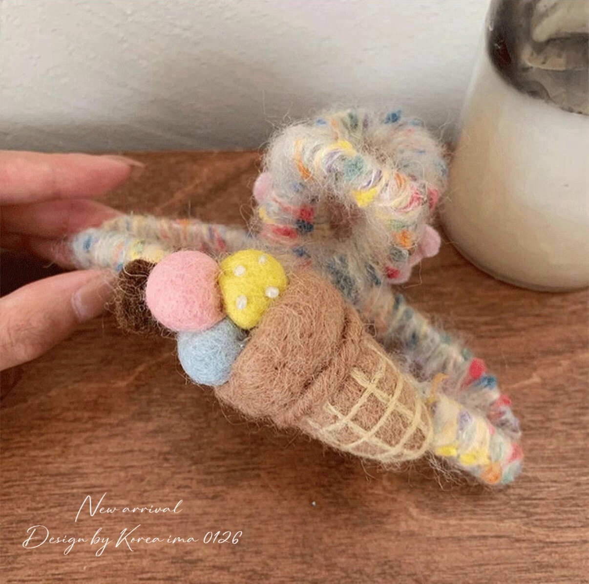 *o-ha-you*【FEM205015】韓KOREA甜甜冰淇淋彩色毛球羊毛氈抓夾髮夾鯊魚夾-2色