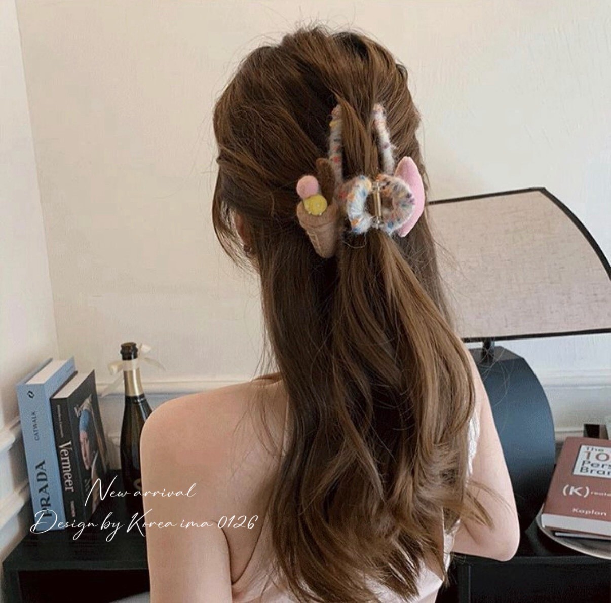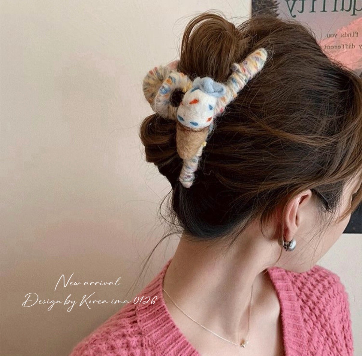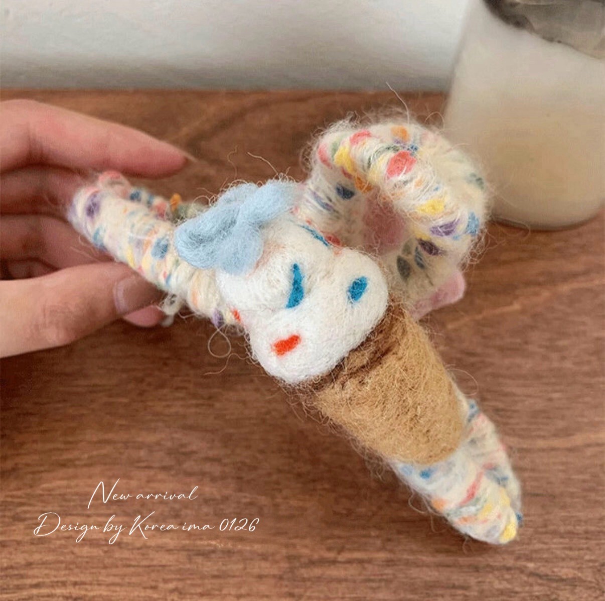 *o-ha-you*【FEM205015】韓KOREA甜甜冰淇淋彩色毛球羊毛氈抓夾髮夾鯊魚夾-2色