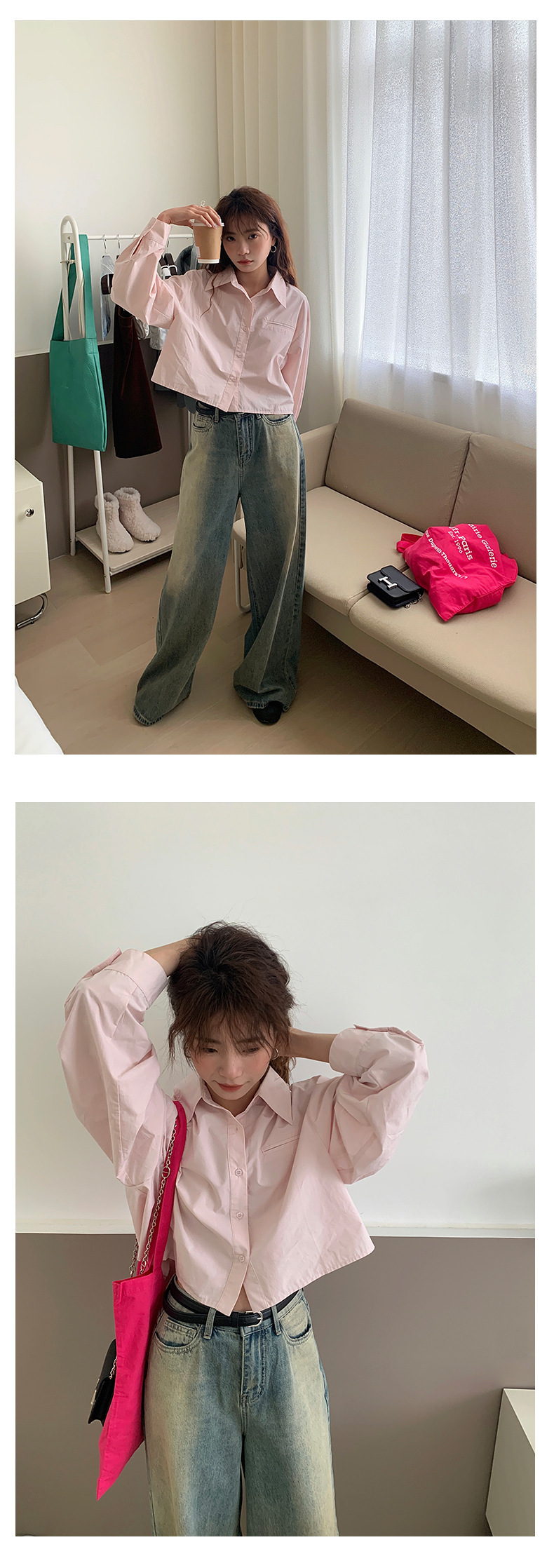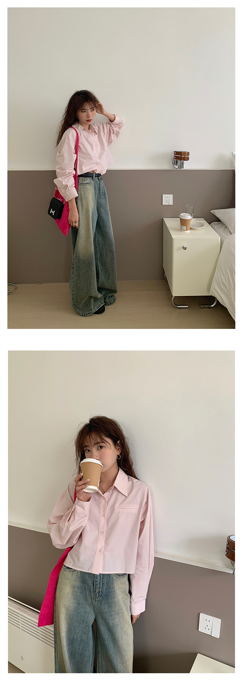 *o-ha-you*【FHZ141CH1056】簡約小個子短長袖襯衫2024春韓版休閒開襟衫襯衣-3色-如有需要請先諮詢