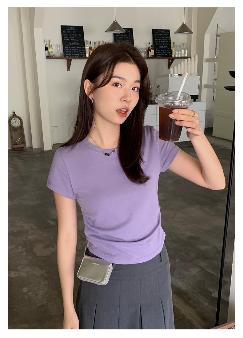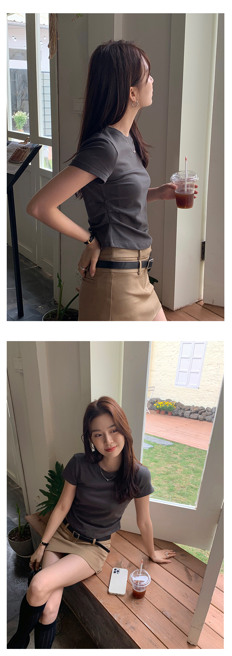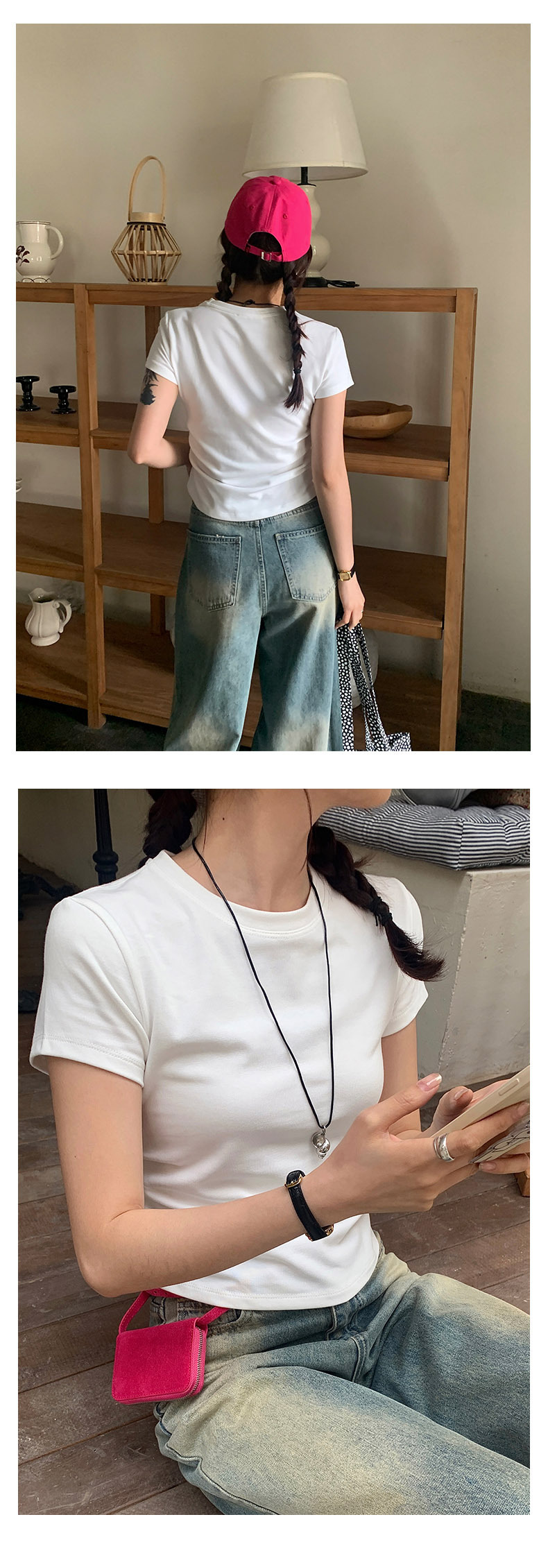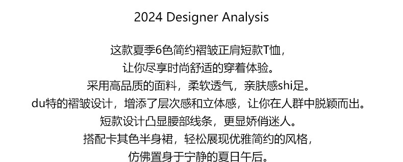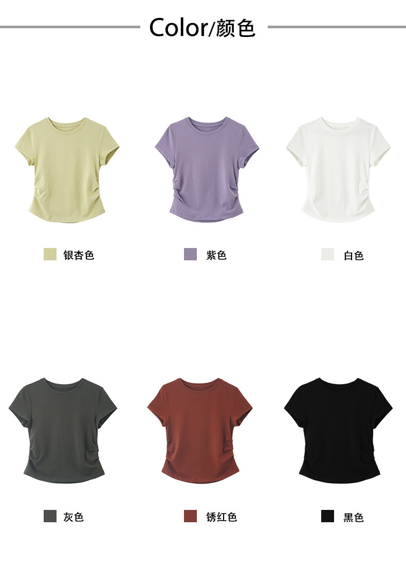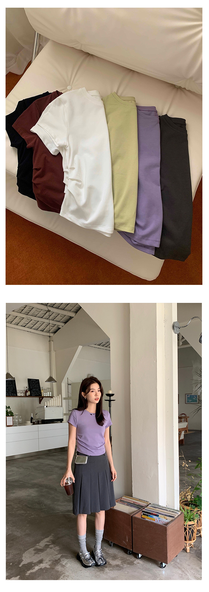 *o-ha-you*【FHZ141TH1095】6色簡約褶皺正肩短版T恤2024夏季韓版修身短袖上衣-如有需要請先諮詢