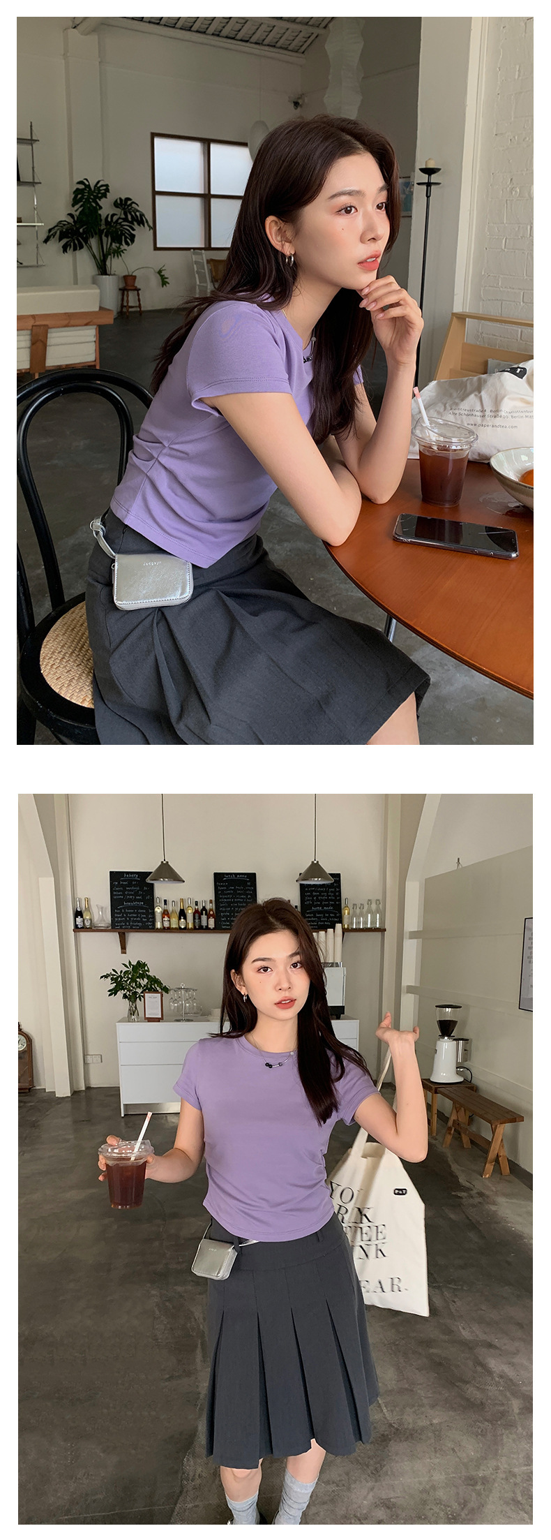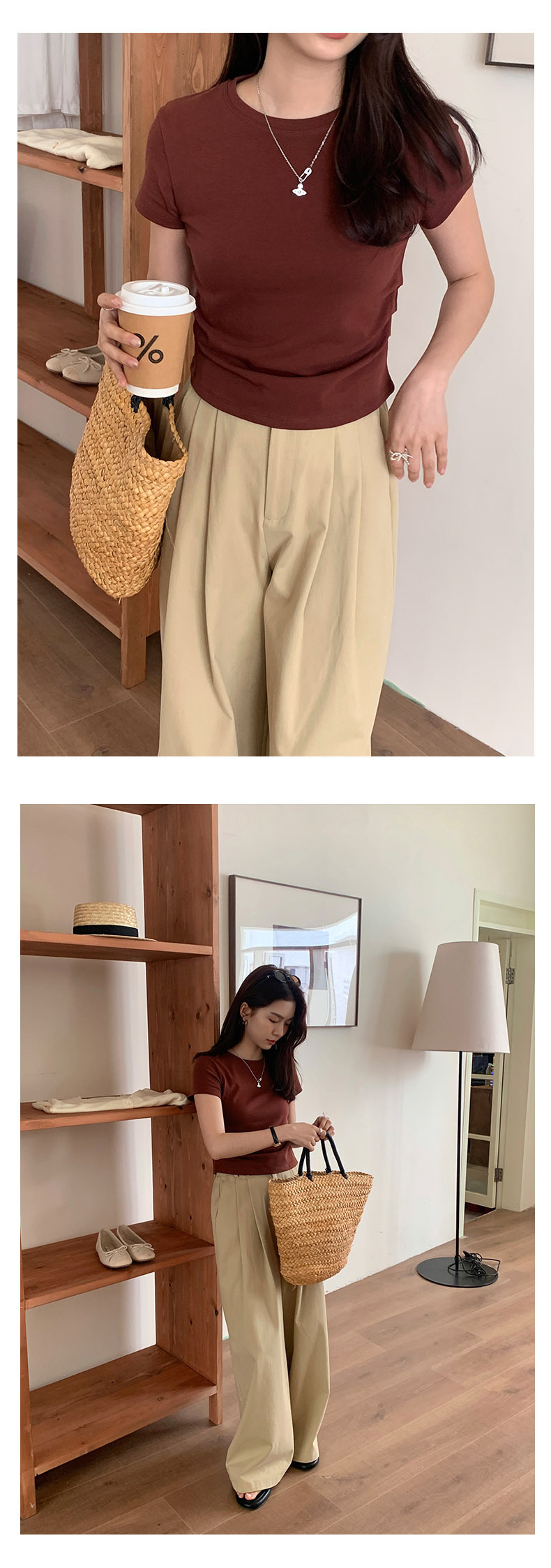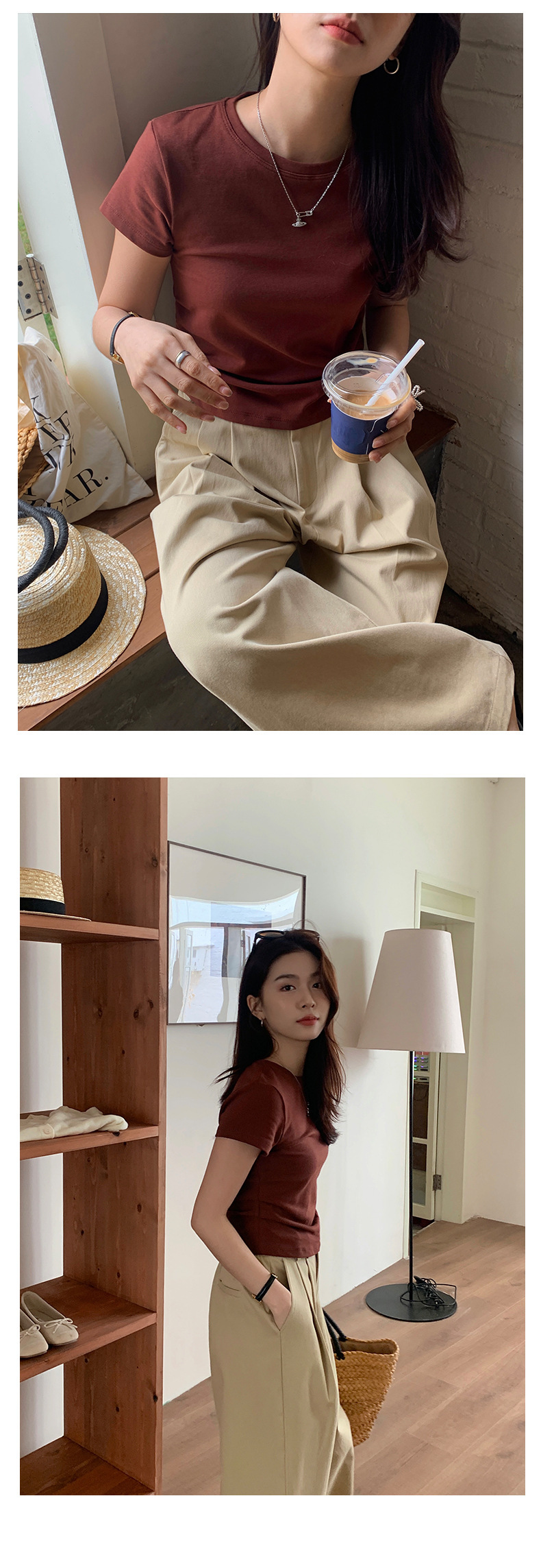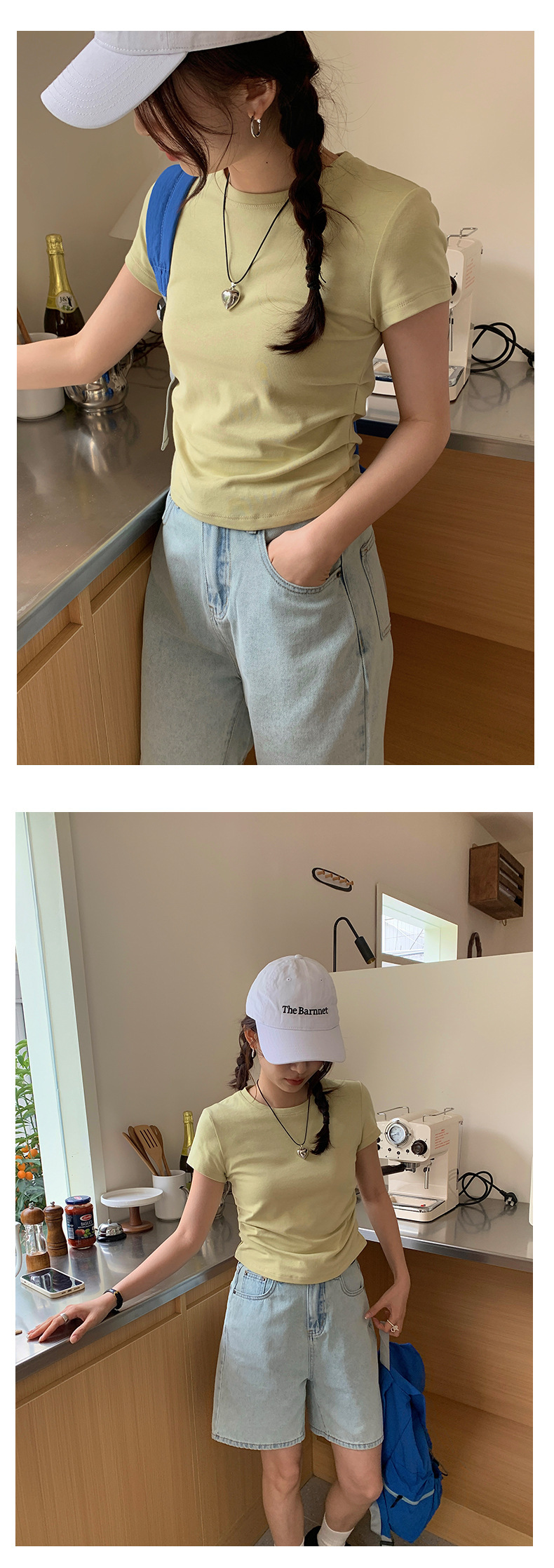 *o-ha-you*【FHZ141TH1095】6色簡約褶皺正肩短版T恤2024夏季韓版修身短袖上衣-如有需要請先諮詢