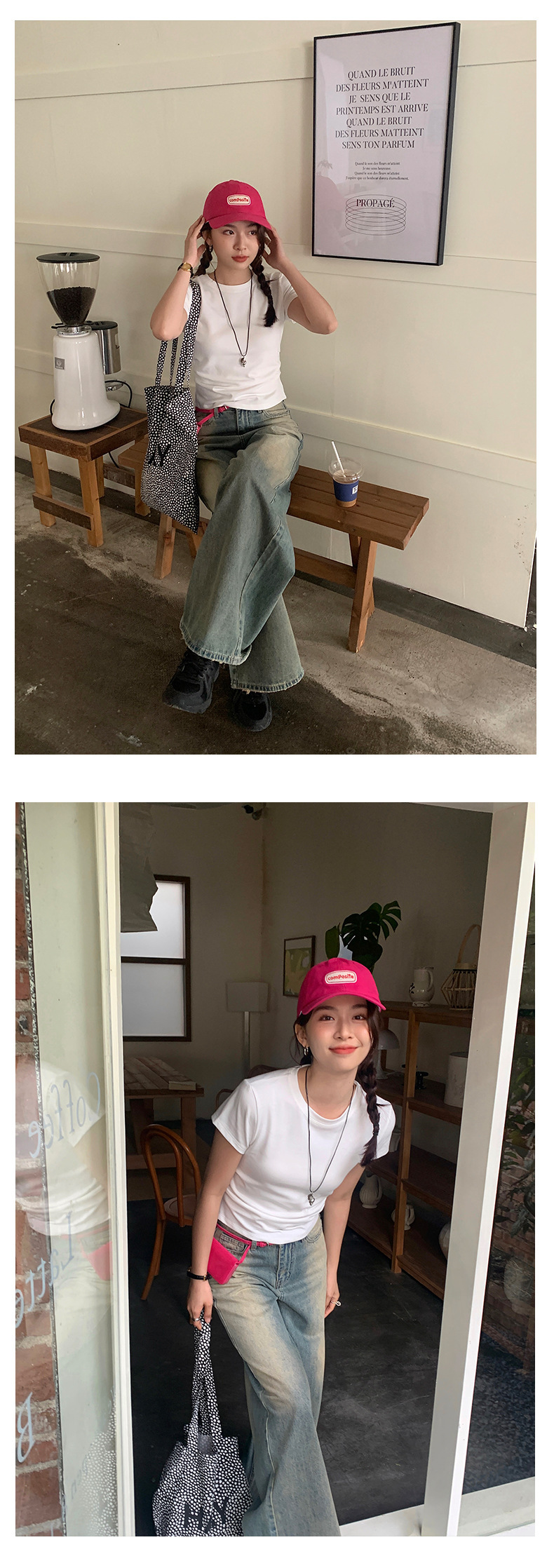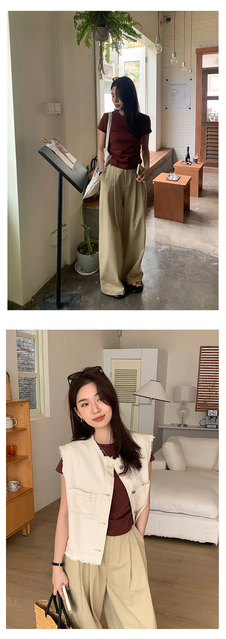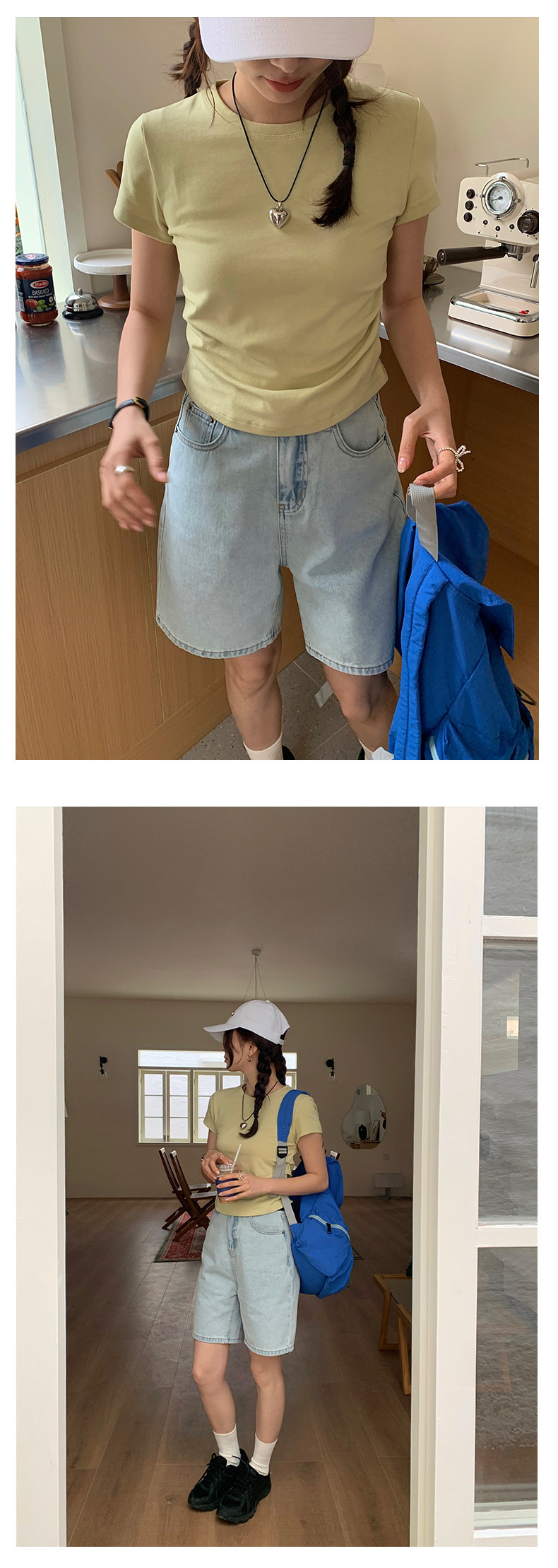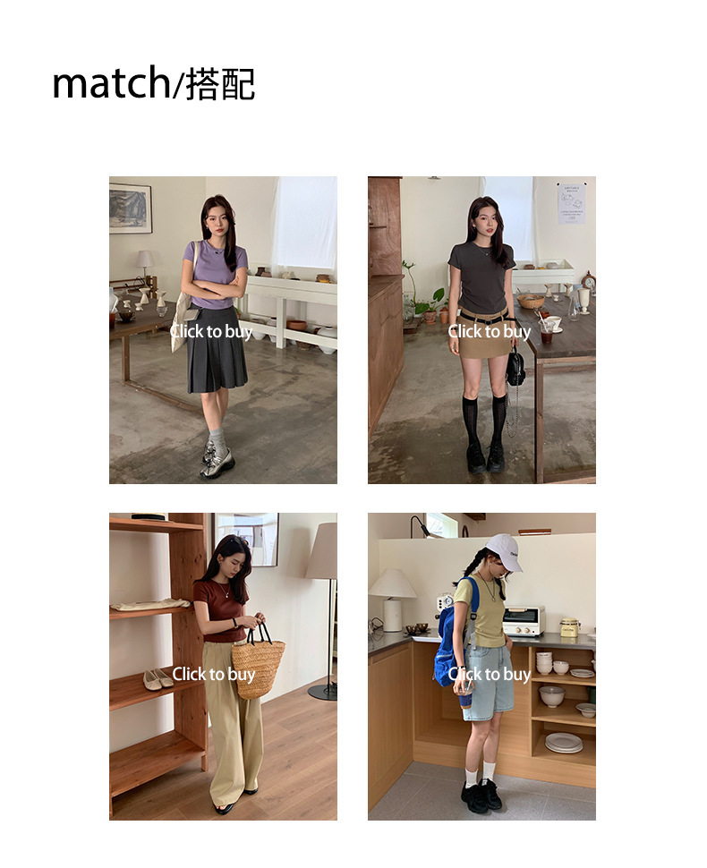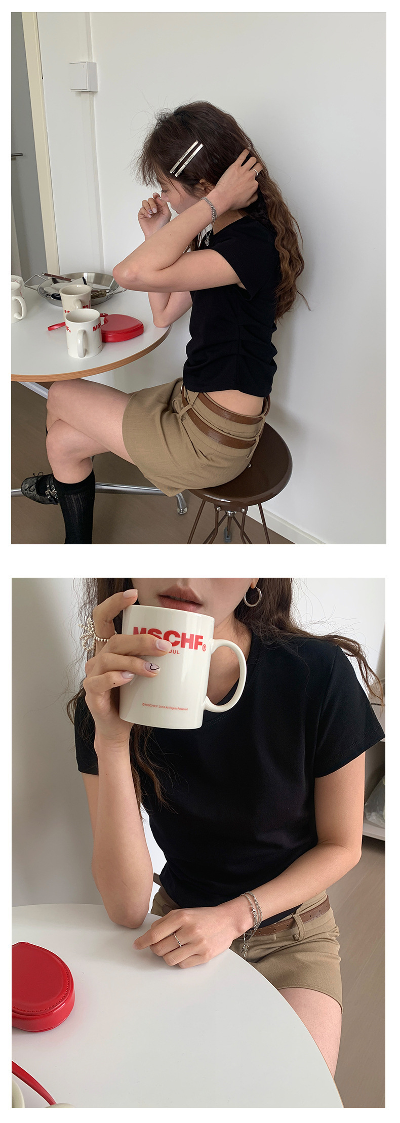 *o-ha-you*【FHZ141TH1095】6色簡約褶皺正肩短版T恤2024夏季韓版修身短袖上衣-如有需要請先諮詢