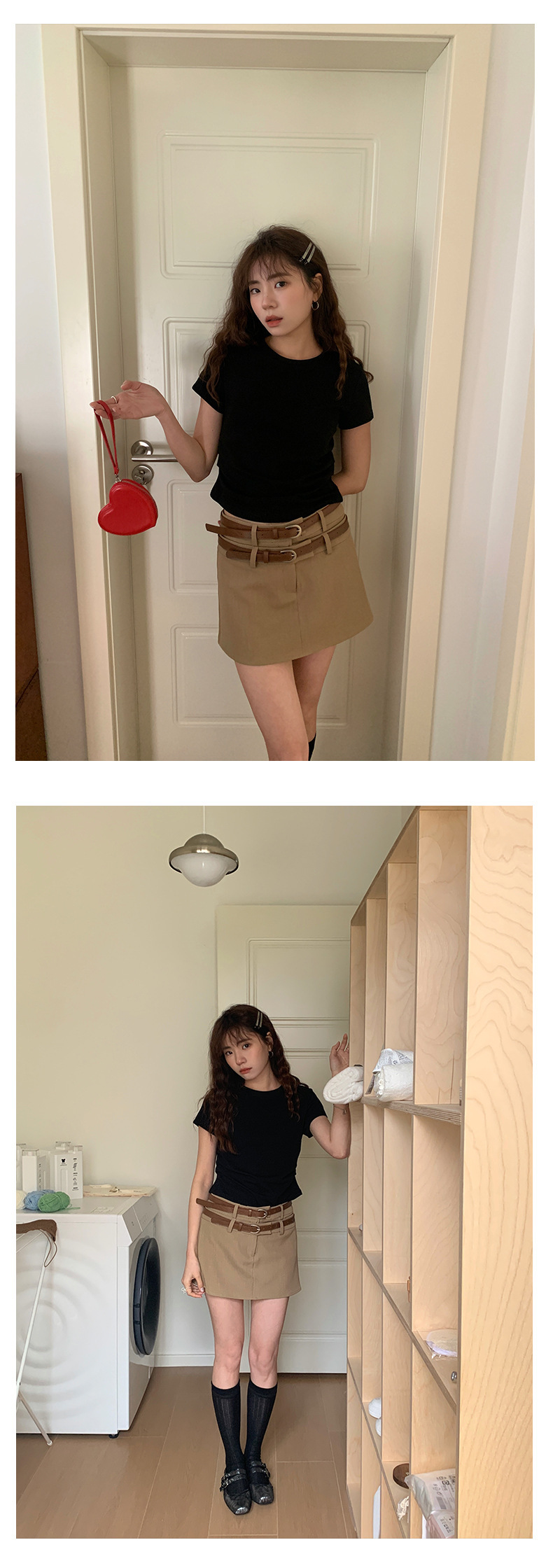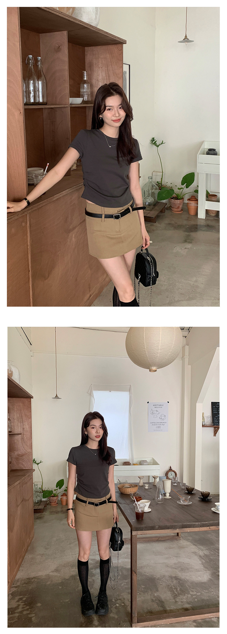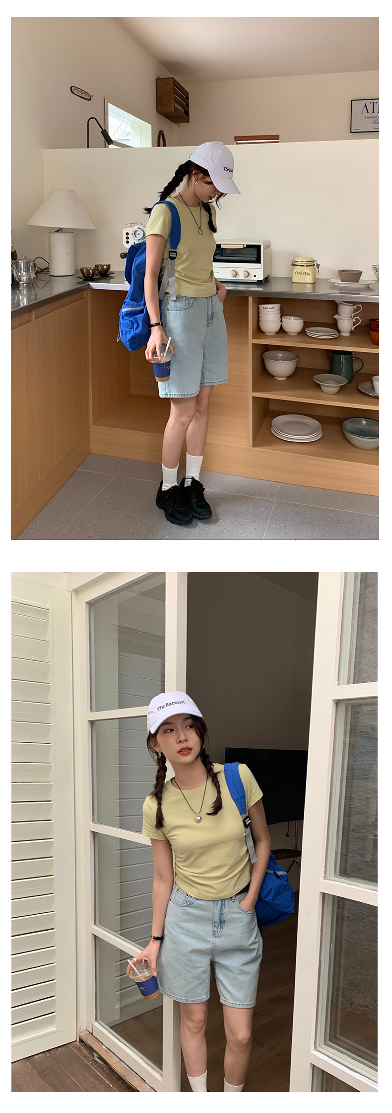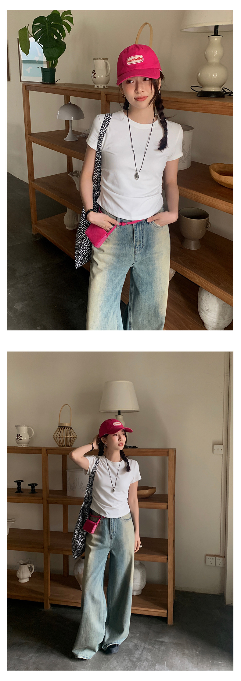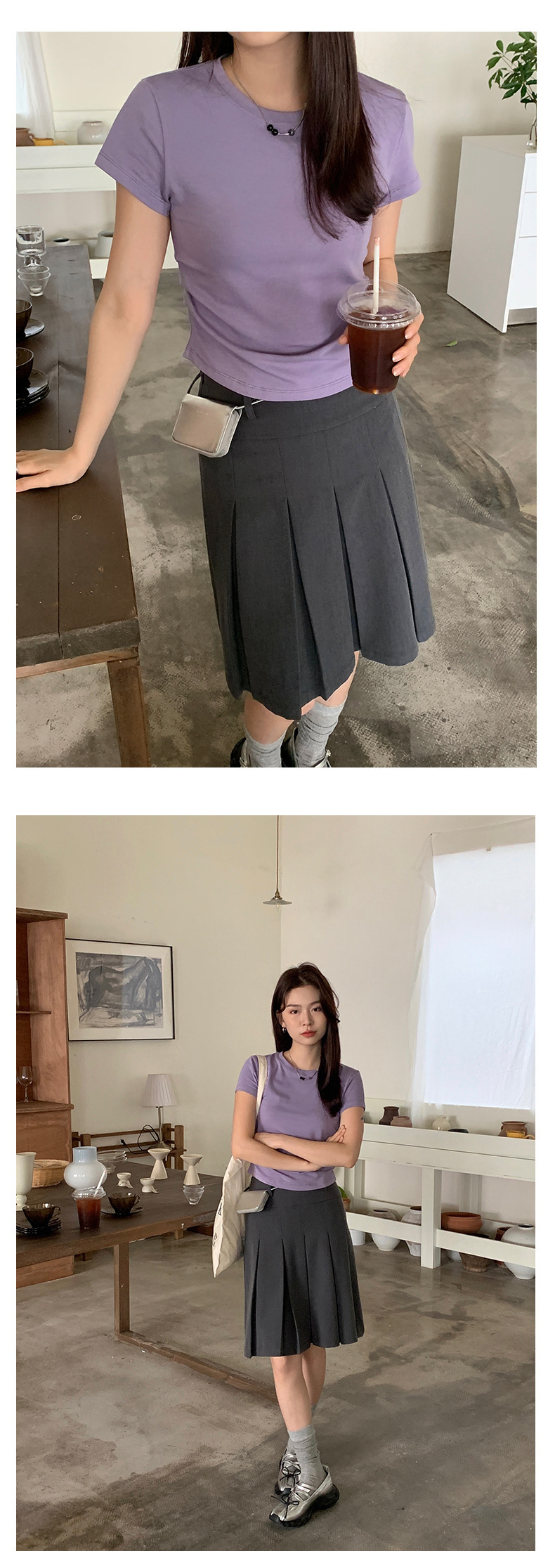 *o-ha-you*【FHZ141TH1095】6色簡約褶皺正肩短版T恤2024夏季韓版修身短袖上衣-如有需要請先諮詢