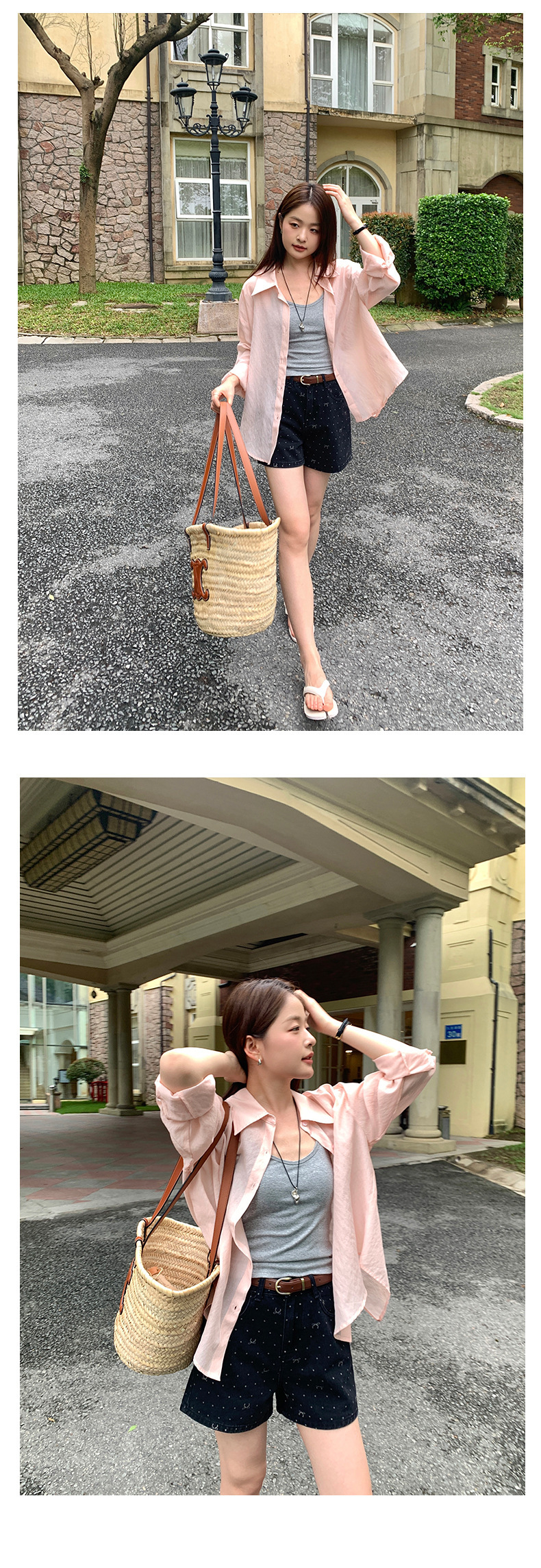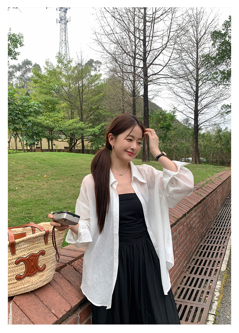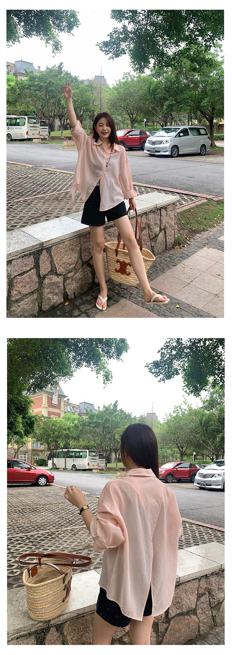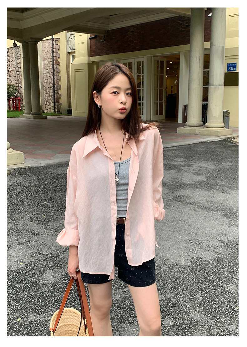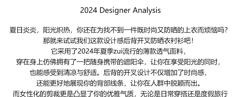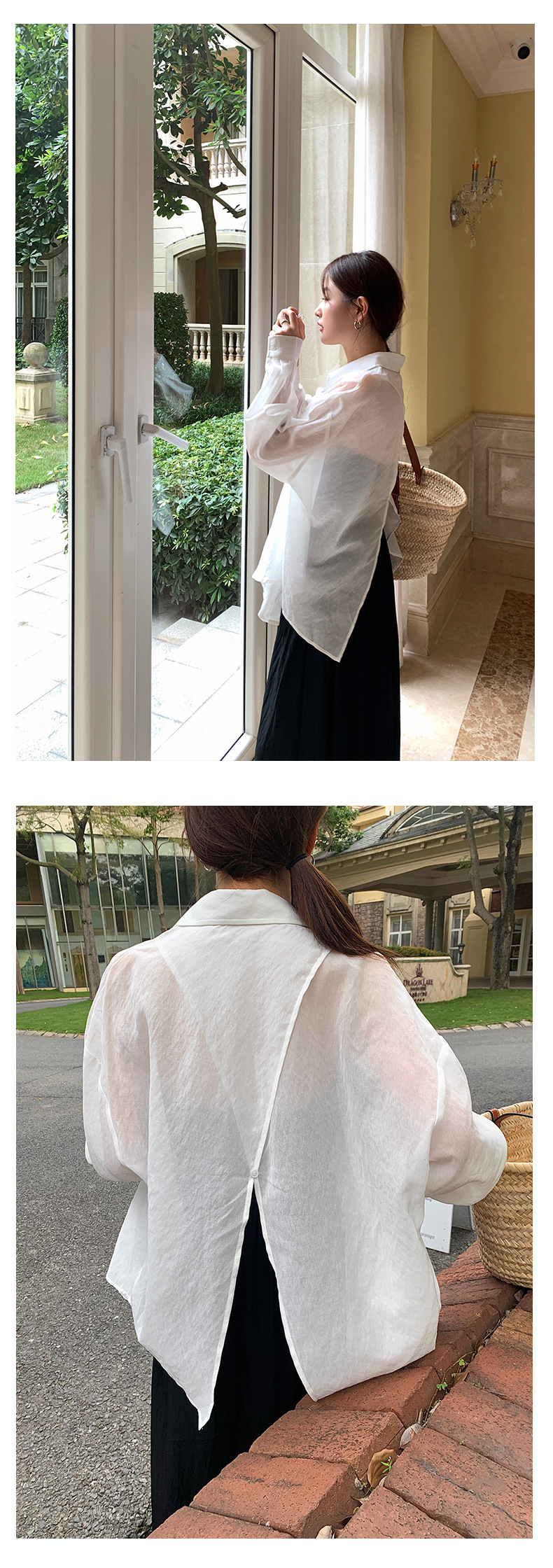 *o-ha-you*【FHZ142CH2088】設計感後背開叉防曬衣襯衫2024夏薄款透氣開襟衫上衣-3色-如有需要請先諮詢