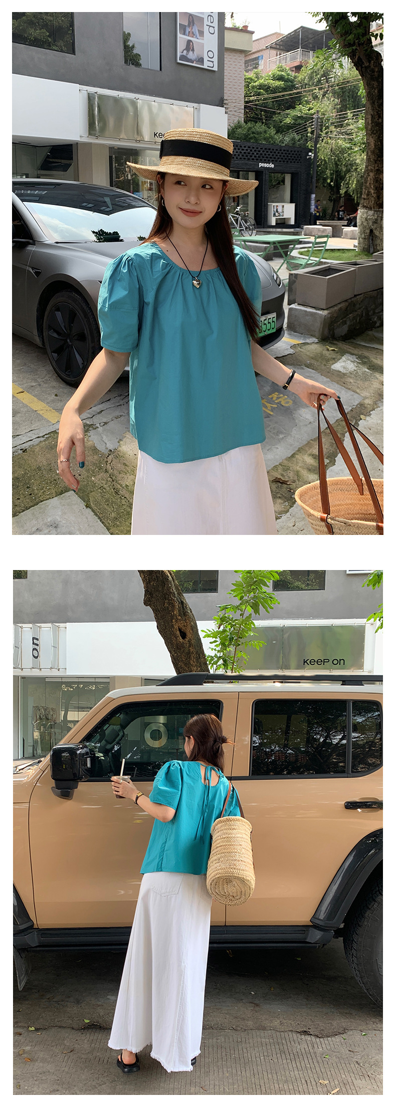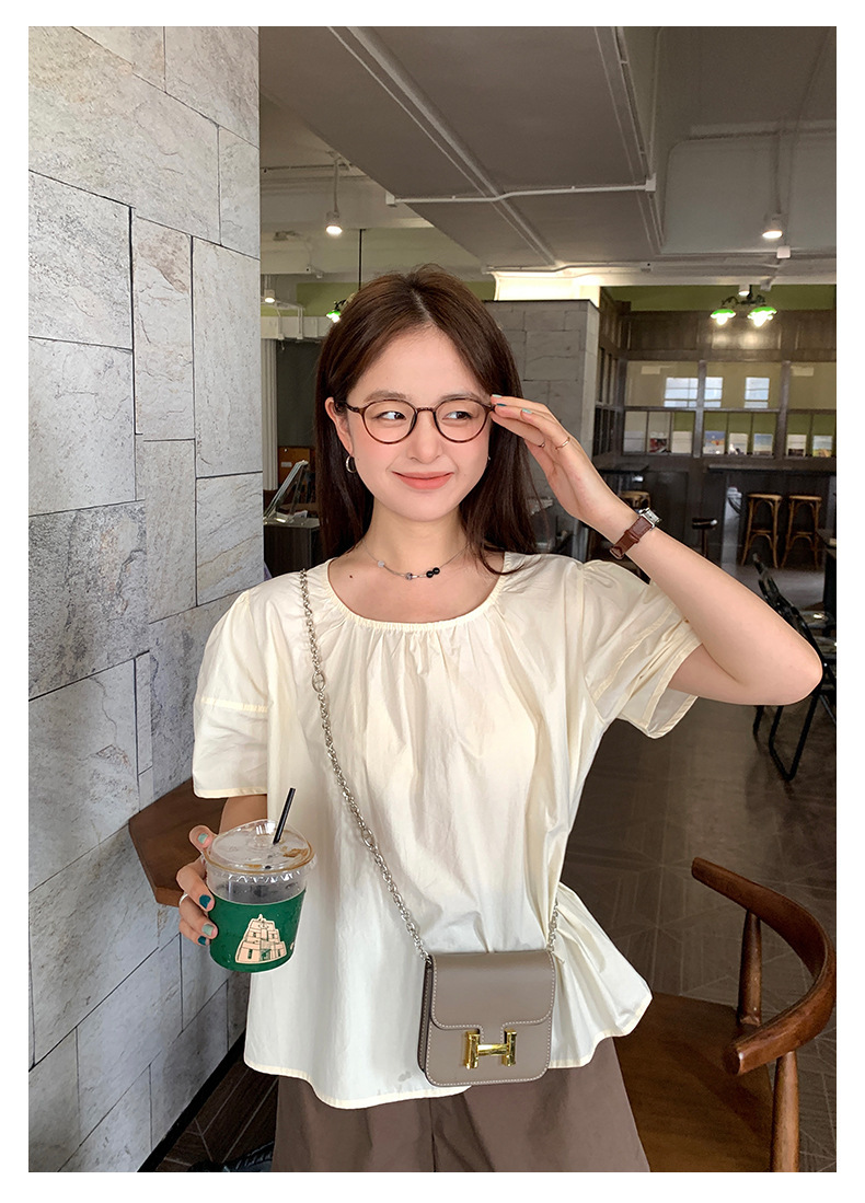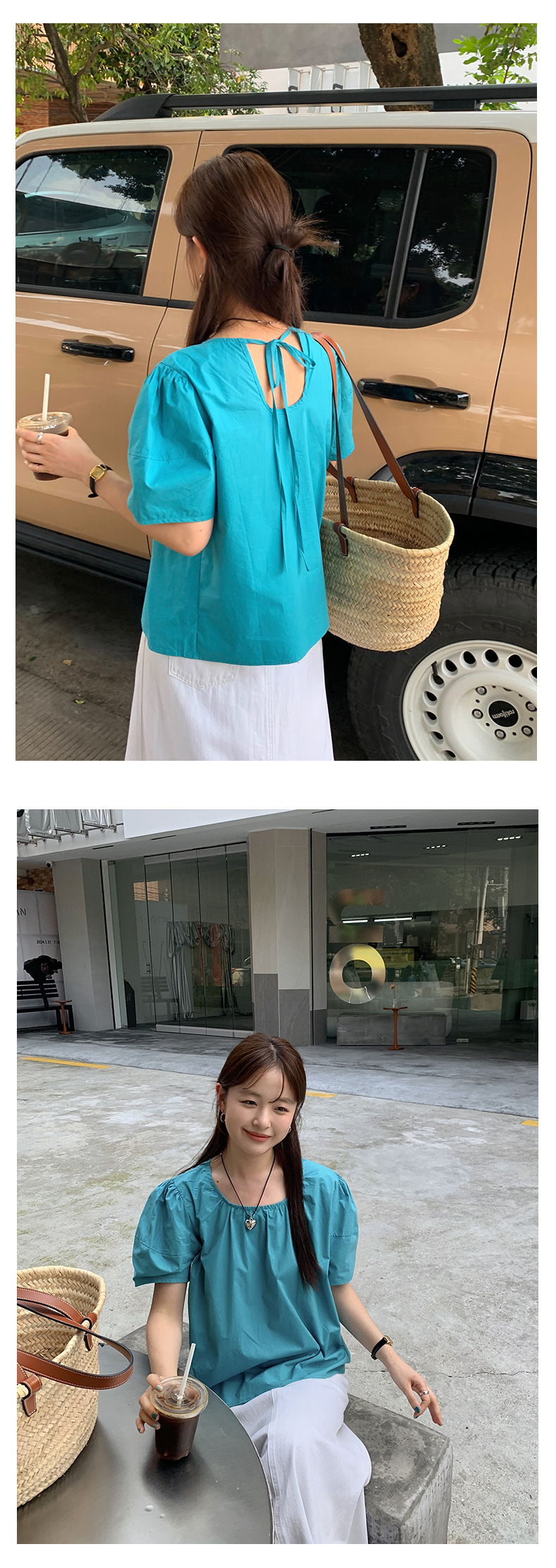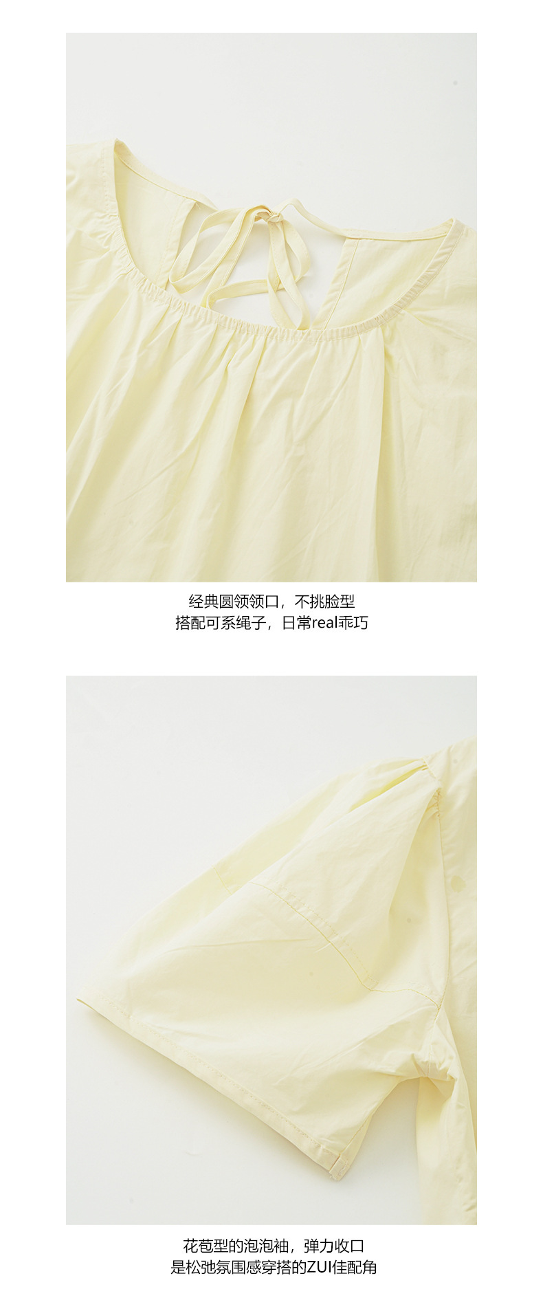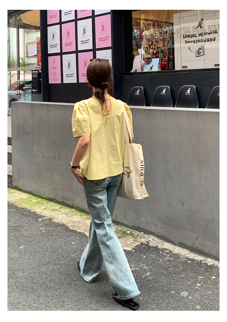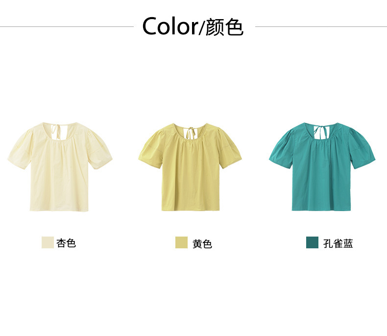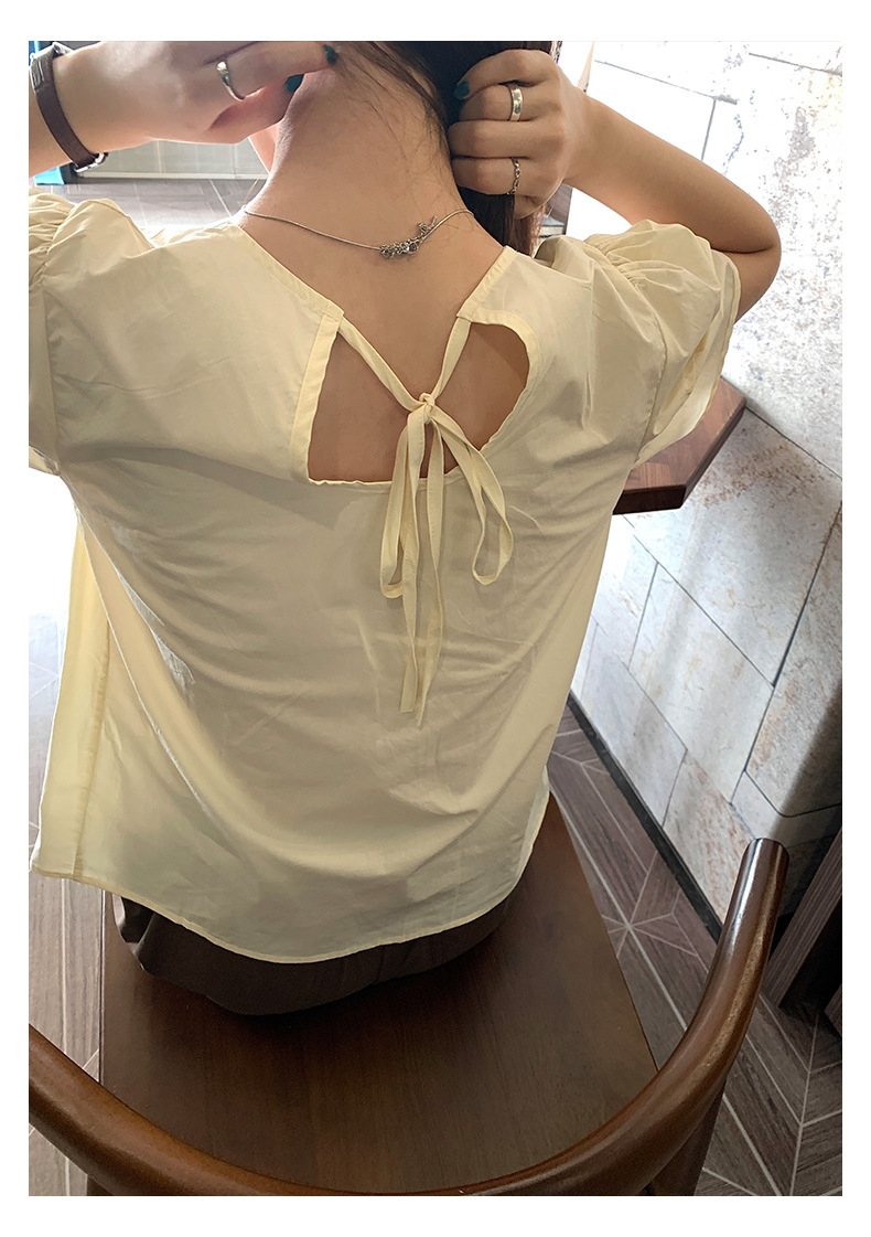 *o-ha-you*【FHZ142CH3080】設計感泡泡袖繫帶襯衫2024夏寬鬆簡約休閒娃娃衫短袖上衣-3色-如有需要請先諮詢