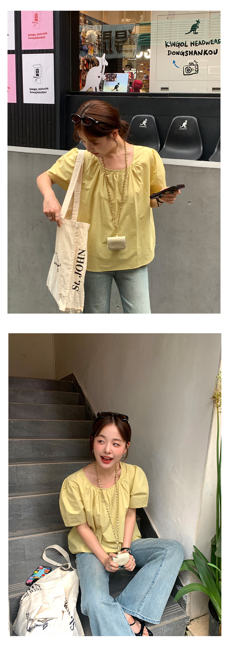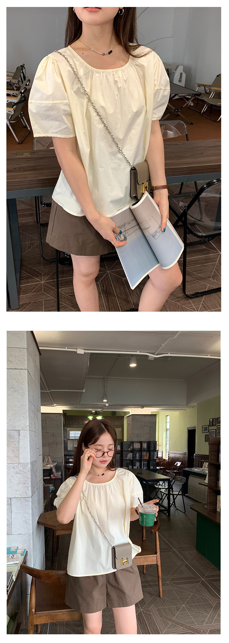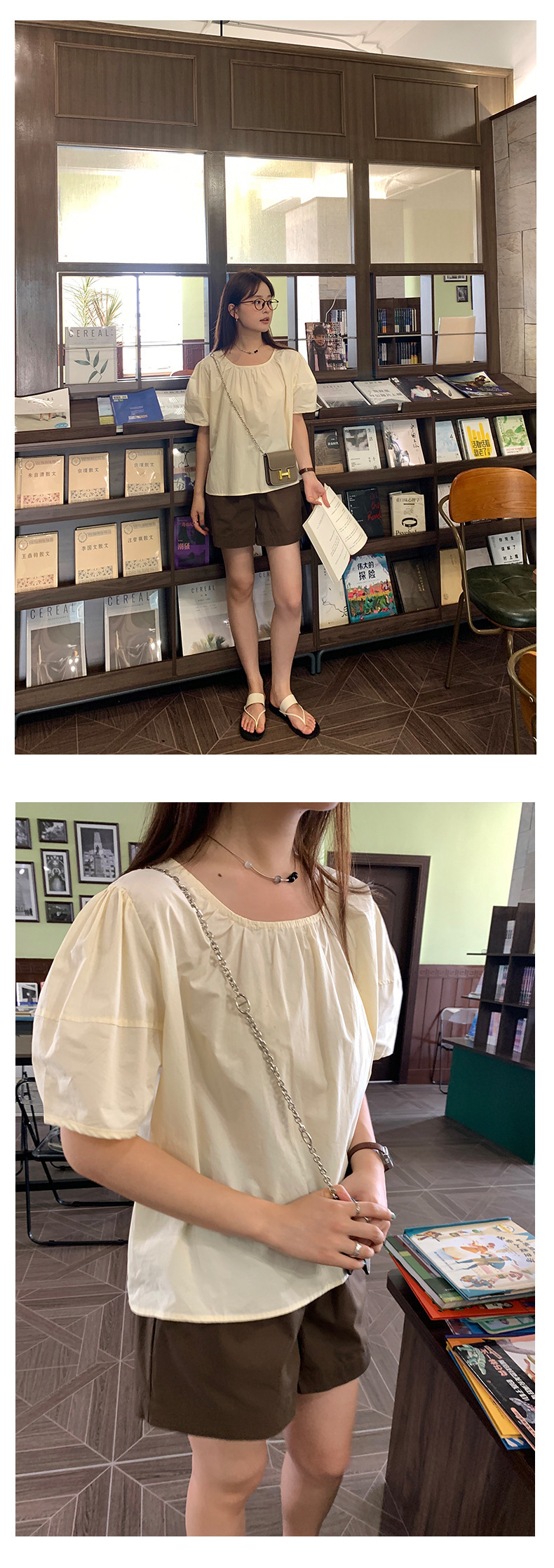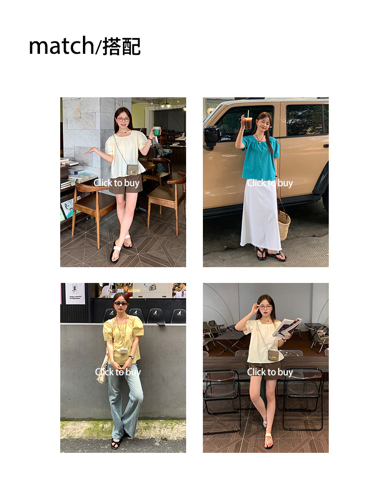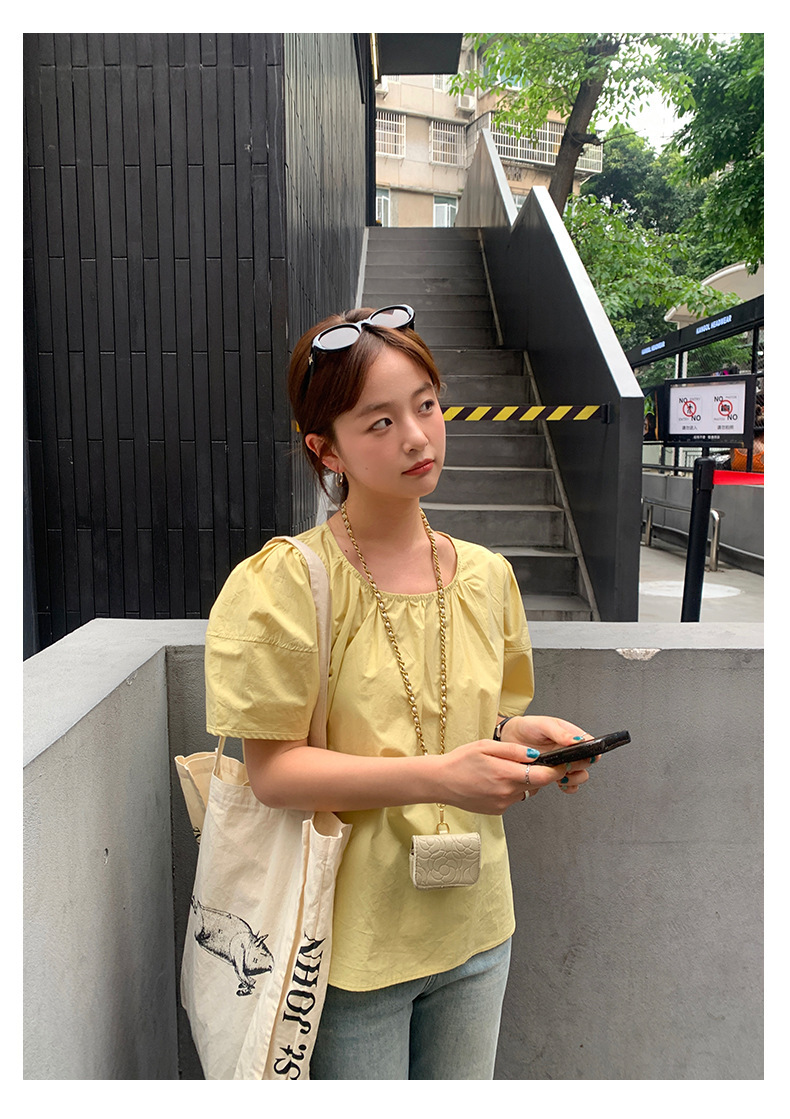*o-ha-you*【FHZ142CH3080】設計感泡泡袖繫帶襯衫2024夏寬鬆簡約休閒娃娃衫短袖上衣-3色-如有需要請先諮詢
