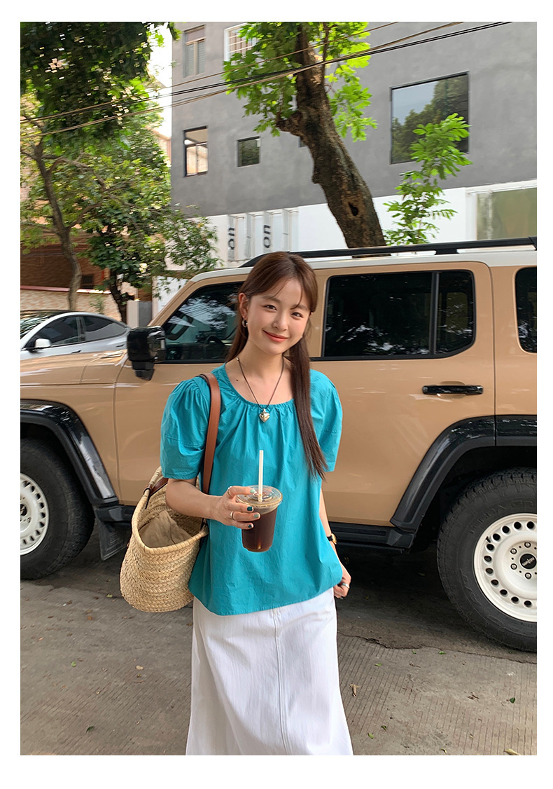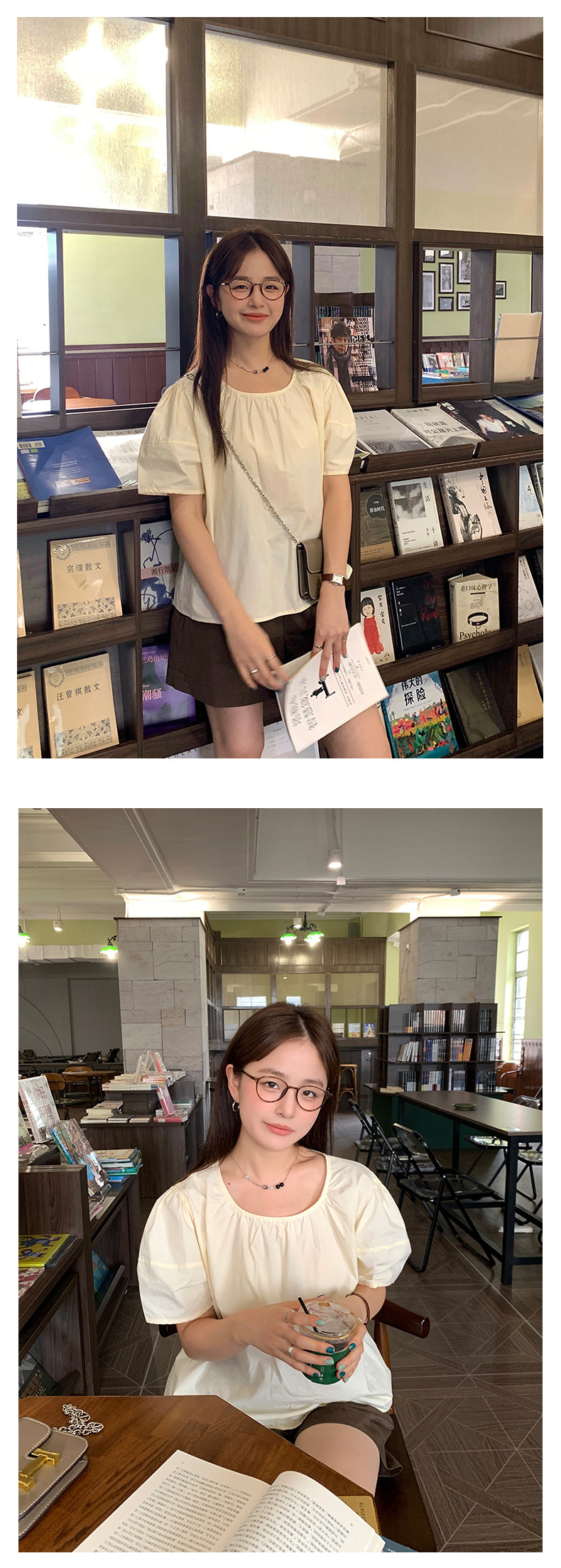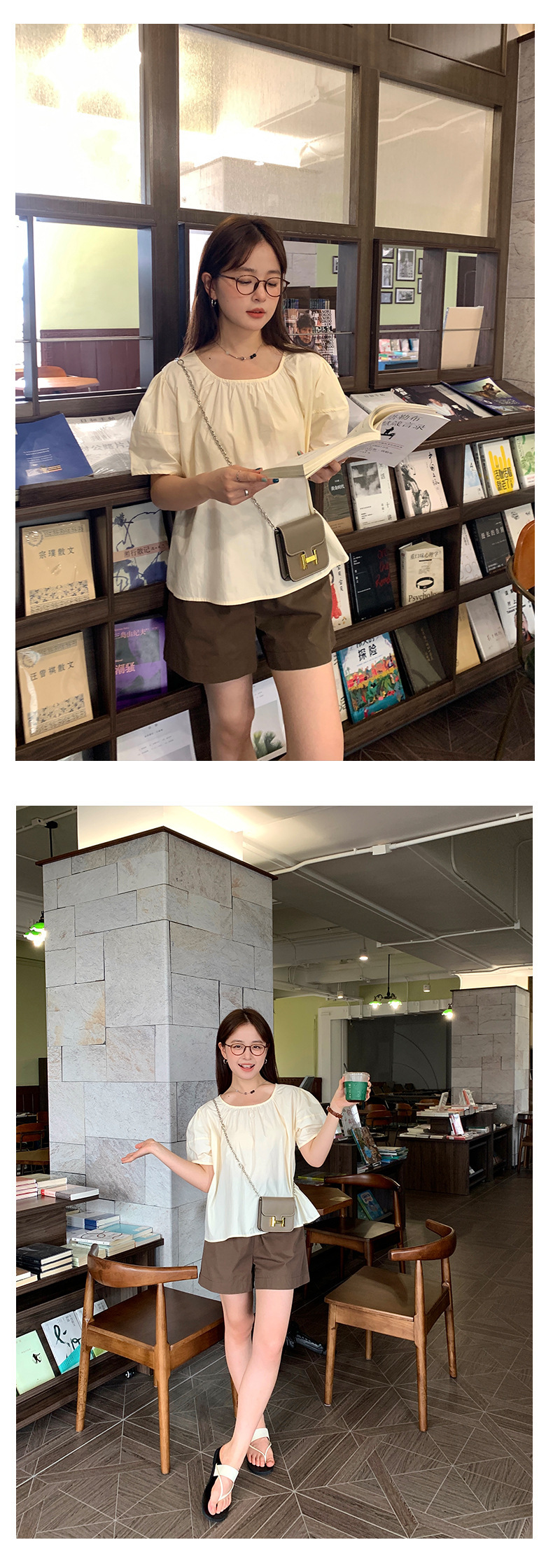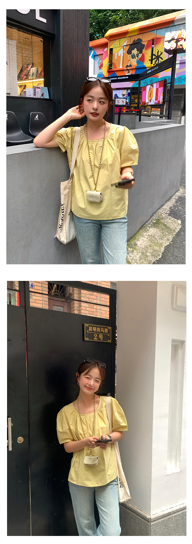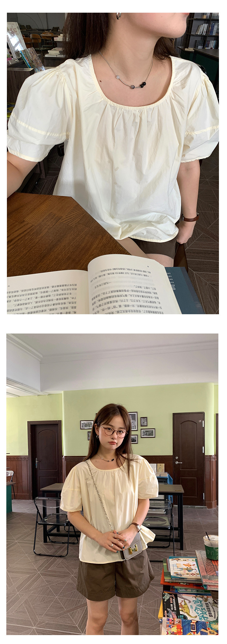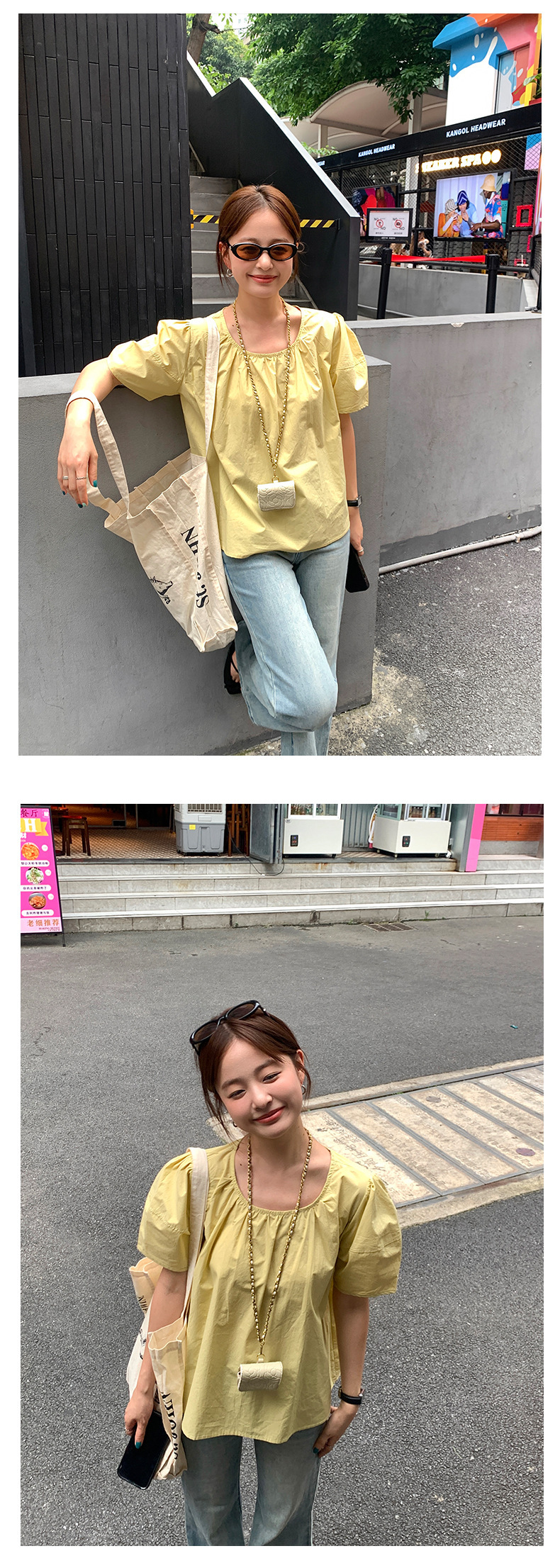 *o-ha-you*【FHZ142CH3080】設計感泡泡袖繫帶襯衫2024夏寬鬆簡約休閒娃娃衫短袖上衣-3色-如有需要請先諮詢