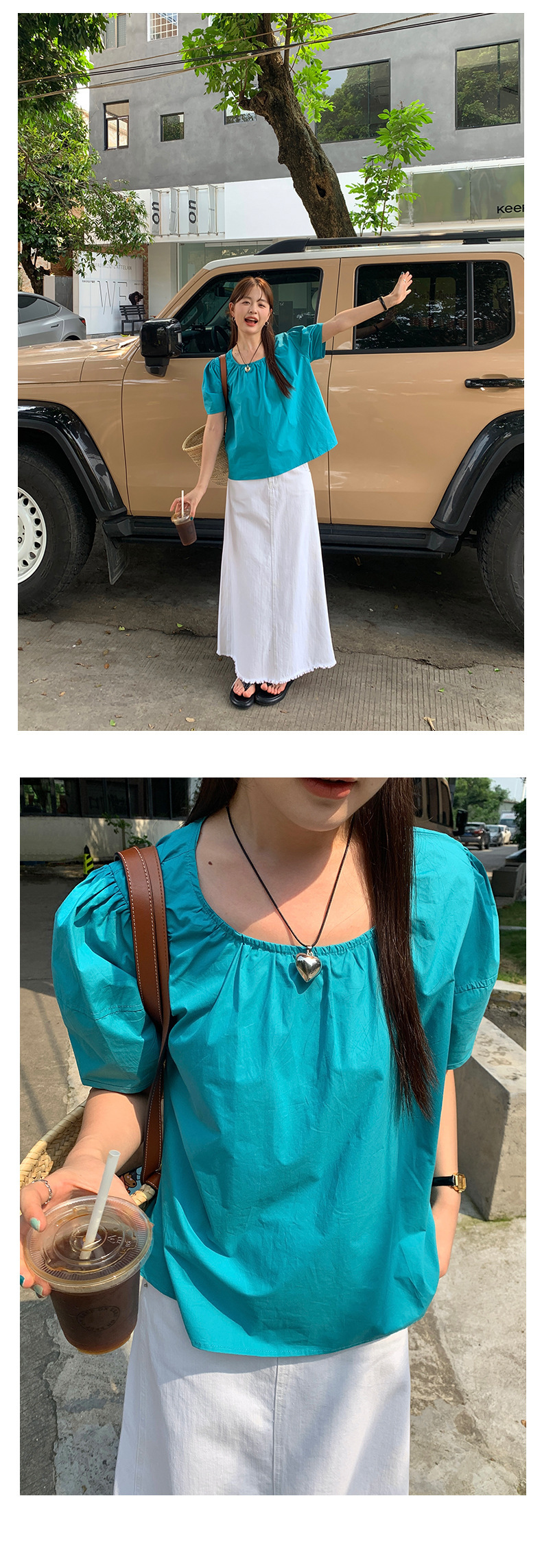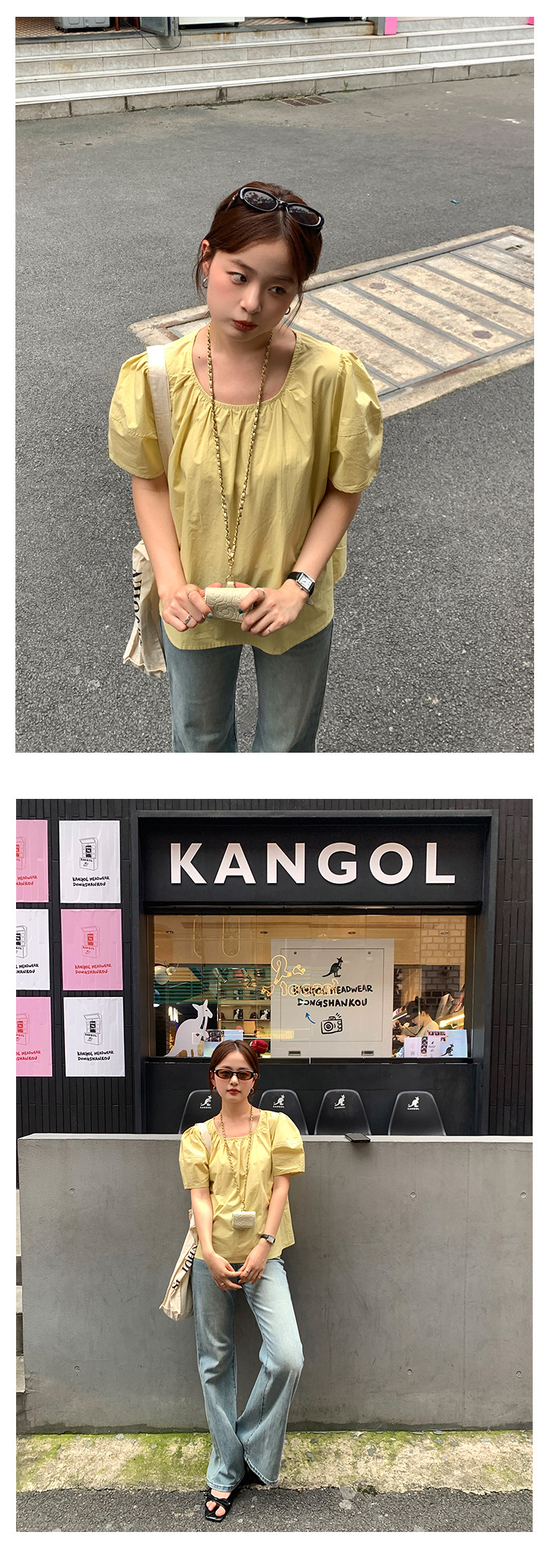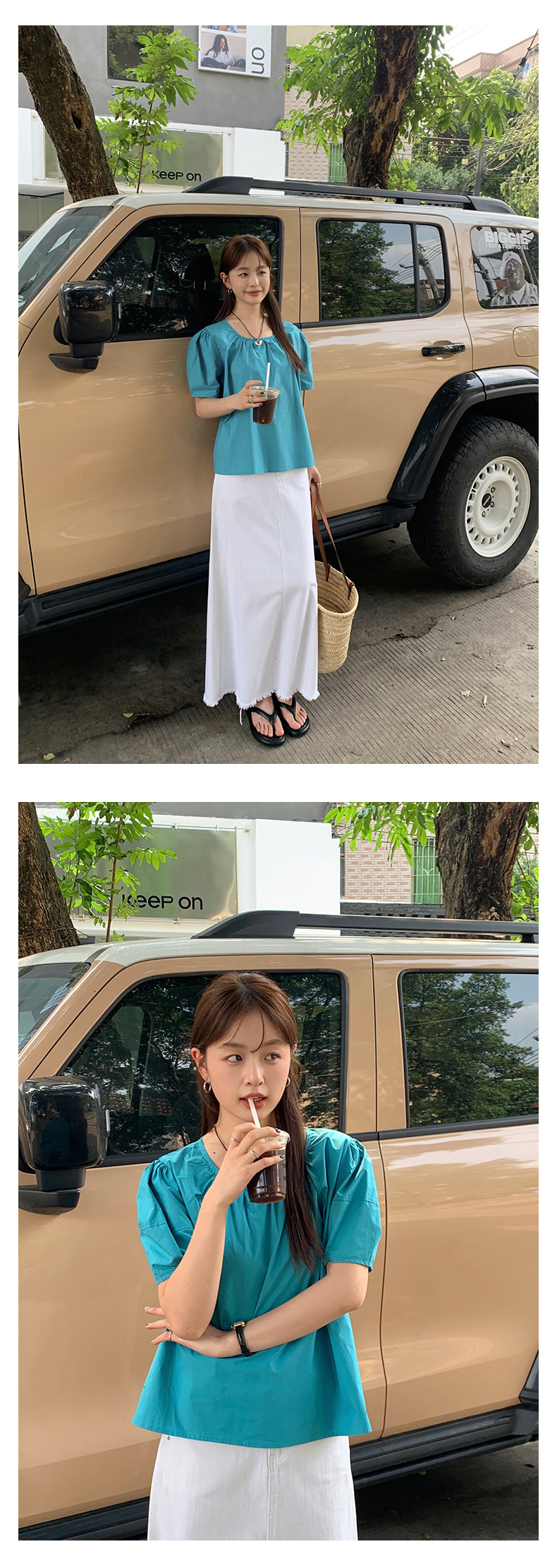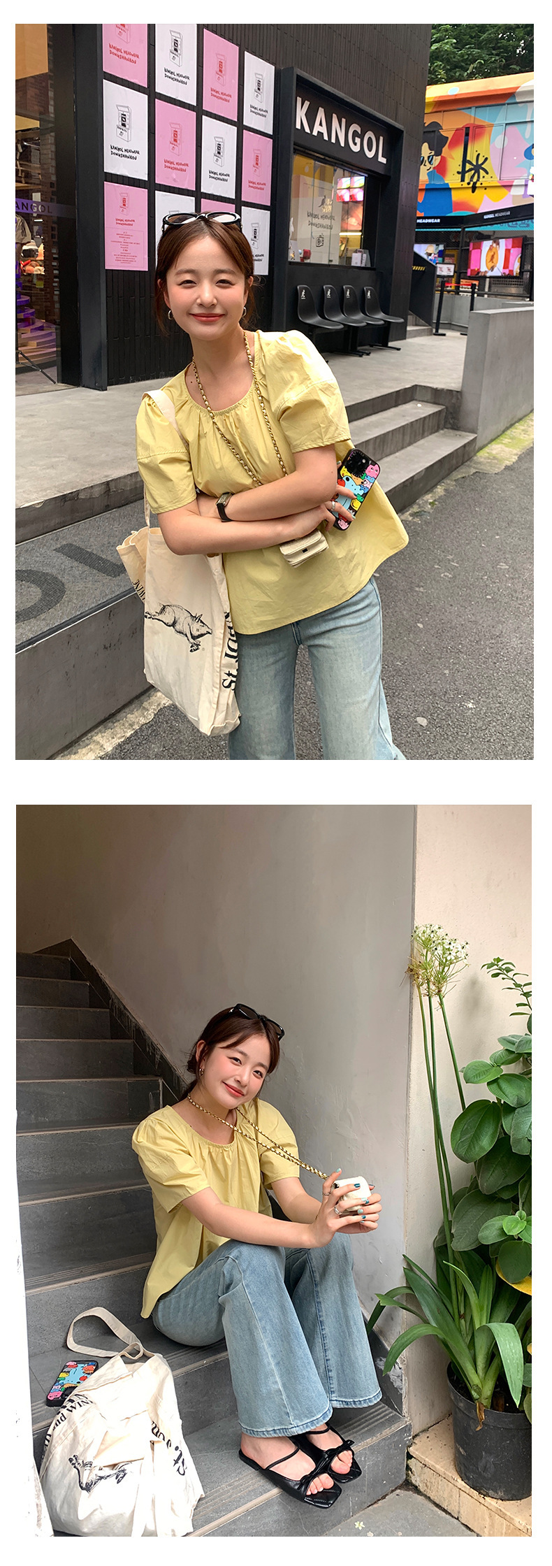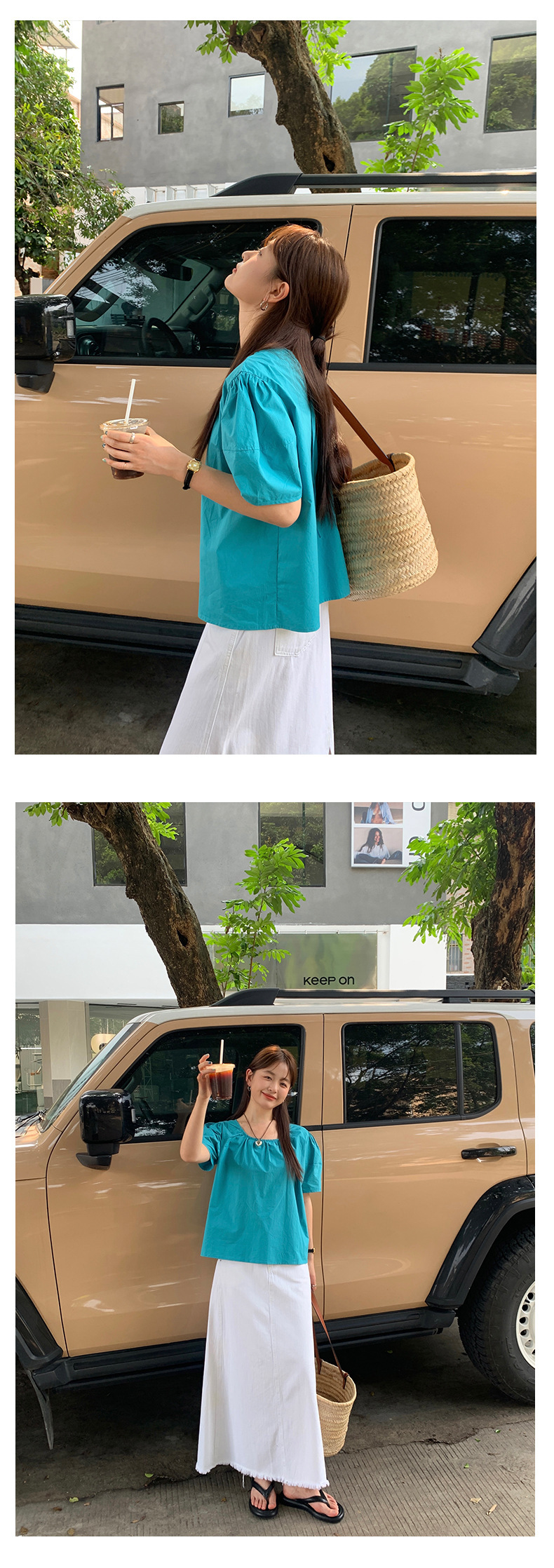 *o-ha-you*【FHZ142CH3080】設計感泡泡袖繫帶襯衫2024夏寬鬆簡約休閒娃娃衫短袖上衣-3色-如有需要請先諮詢