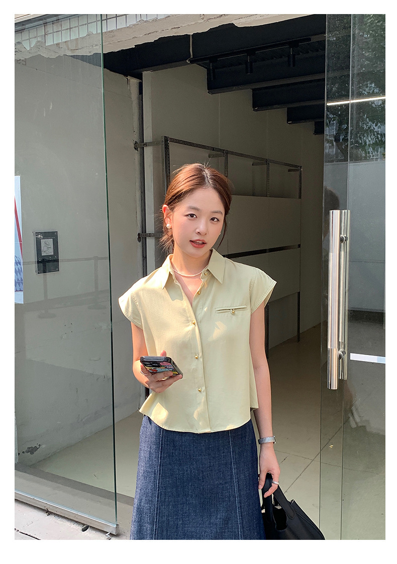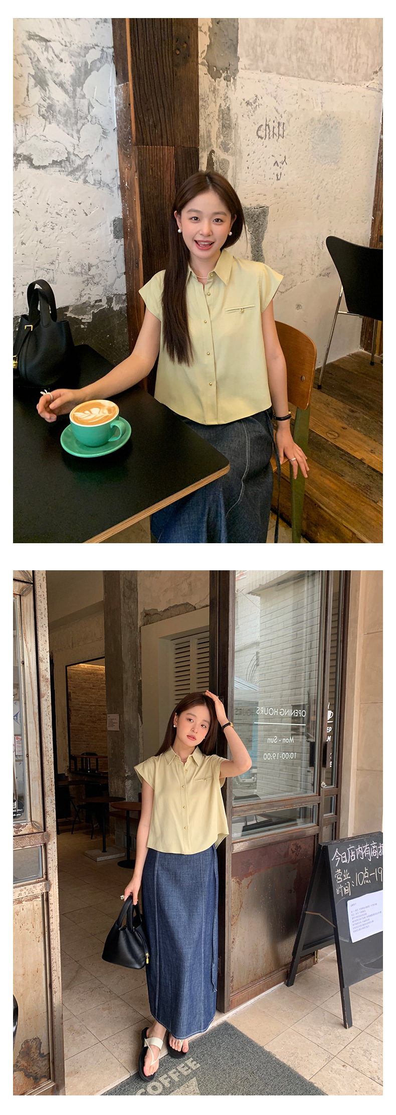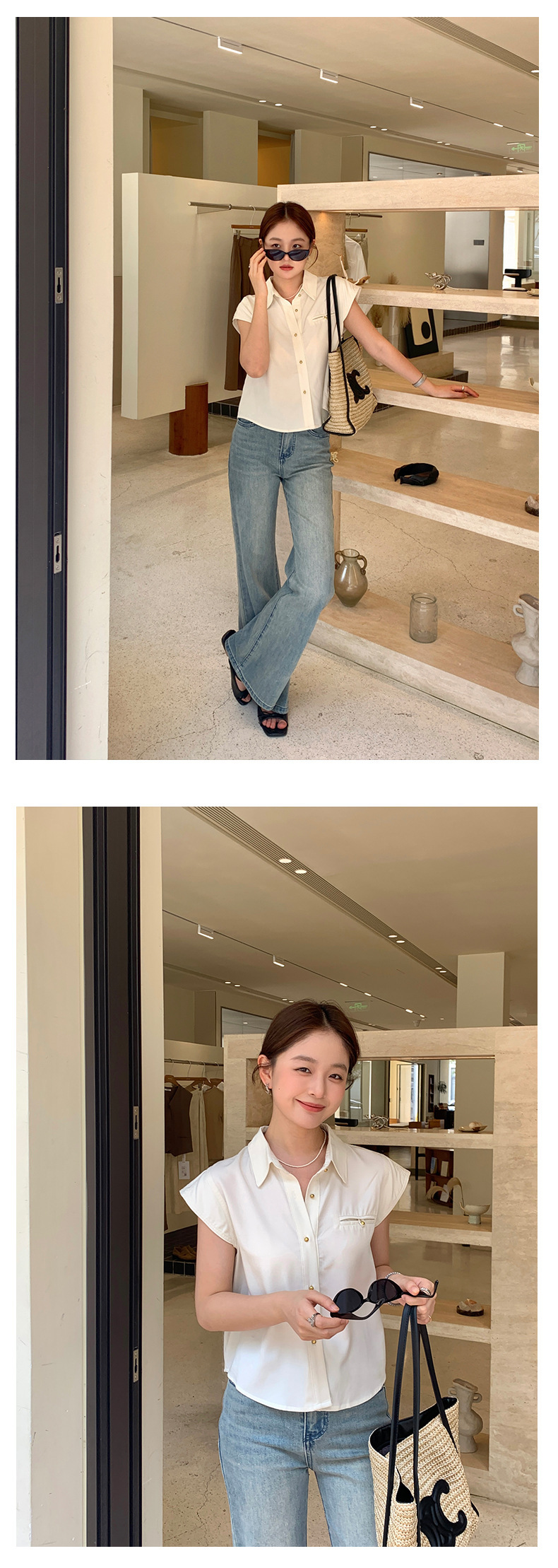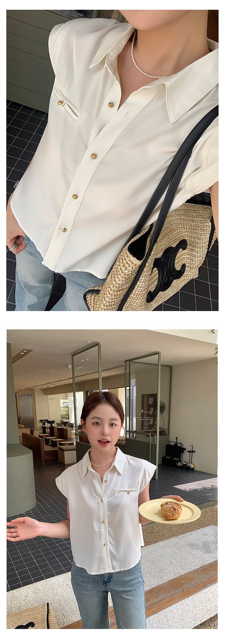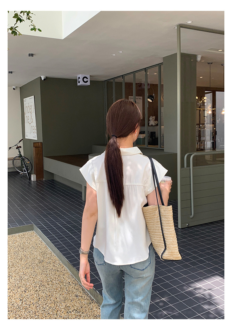 *o-ha-you*【FHZ142CH3098】簡約polo領飛飛袖襯衫2024夏季寬鬆休閒小衫開衫-2色-如有需要請先諮詢