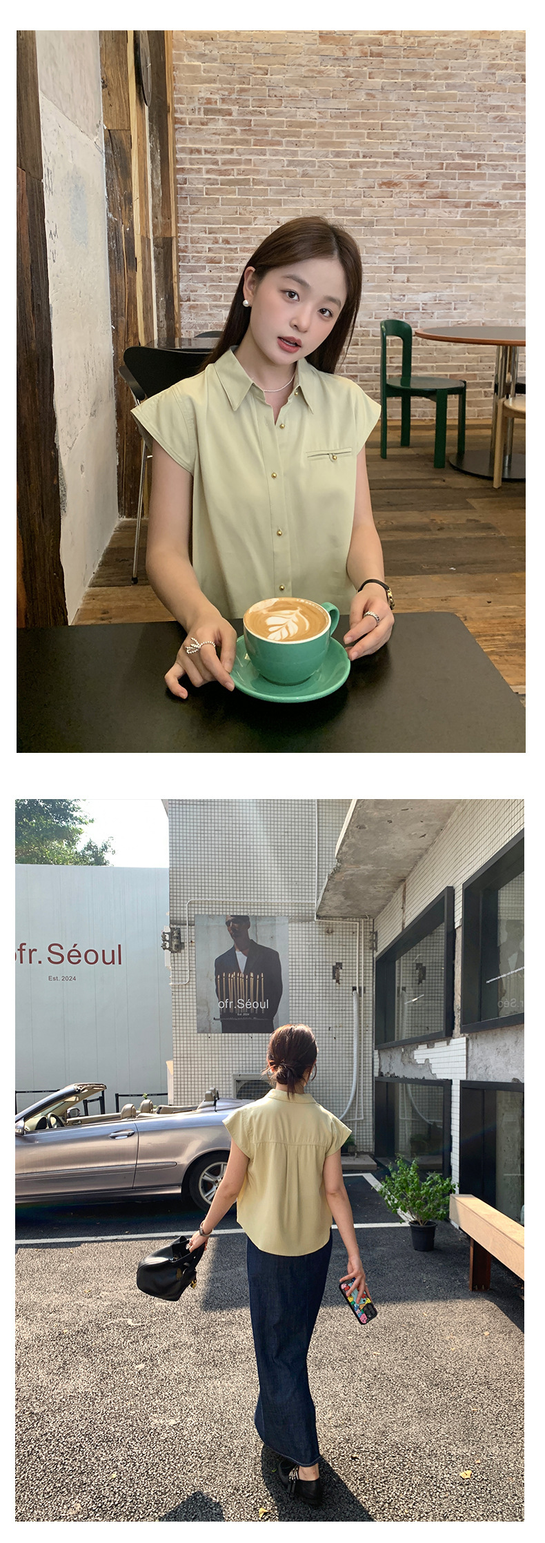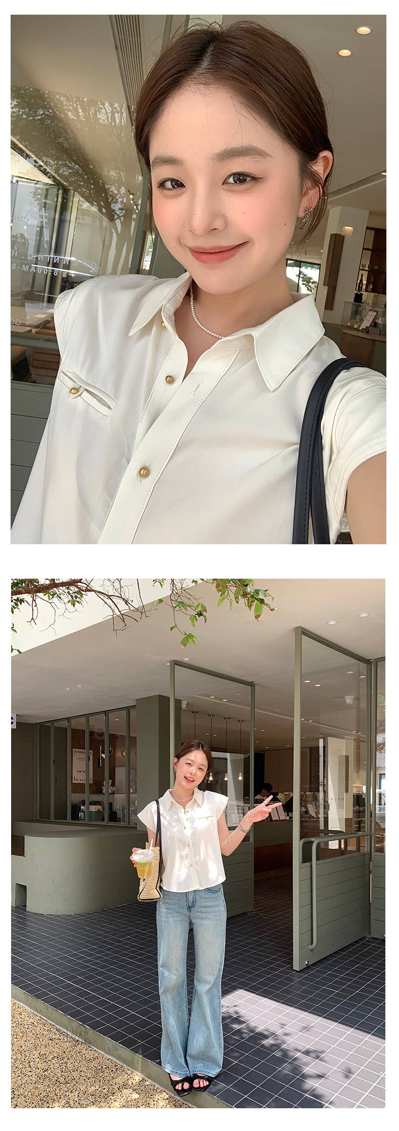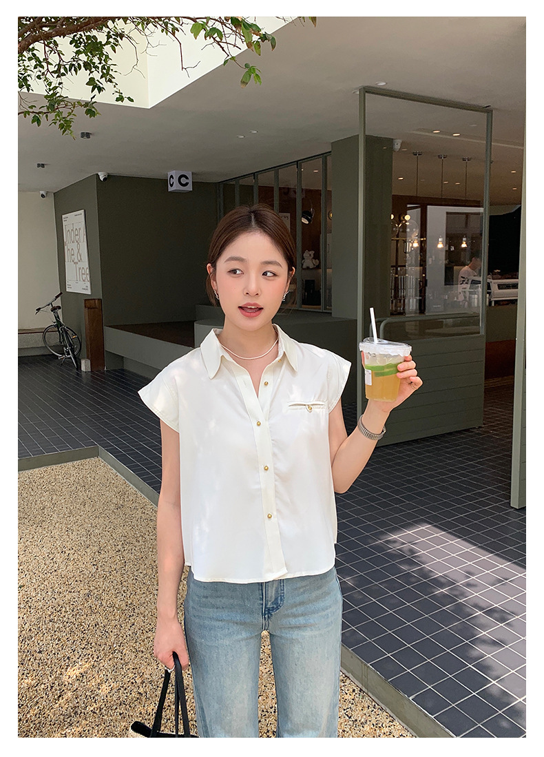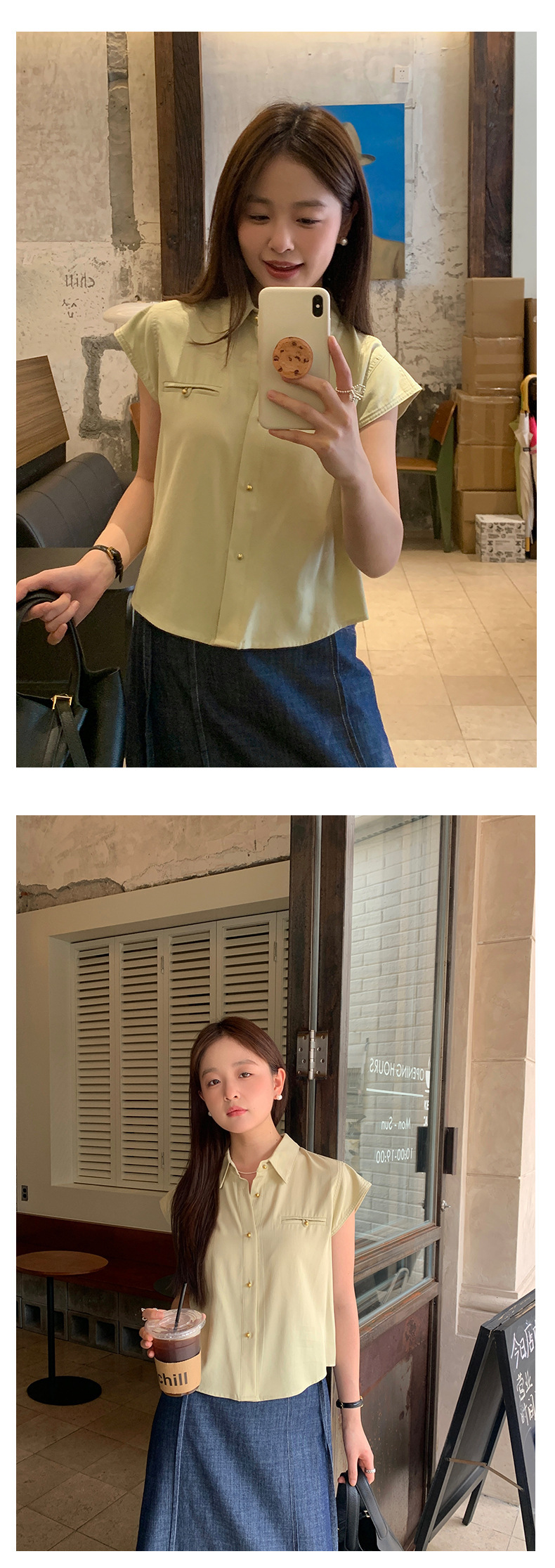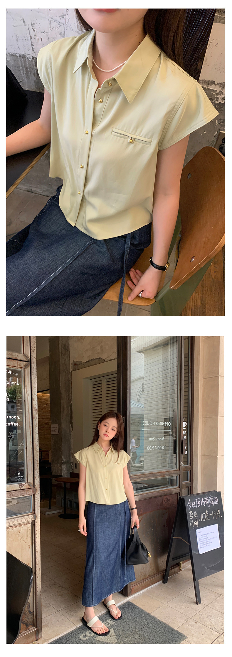 *o-ha-you*【FHZ142CH3098】簡約polo領飛飛袖襯衫2024夏季寬鬆休閒小衫開衫-2色-如有需要請先諮詢