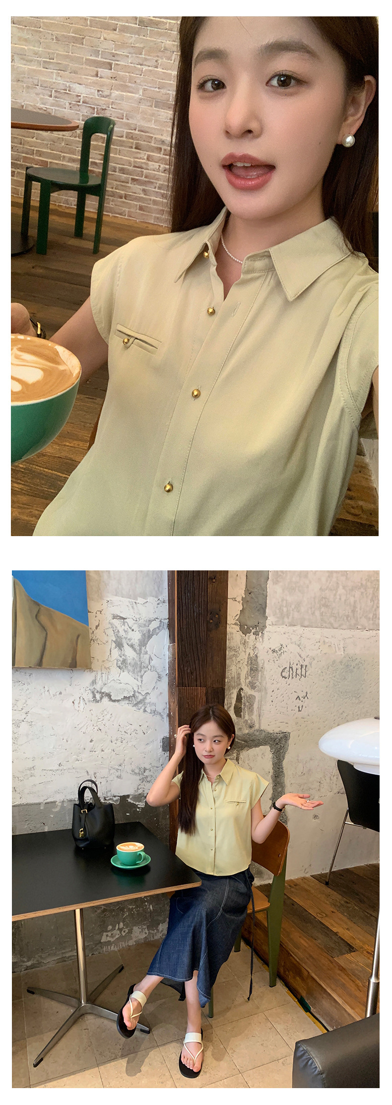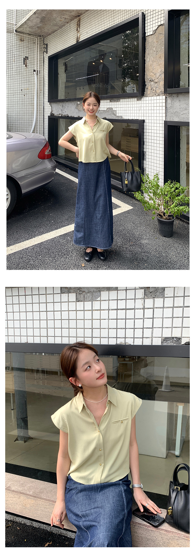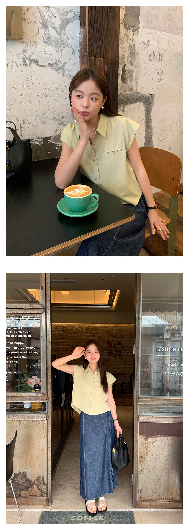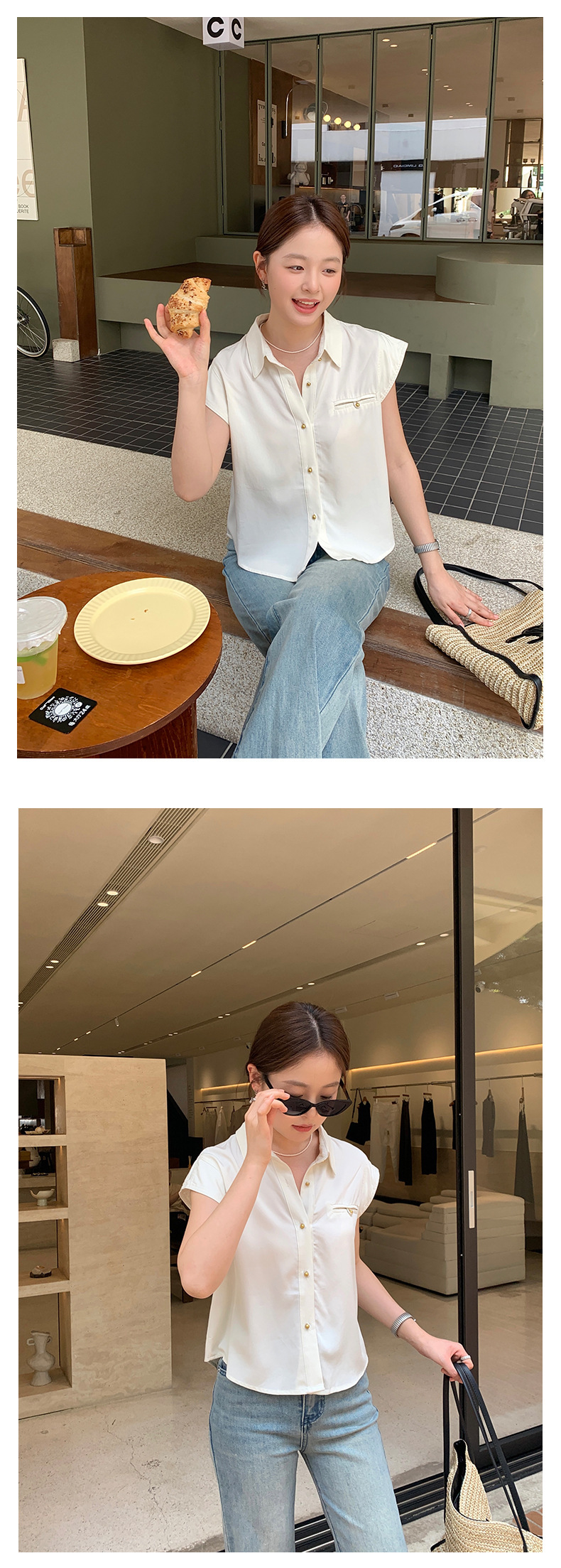 *o-ha-you*【FHZ142CH3098】簡約polo領飛飛袖襯衫2024夏季寬鬆休閒小衫開衫-2色-如有需要請先諮詢