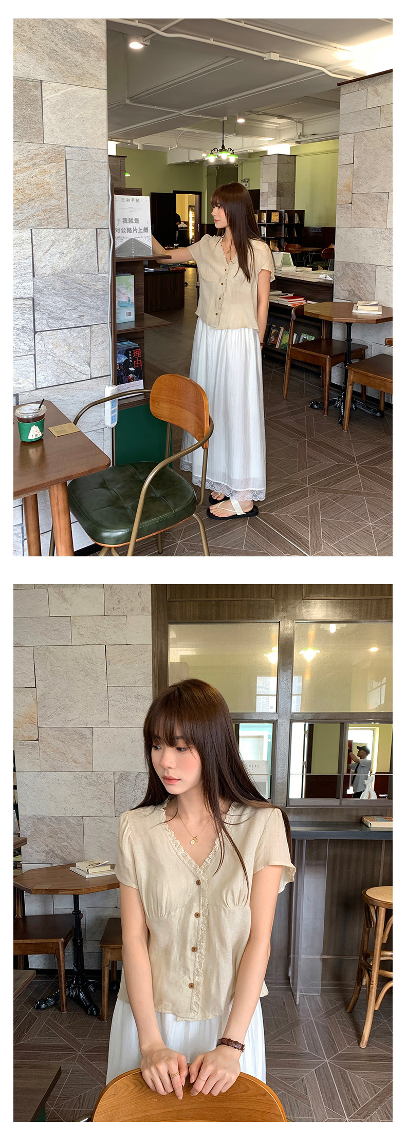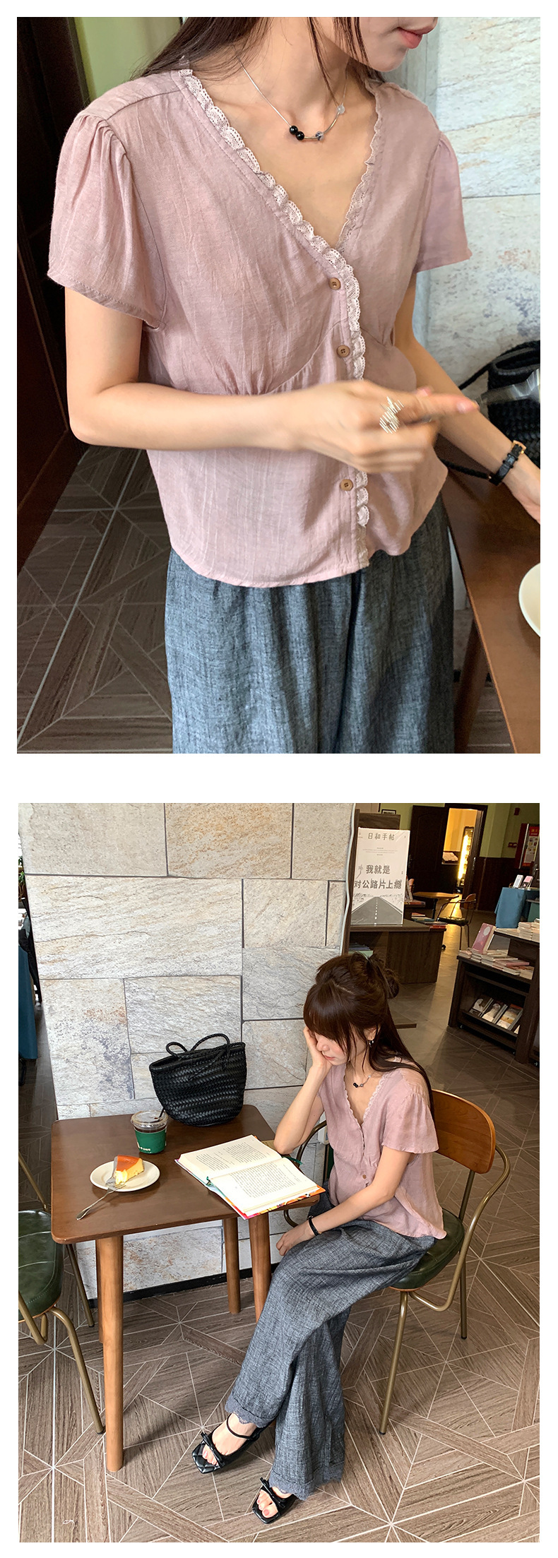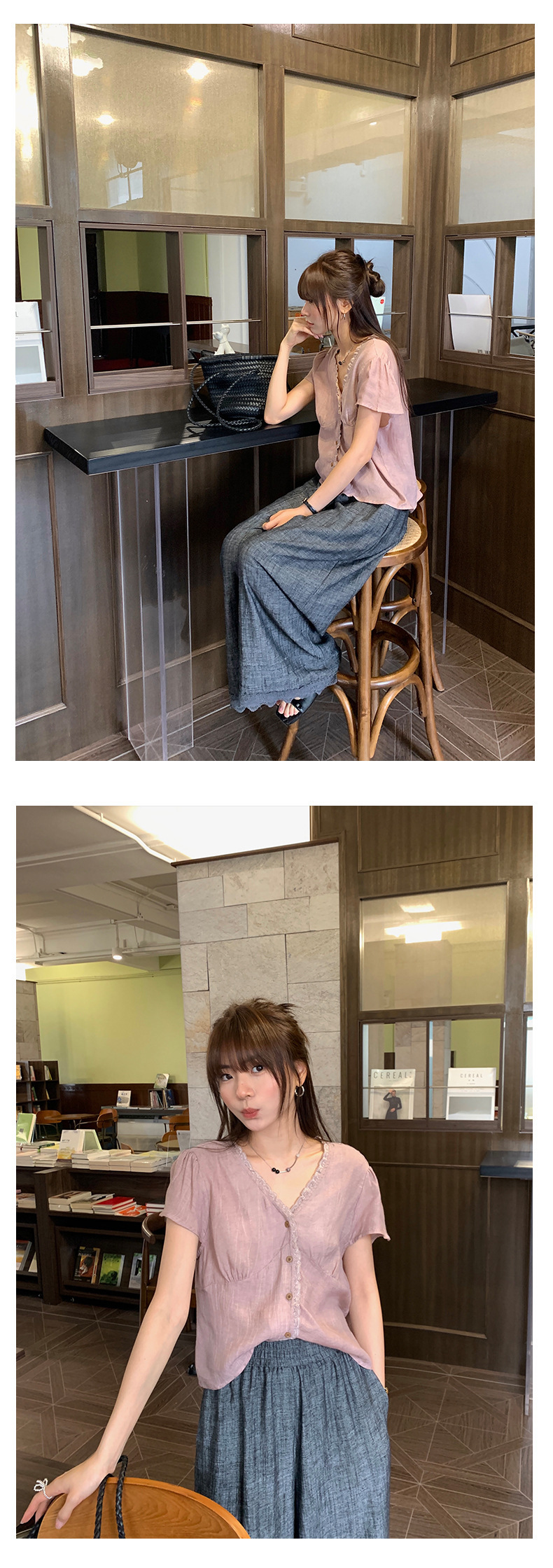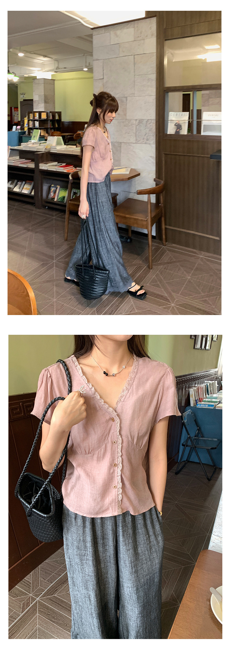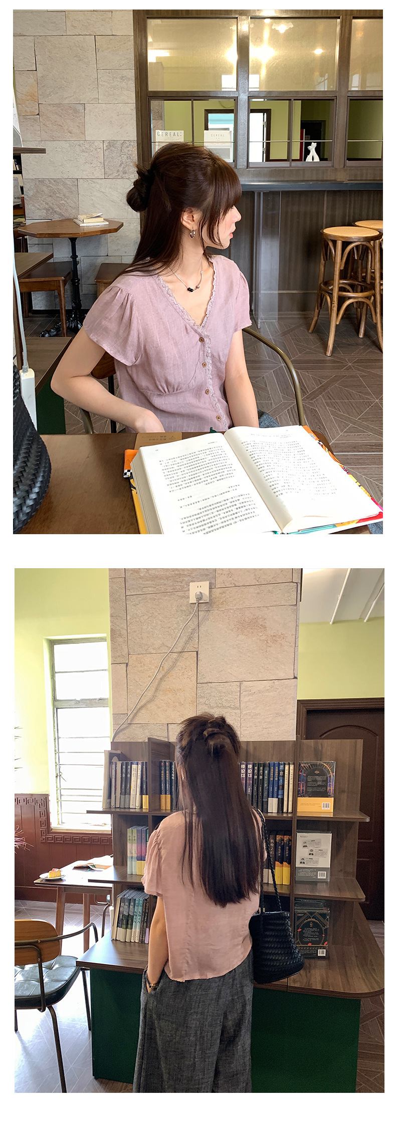*o-ha-you*【FHZ142CH4046】甜美風V領花邊開襟襯衫2024夏寬鬆顯瘦襯衣小衫-2色