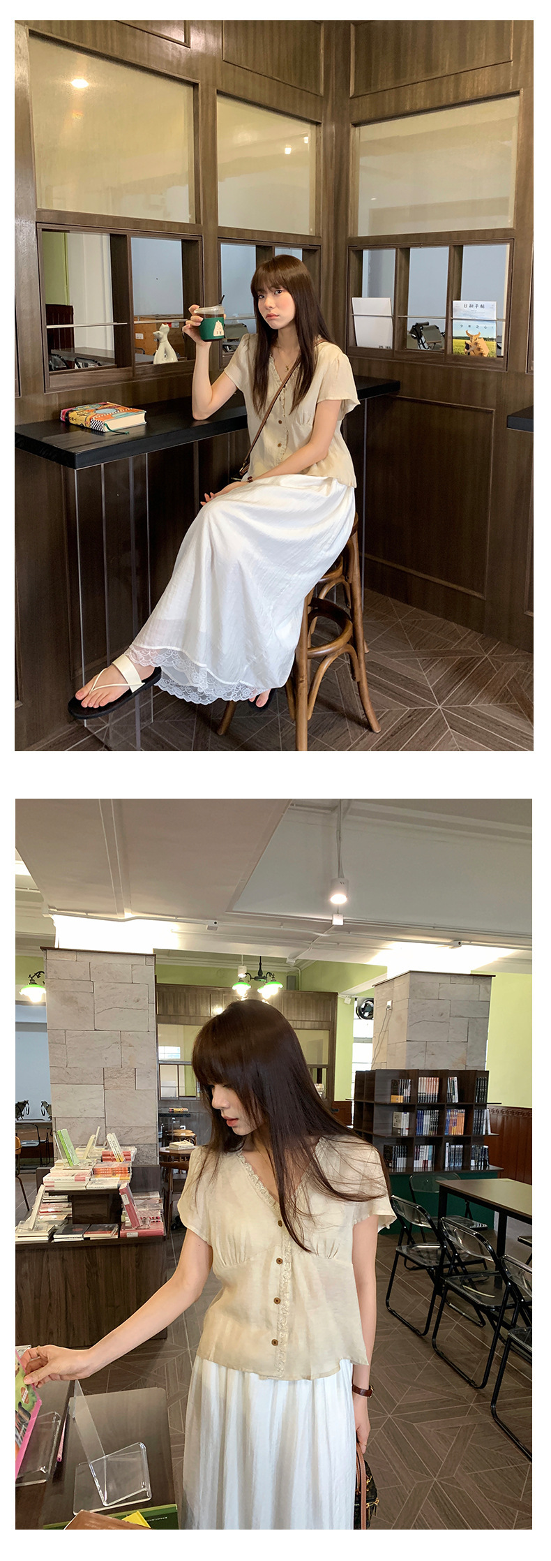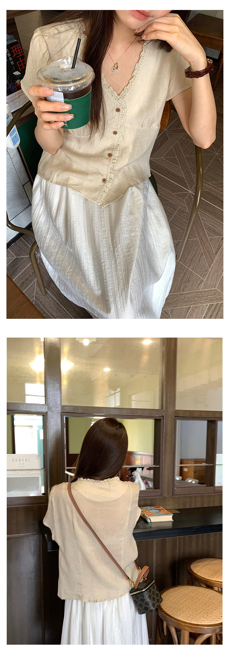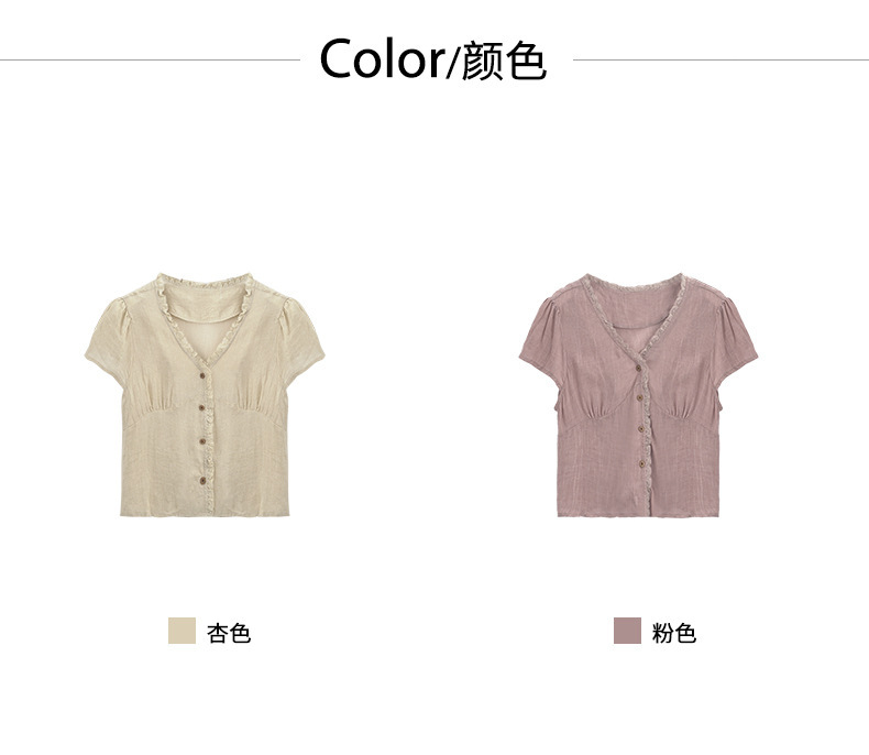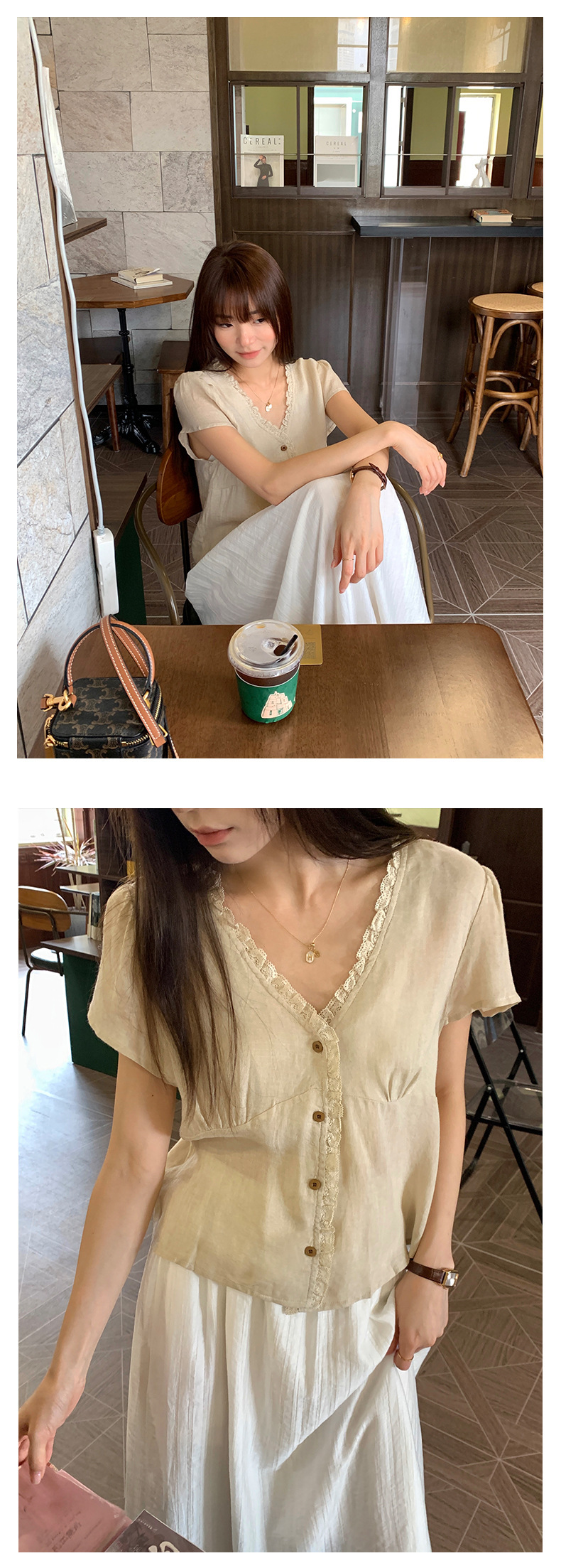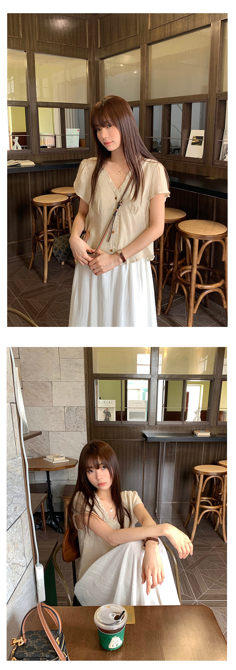 *o-ha-you*【FHZ142CH4046】甜美風V領花邊開襟襯衫2024夏寬鬆顯瘦襯衣小衫-2色