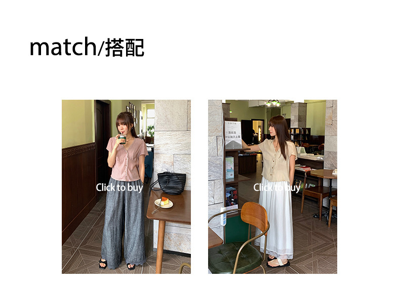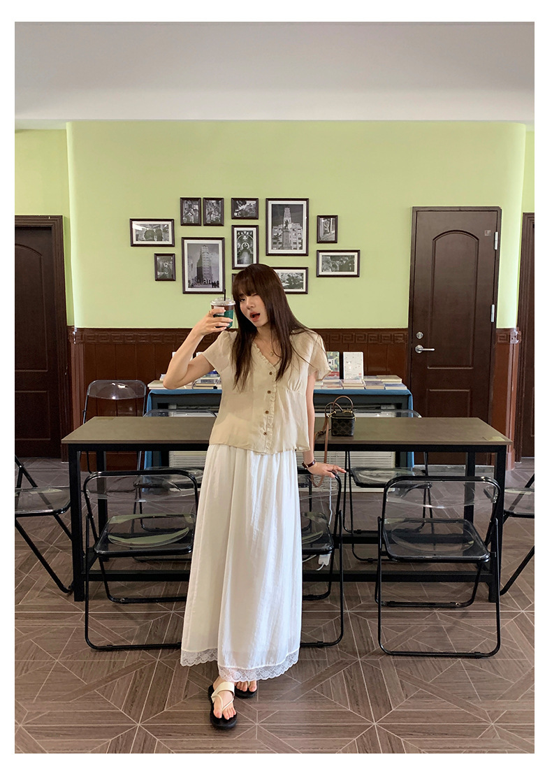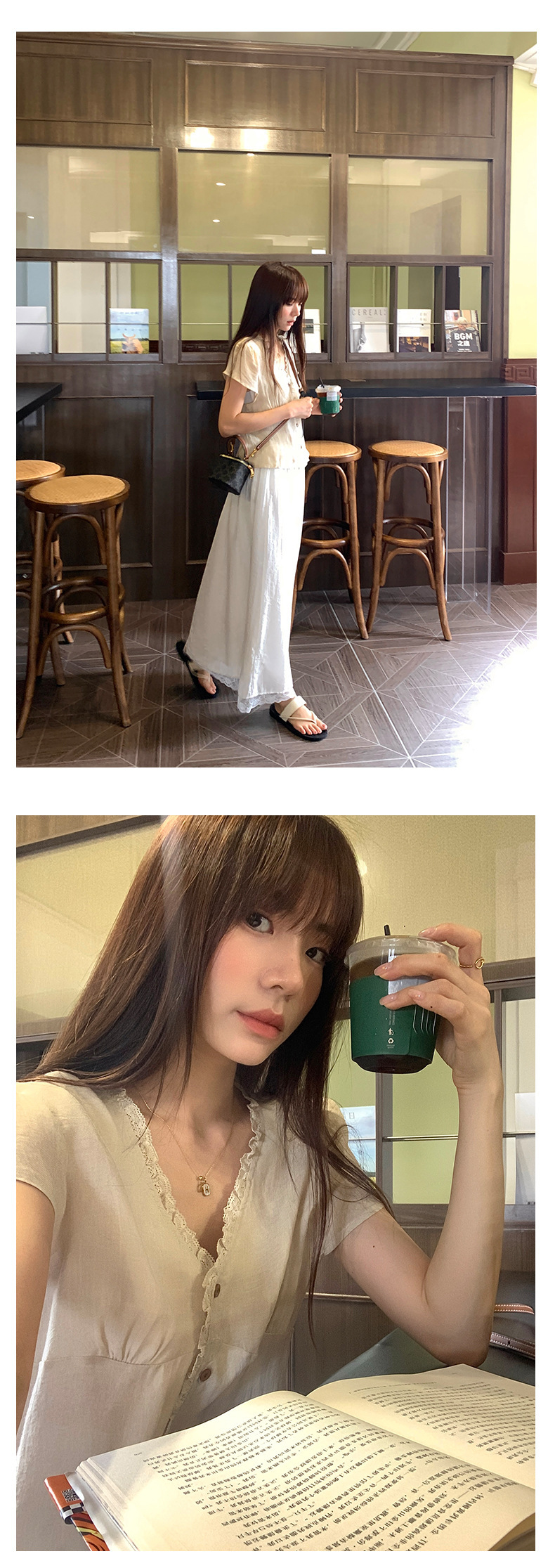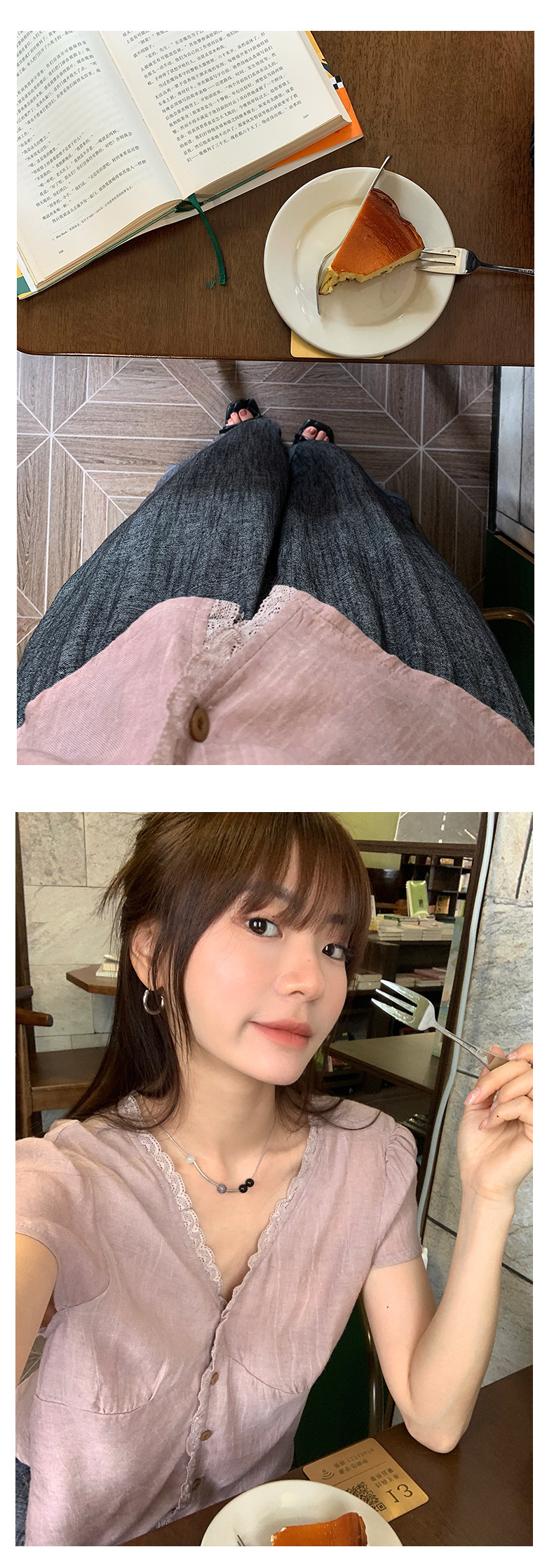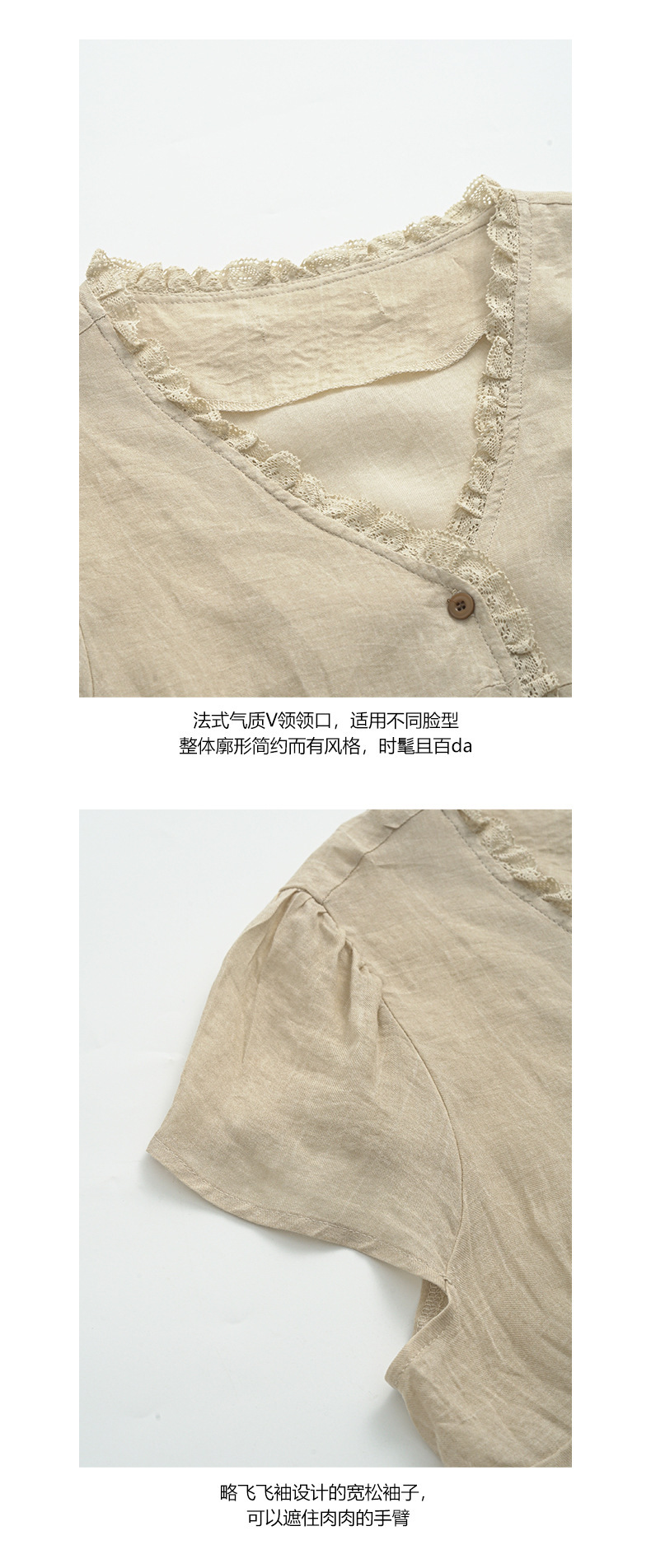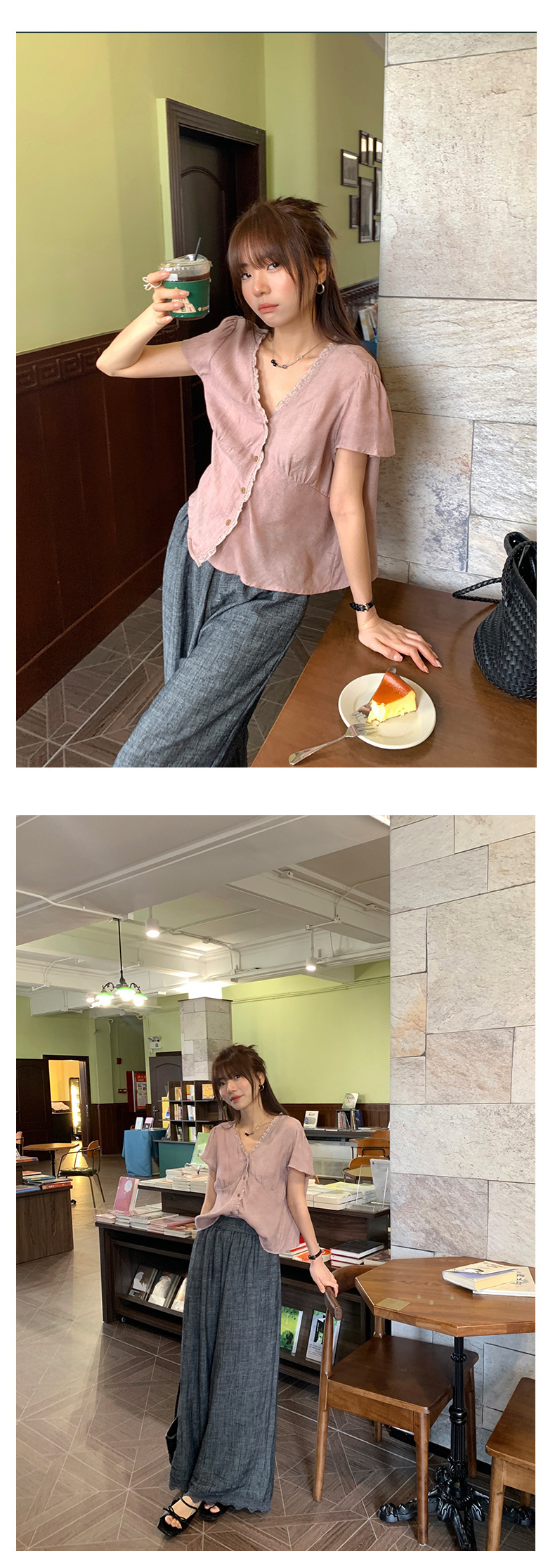 *o-ha-you*【FHZ142CH4046】甜美風V領花邊開襟襯衫2024夏寬鬆顯瘦襯衣小衫-2色