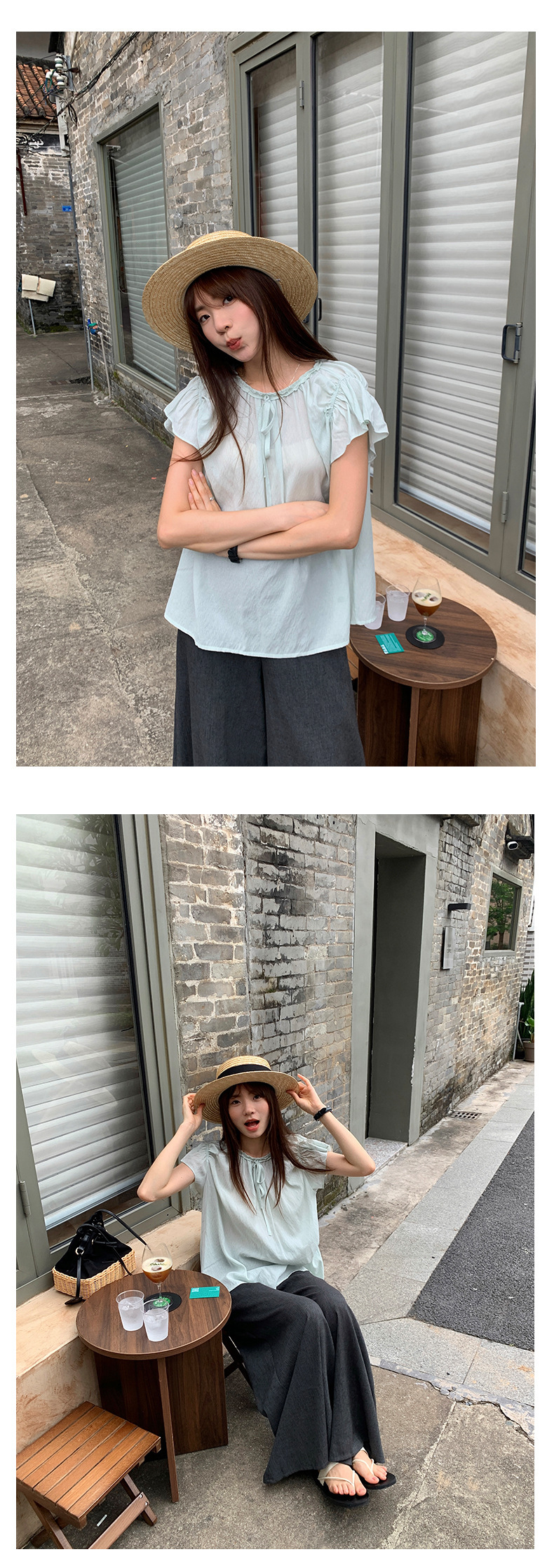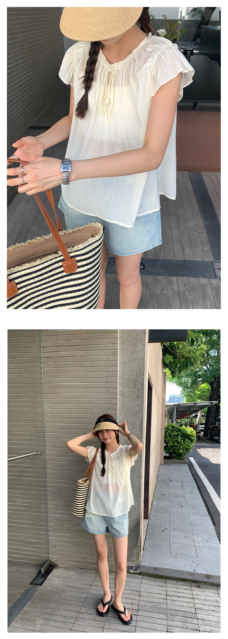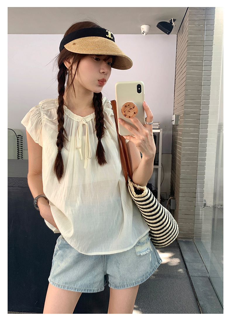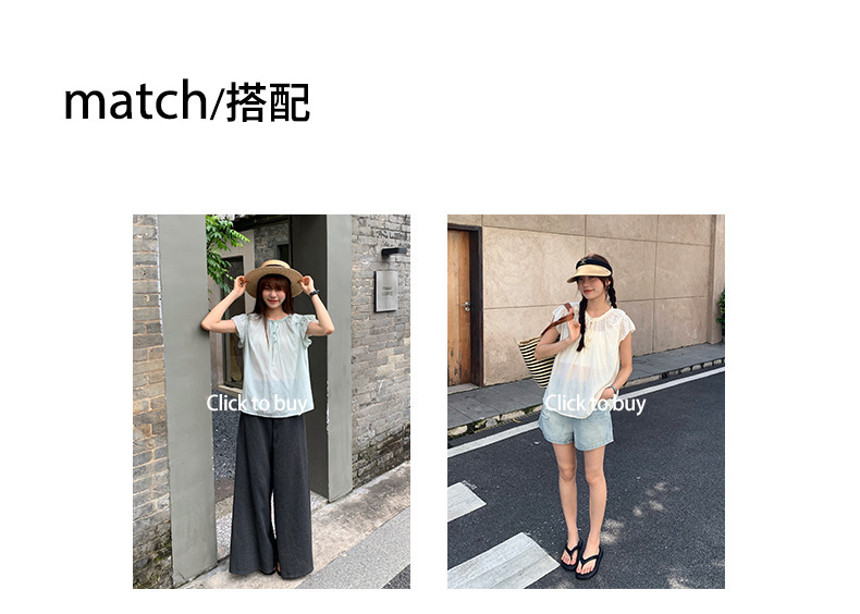 *o-ha-you*【FHZ142CH4075】鹽系飛袖襯衣娃娃衫2024夏季寬鬆休閒襯衫小衫-2色