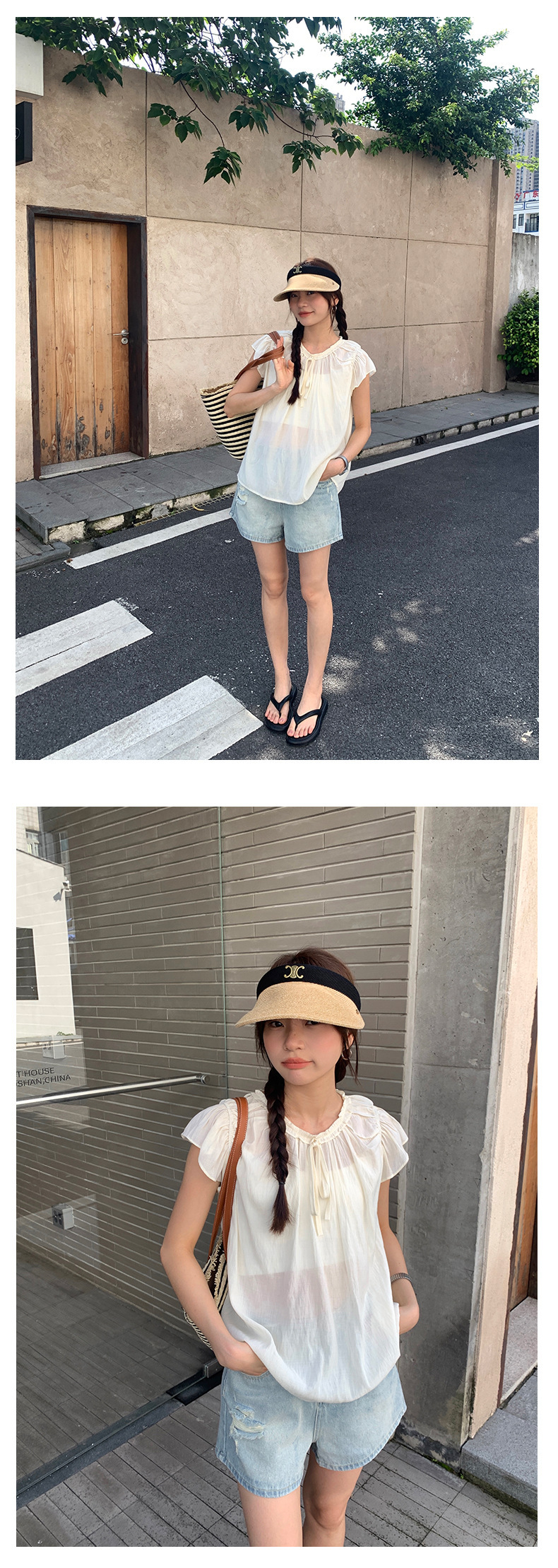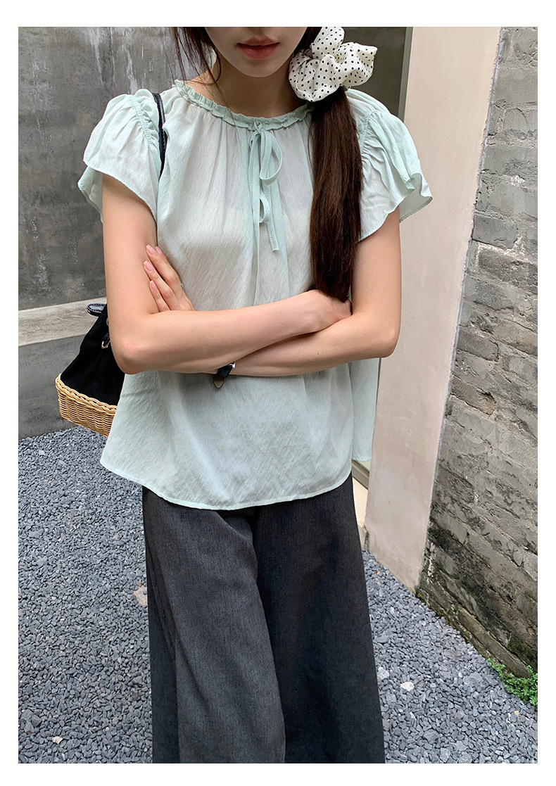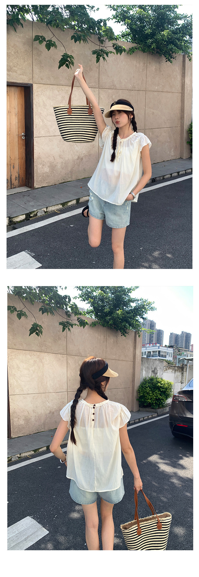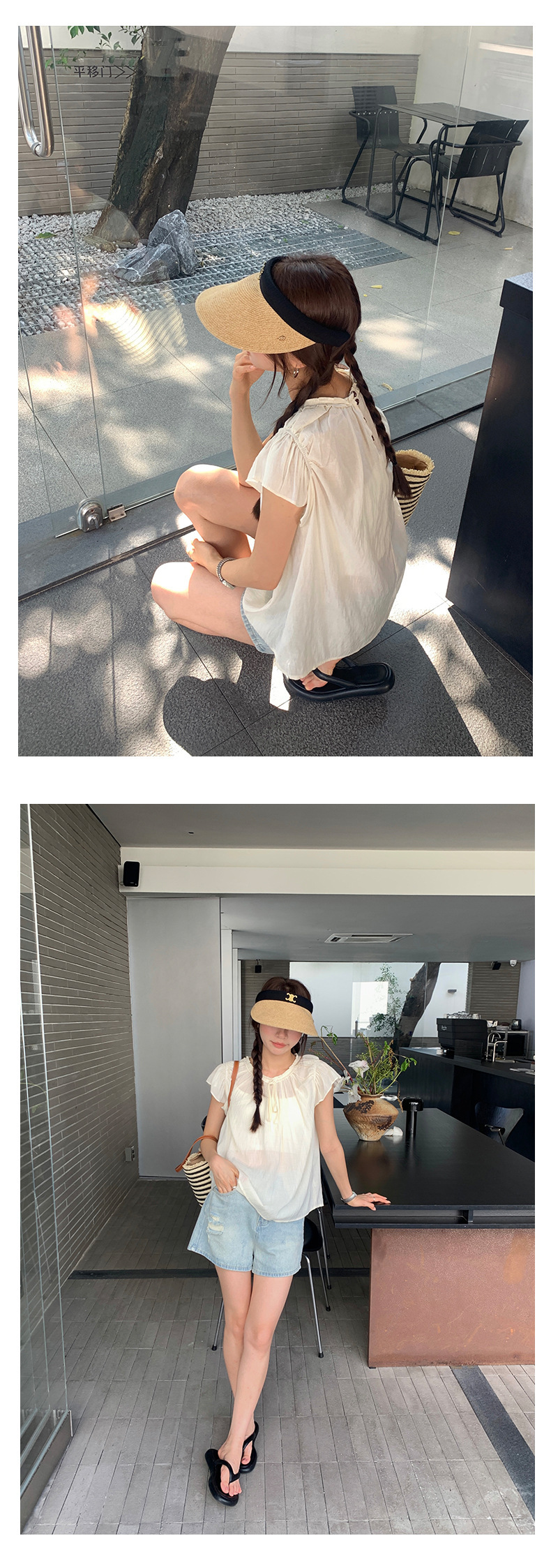 *o-ha-you*【FHZ142CH4075】鹽系飛袖襯衣娃娃衫2024夏季寬鬆休閒襯衫小衫-2色