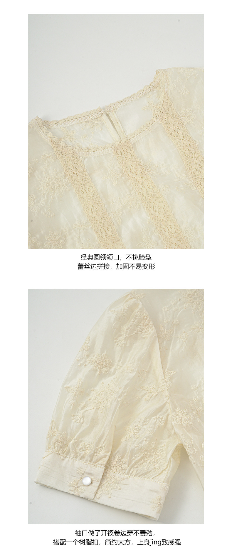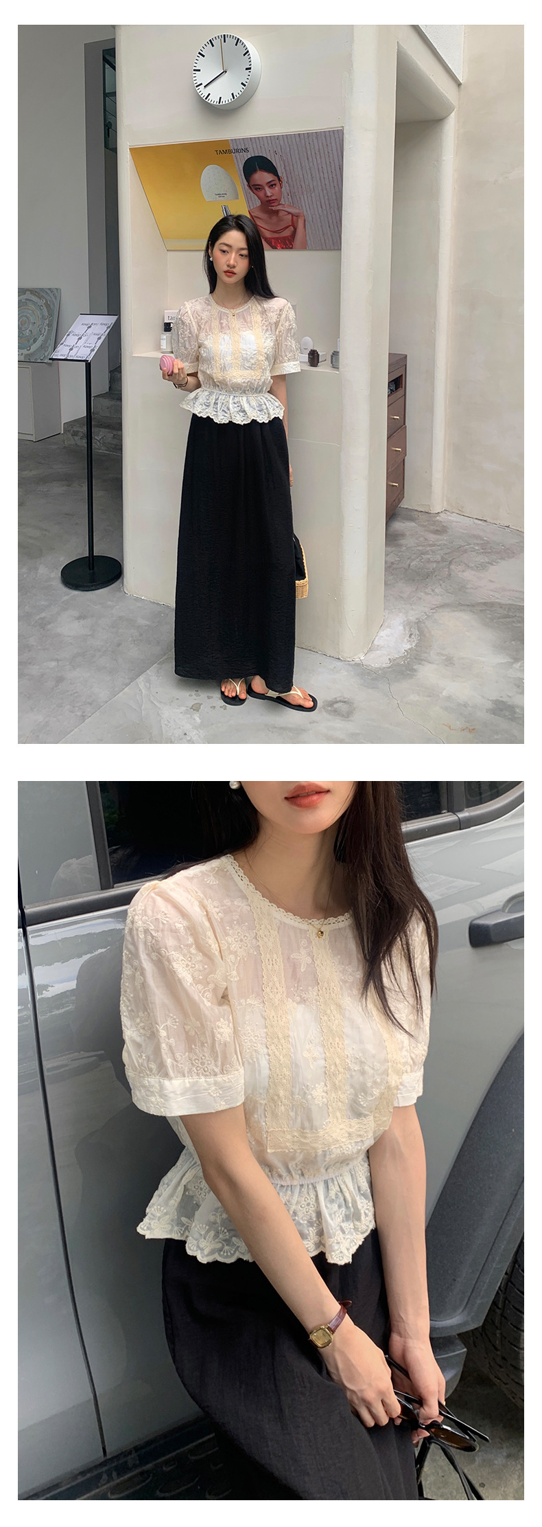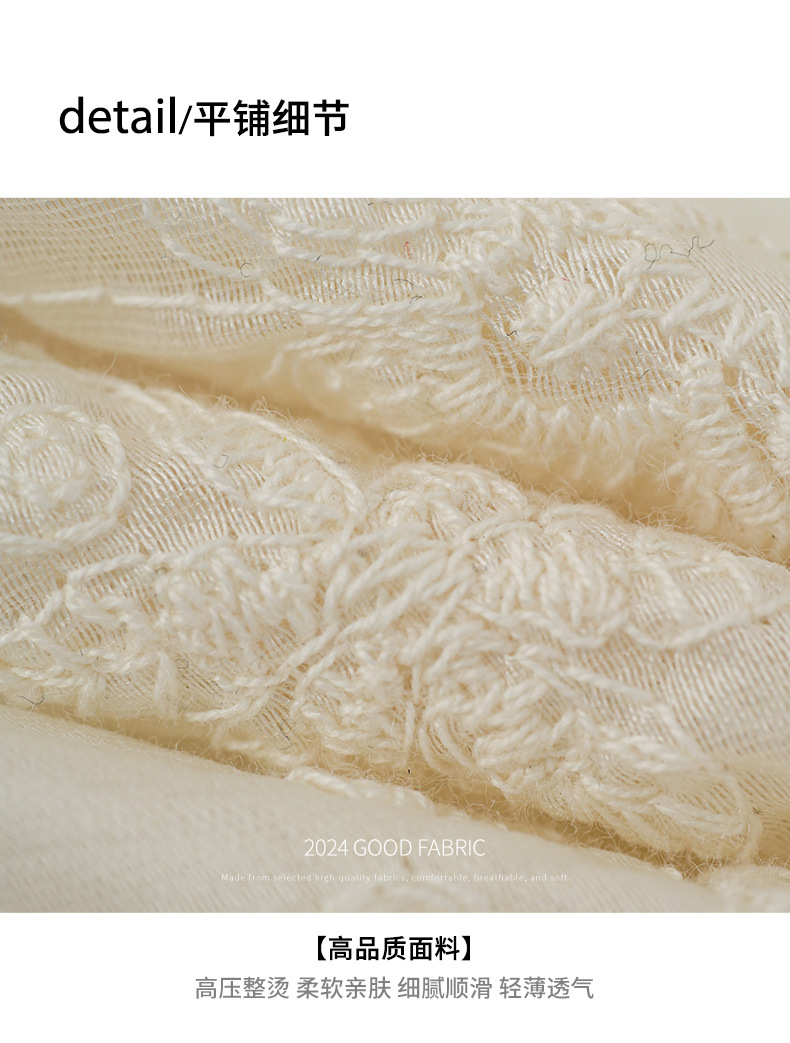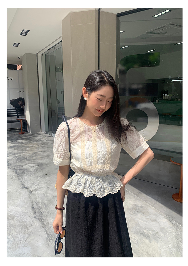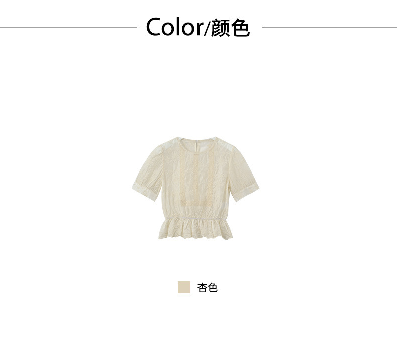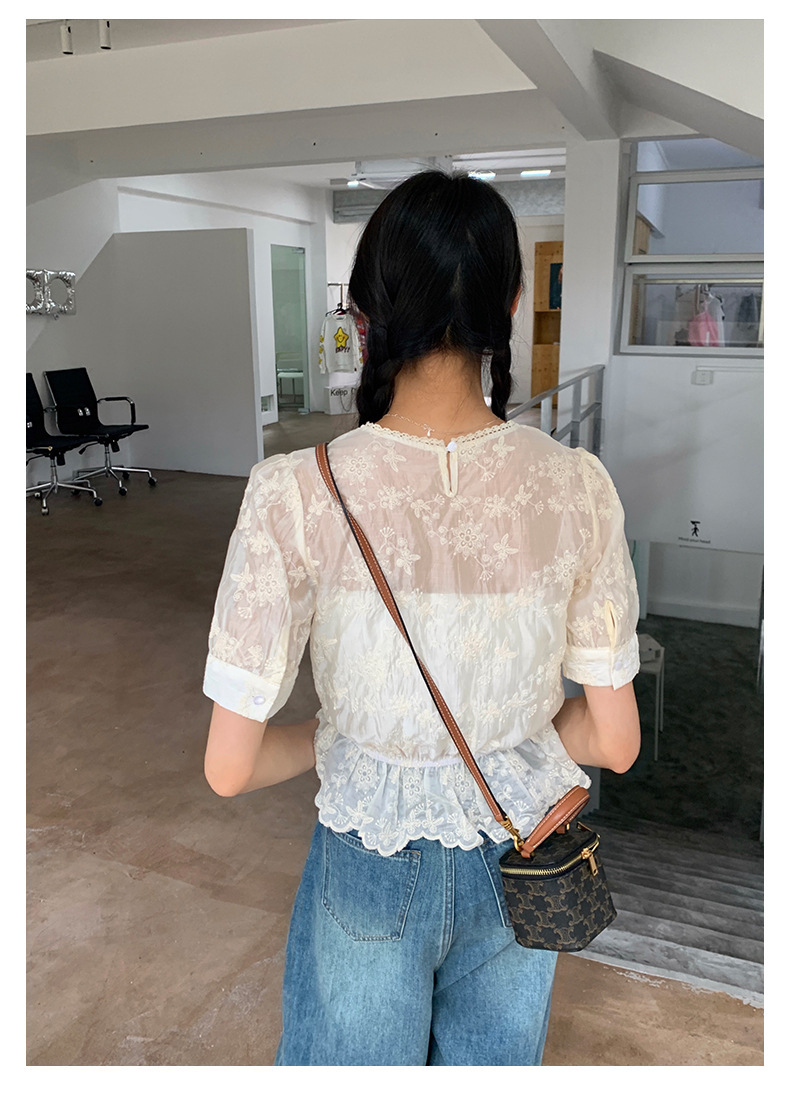 *o-ha-you*【FHZ142CH5056】法式圓領花朵刺繡短袖小衫2024夏修身顯瘦短款上衣