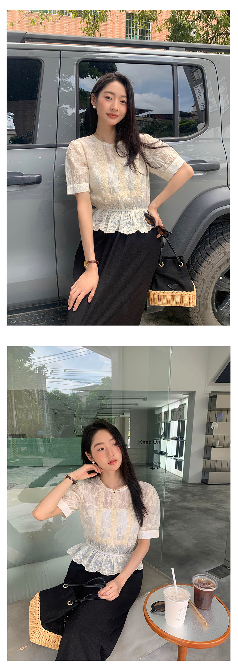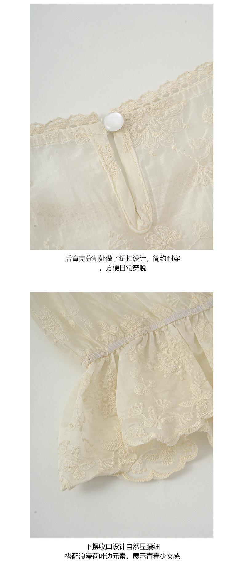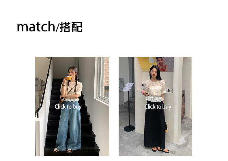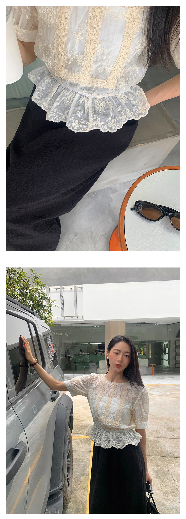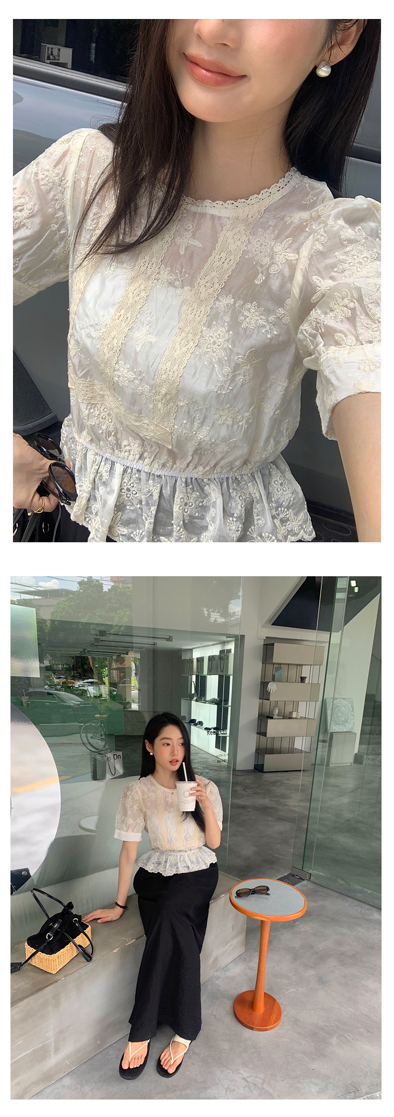 *o-ha-you*【FHZ142CH5056】法式圓領花朵刺繡短袖小衫2024夏修身顯瘦短款上衣