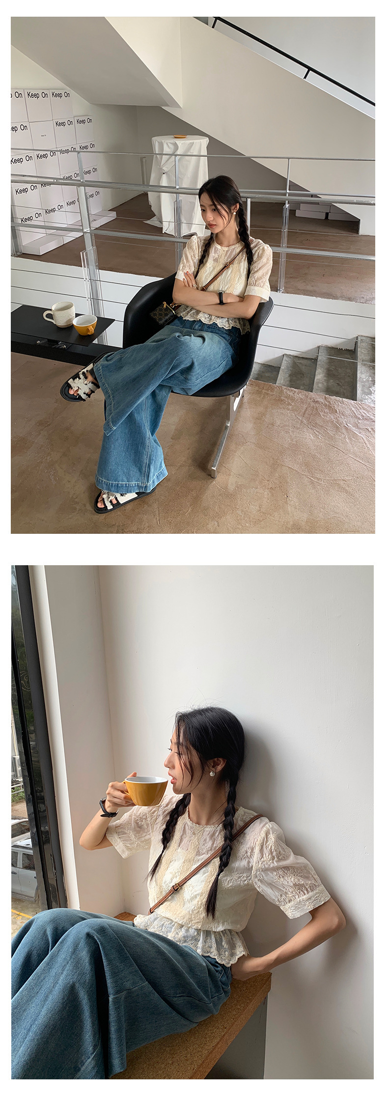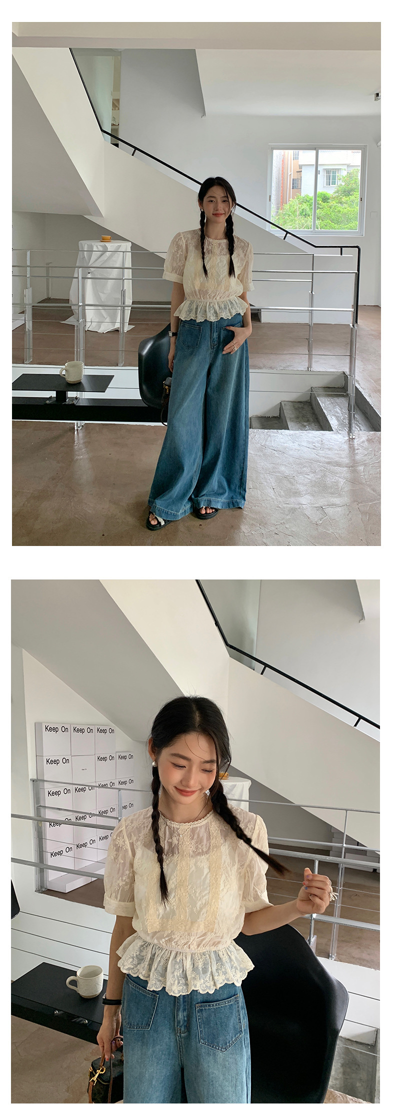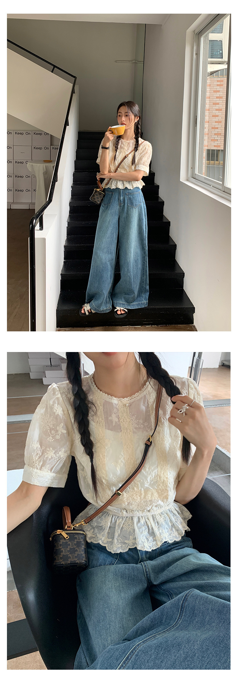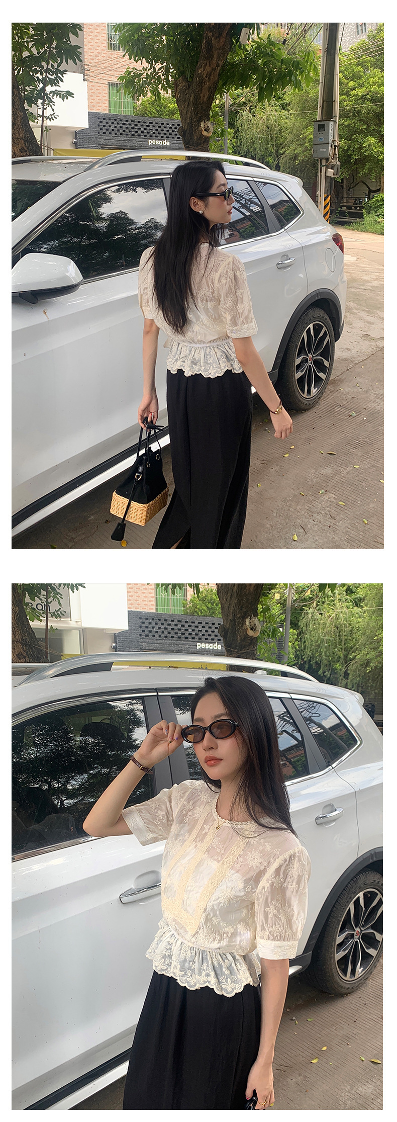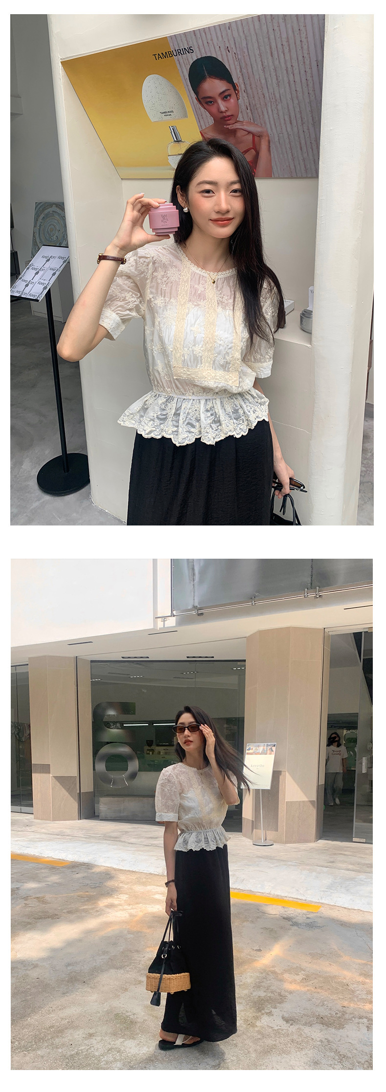*o-ha-you*【FHZ142CH5056】法式圓領花朵刺繡短袖小衫2024夏修身顯瘦短款上衣