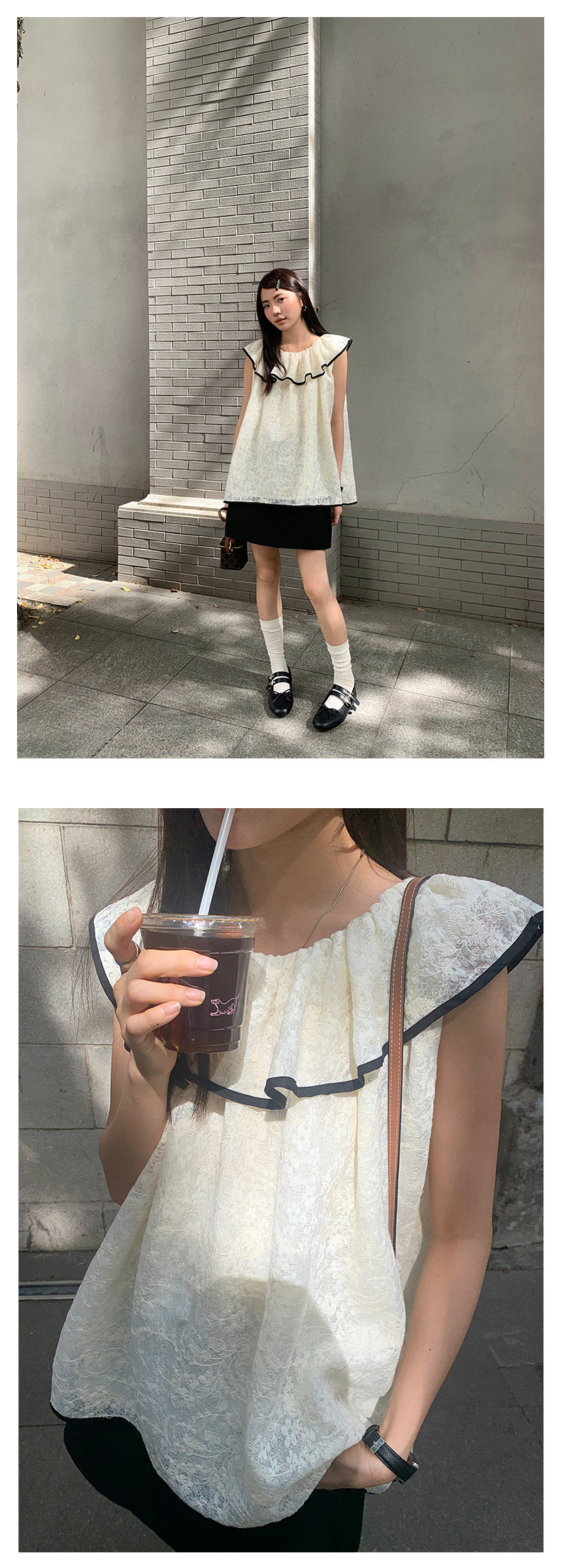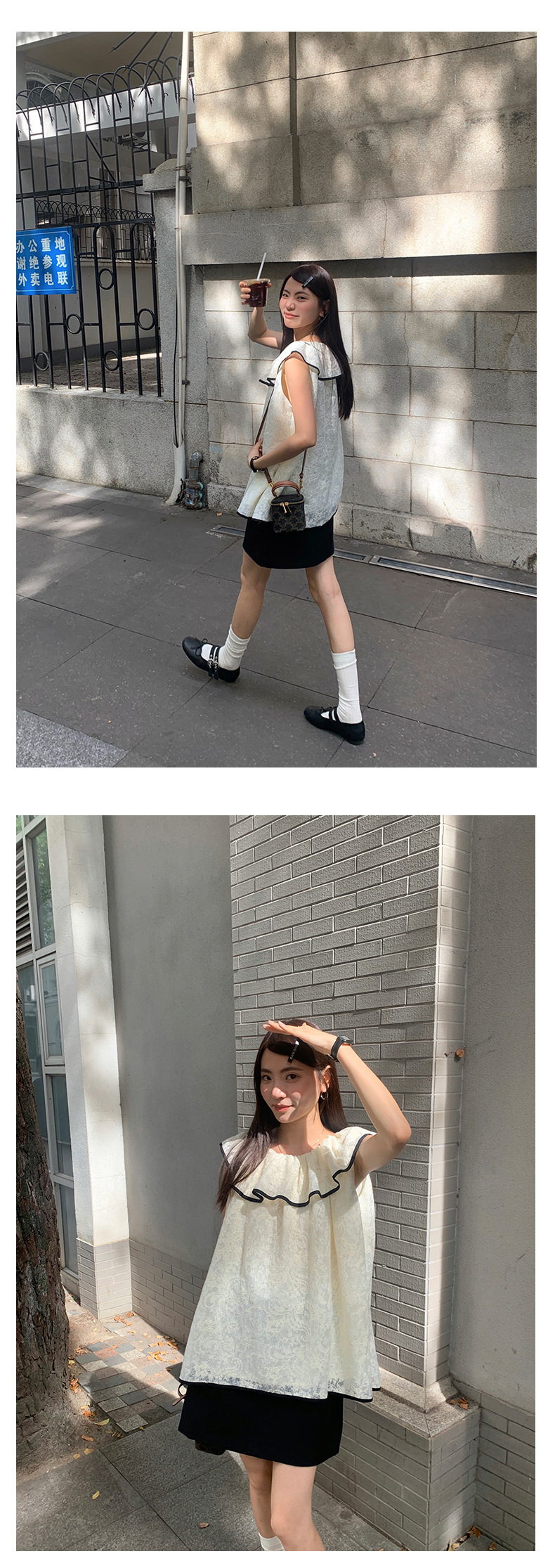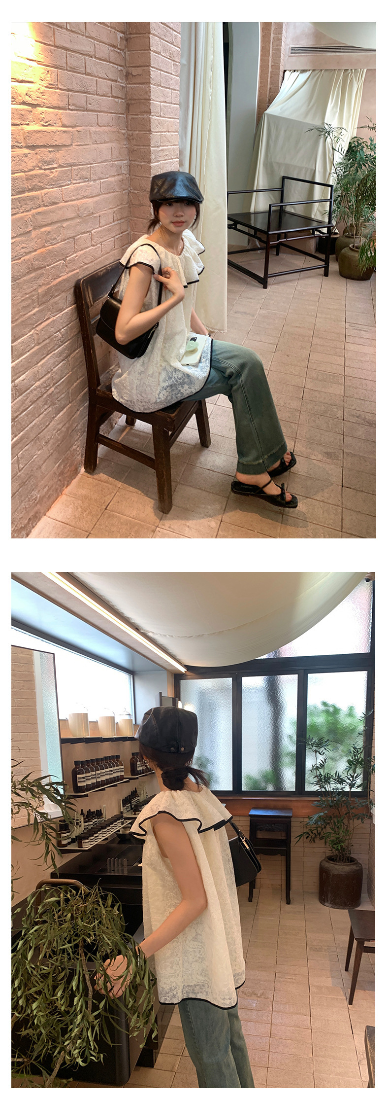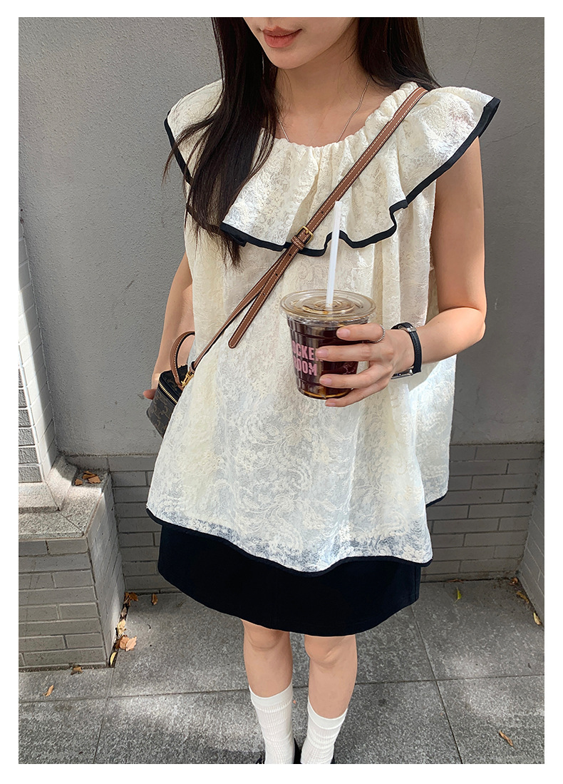 *o-ha-you*【FHZ142CH5073】韓系娃娃領蕾絲刺繡襯衫2024夏季寬鬆無袖小衫短袖