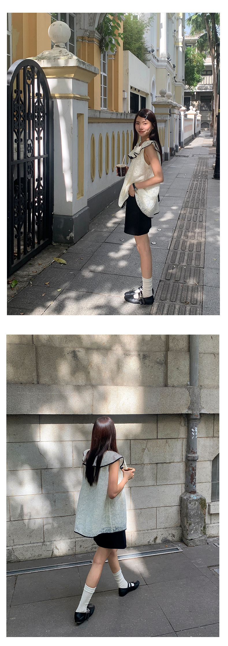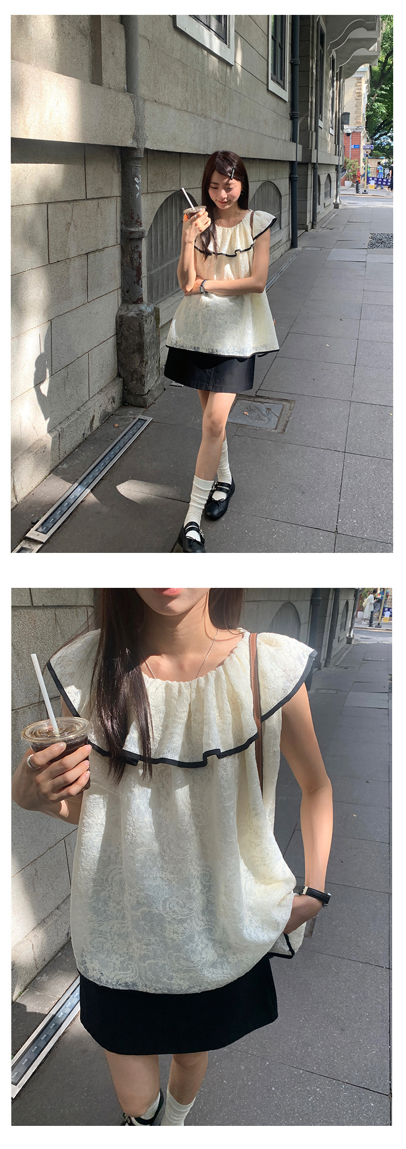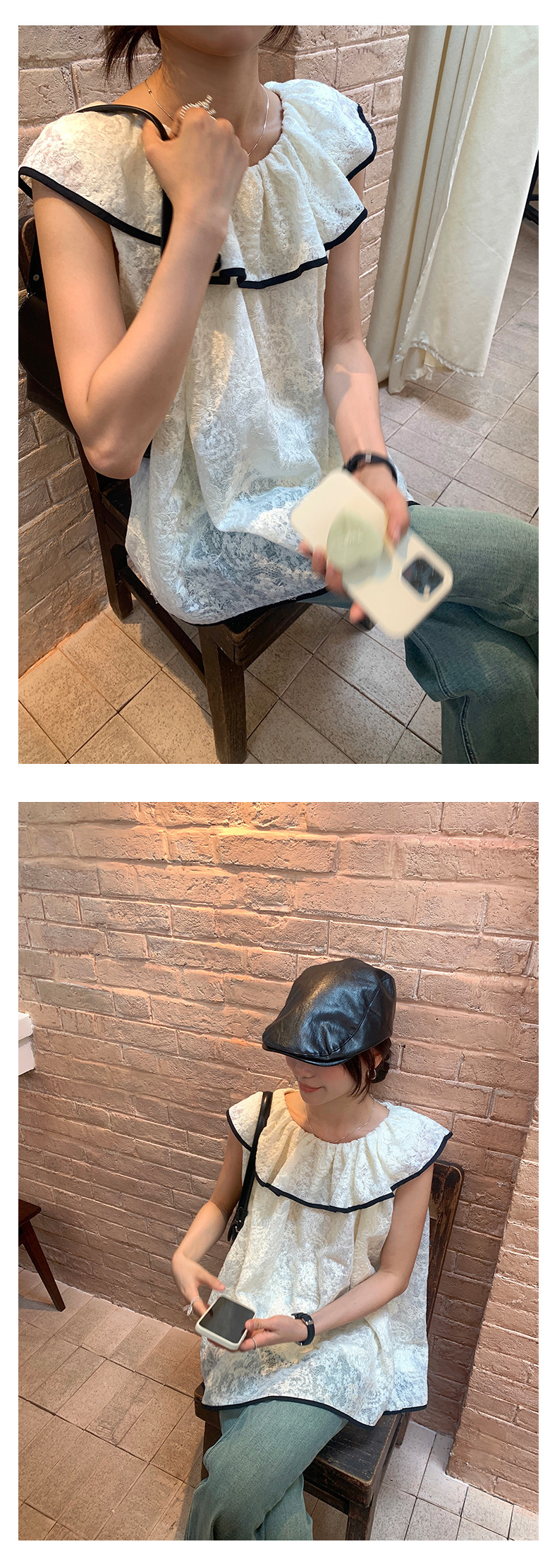 *o-ha-you*【FHZ142CH5073】韓系娃娃領蕾絲刺繡襯衫2024夏季寬鬆無袖小衫短袖