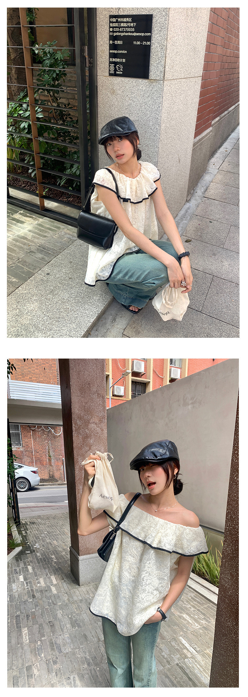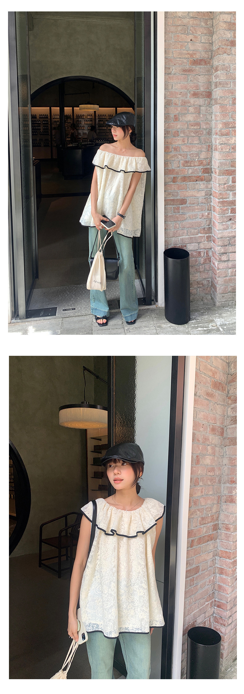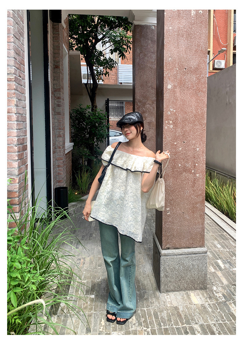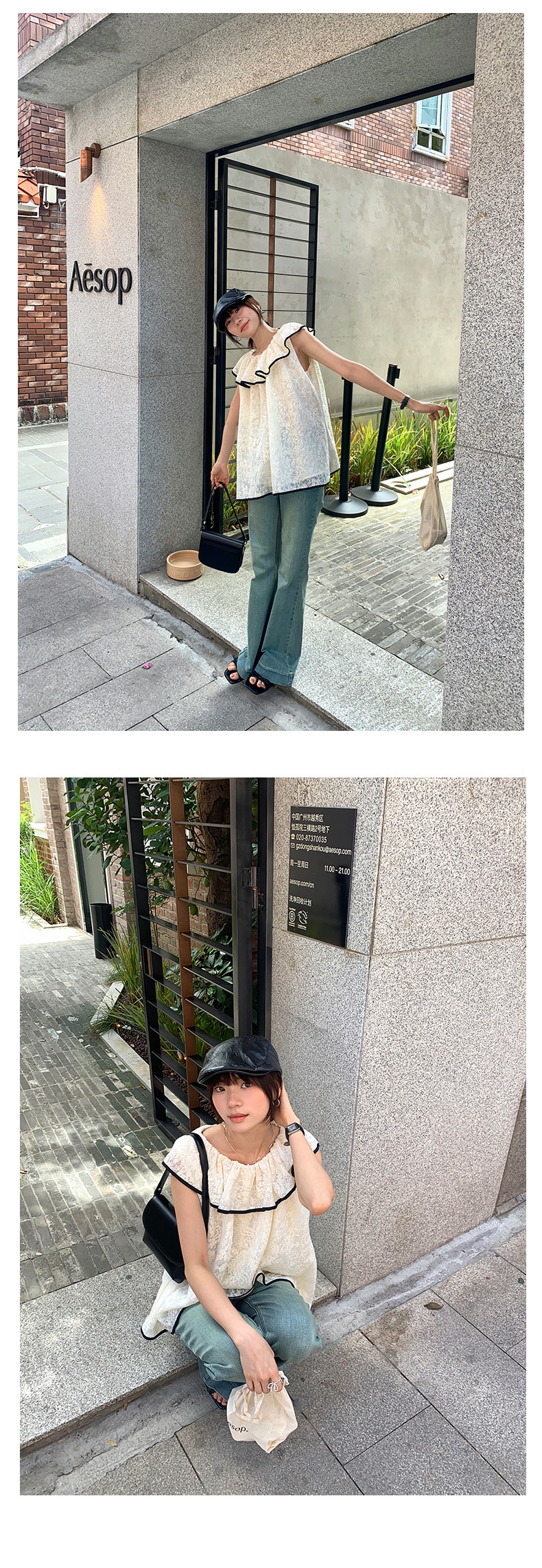 *o-ha-you*【FHZ142CH5073】韓系娃娃領蕾絲刺繡襯衫2024夏季寬鬆無袖小衫短袖
