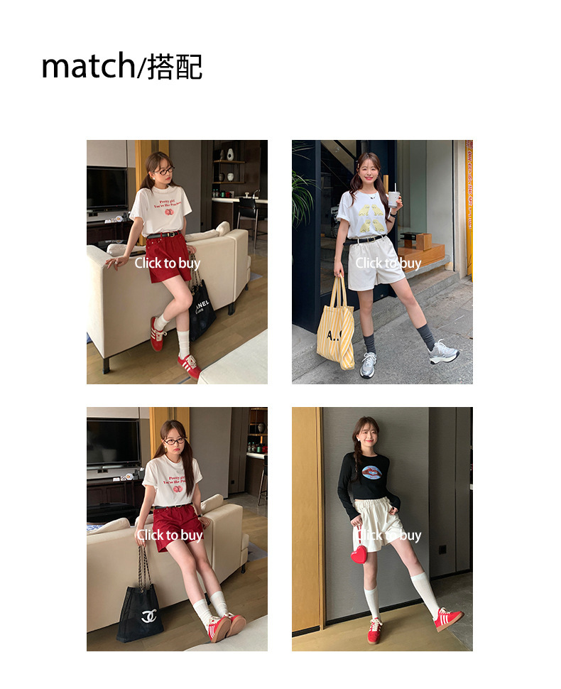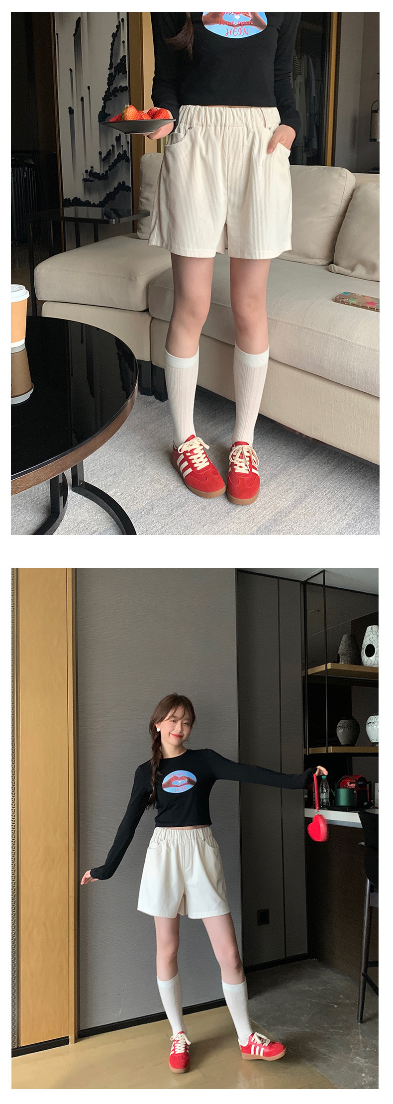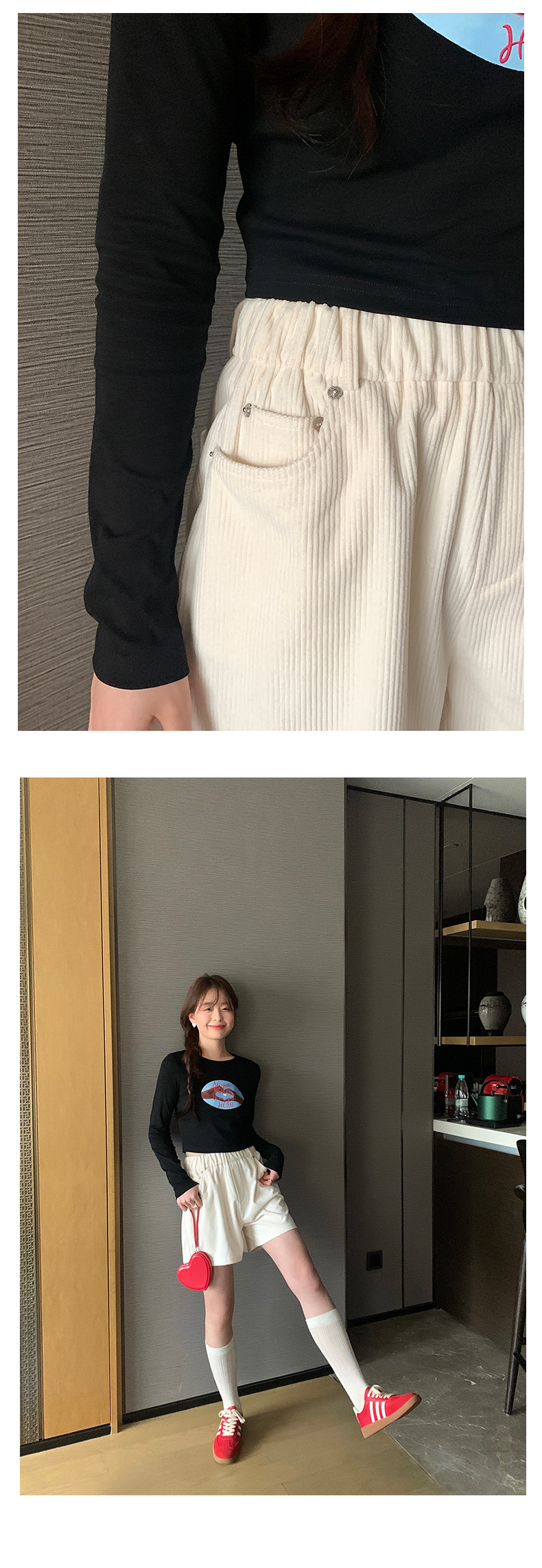 *o-ha-you*【FHZ142KH2056】復古慵懶鬆緊腰五分褲短褲2024夏季韓系百搭闊腿褲-2色-如有需要請先諮詢