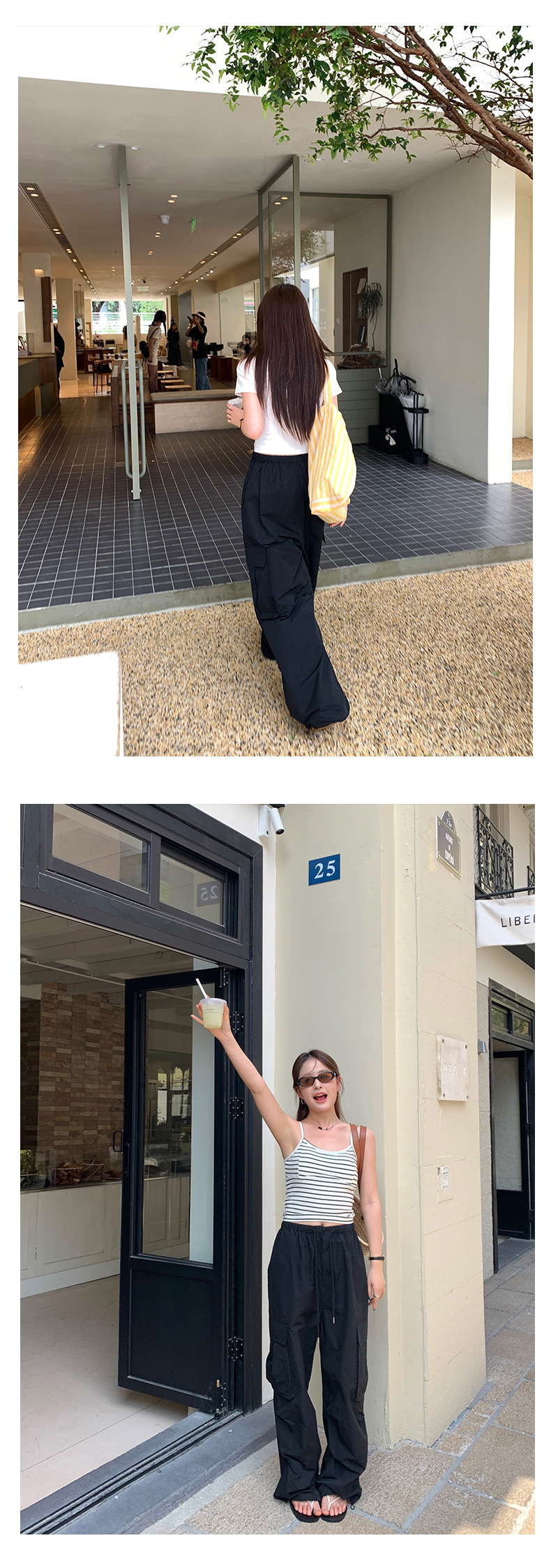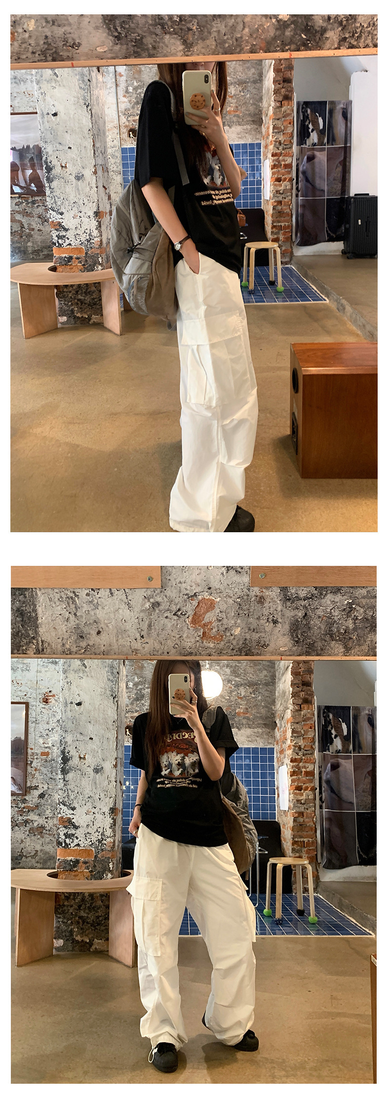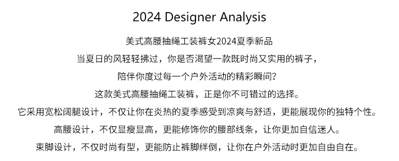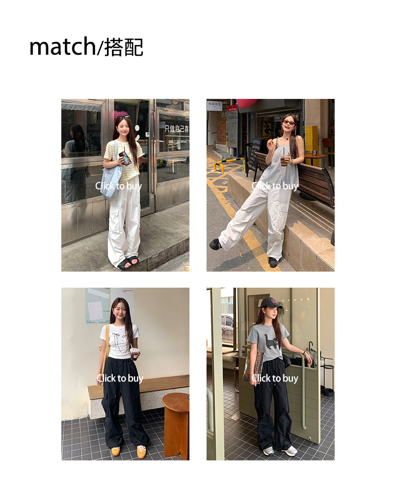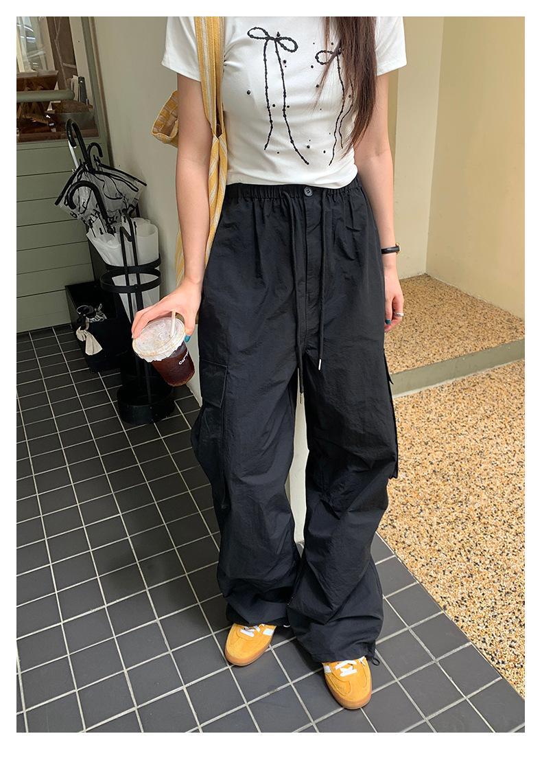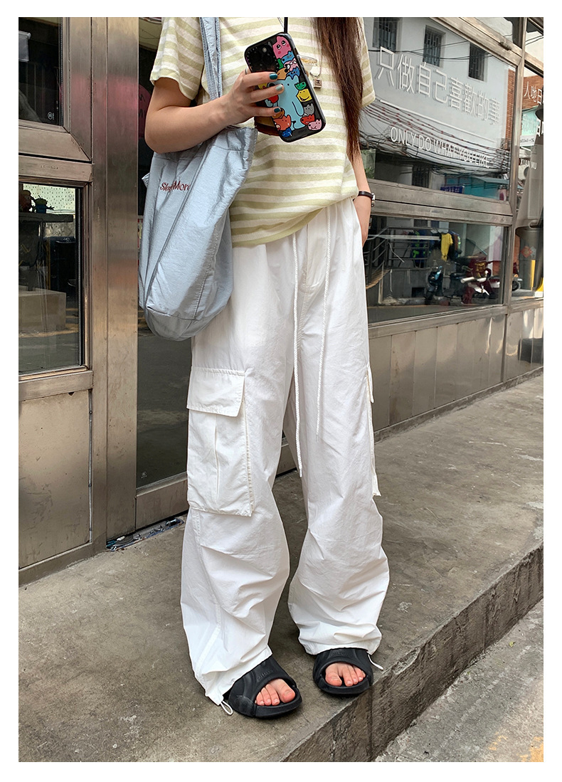 *o-ha-you*【FHZ142KH3021】美式高腰抽繩工裝褲2024夏季寬鬆闊腿戶外束腳褲子-2色-如有需要請先諮詢