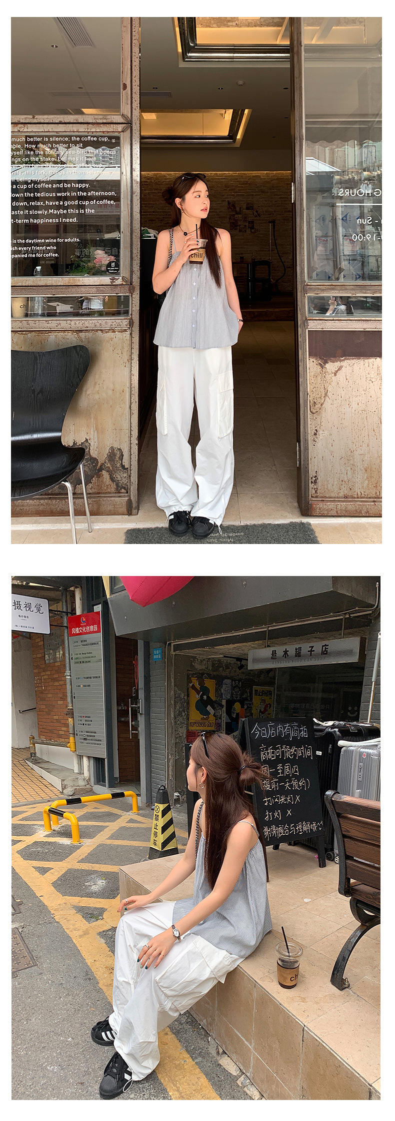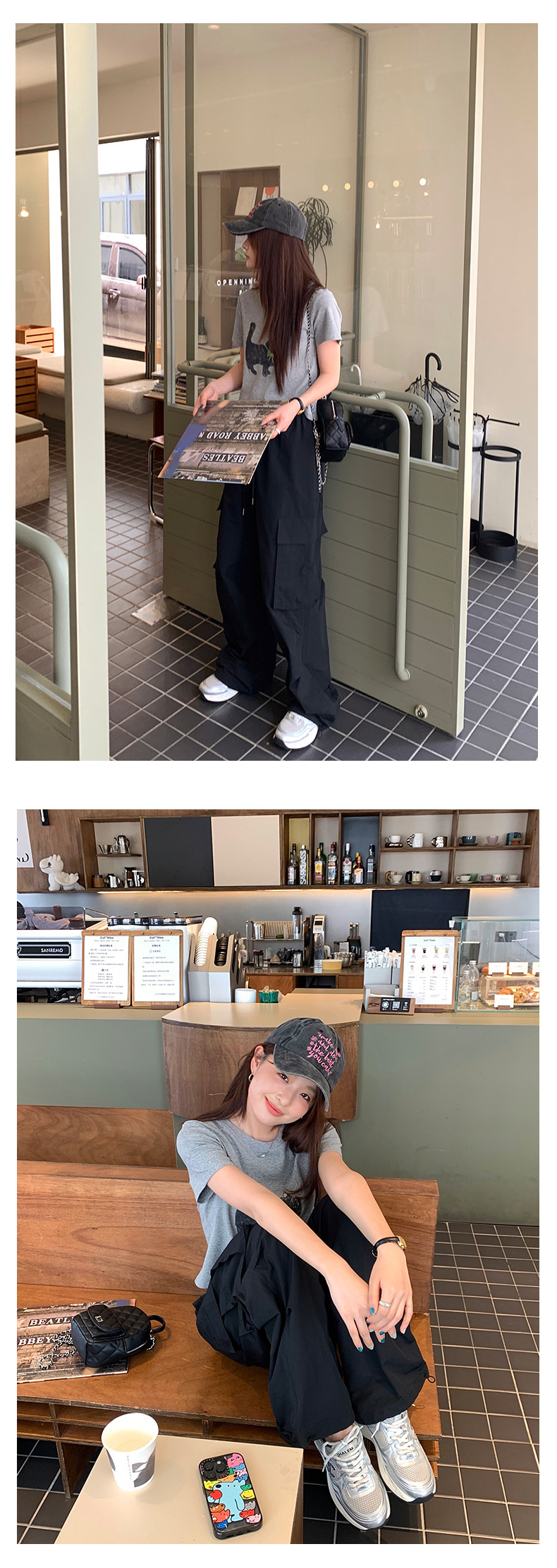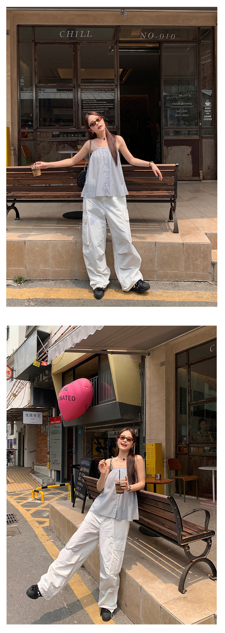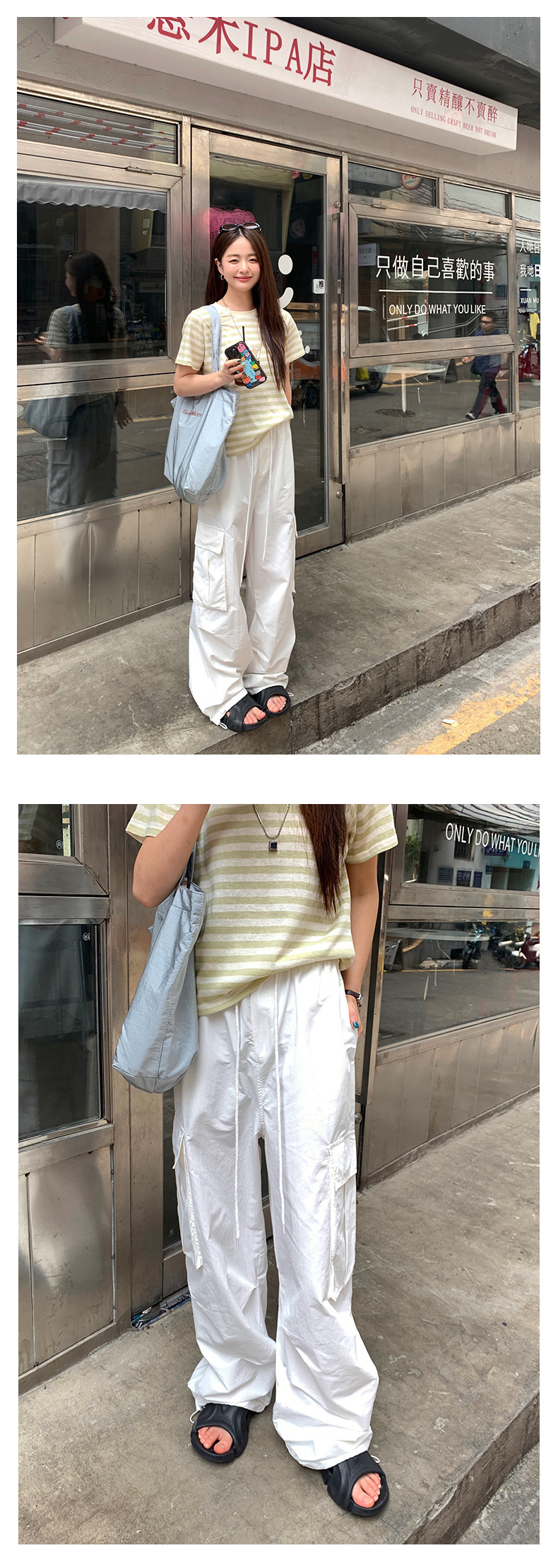 *o-ha-you*【FHZ142KH3021】美式高腰抽繩工裝褲2024夏季寬鬆闊腿戶外束腳褲子-2色-如有需要請先諮詢