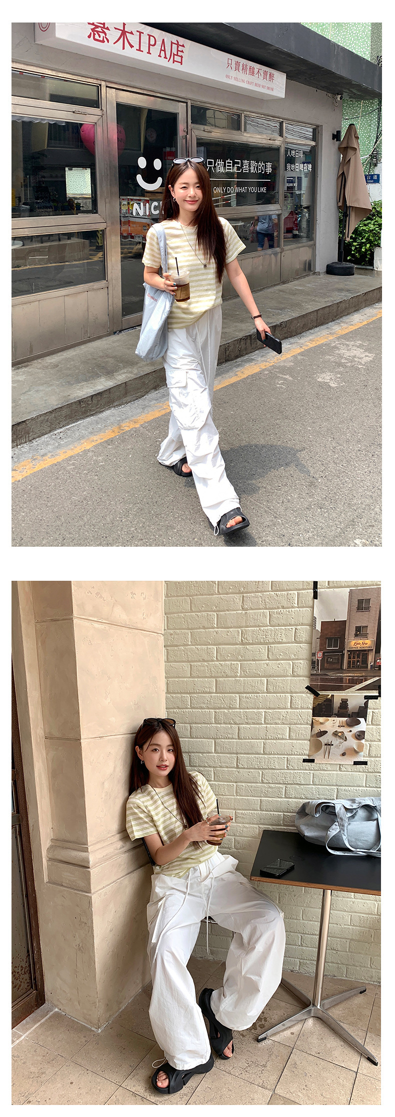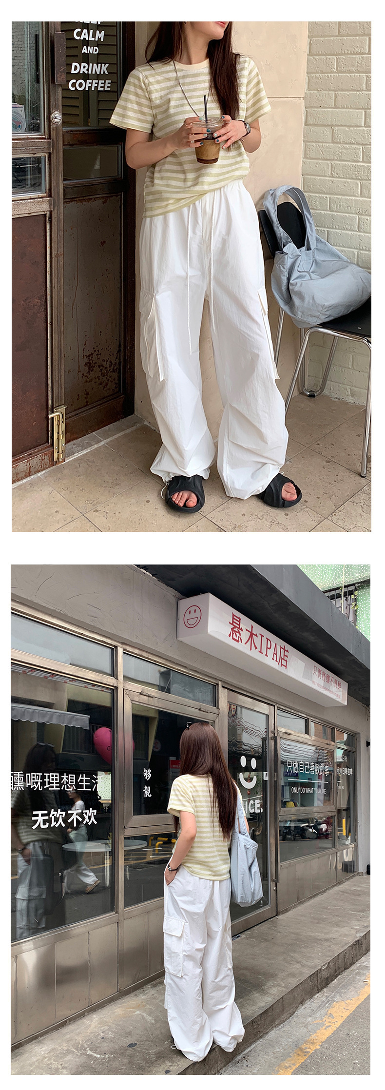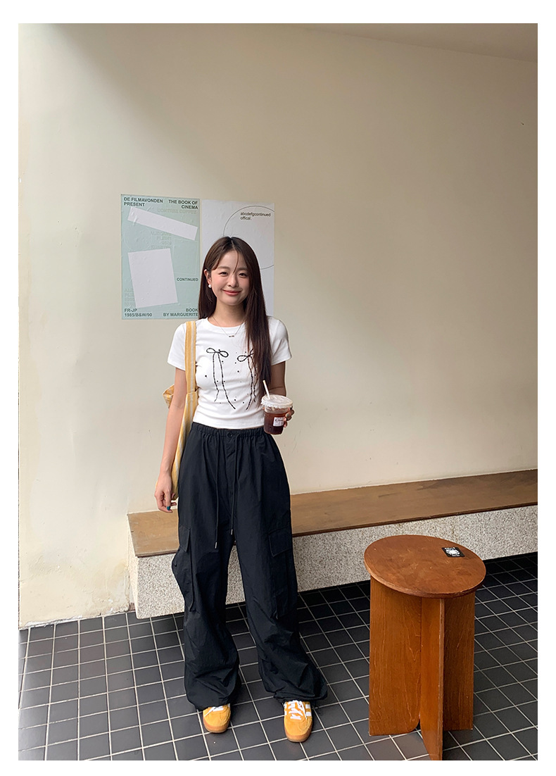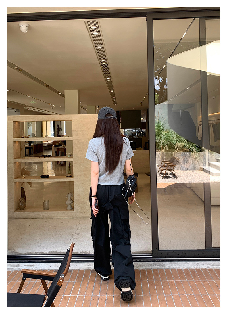 *o-ha-you*【FHZ142KH3021】美式高腰抽繩工裝褲2024夏季寬鬆闊腿戶外束腳褲子-2色-如有需要請先諮詢