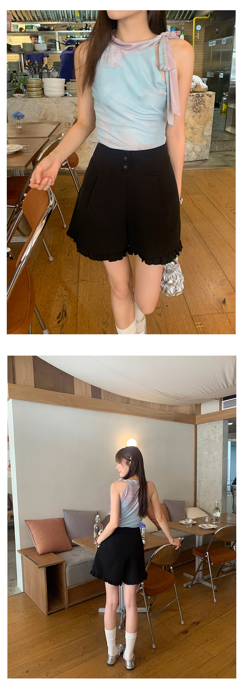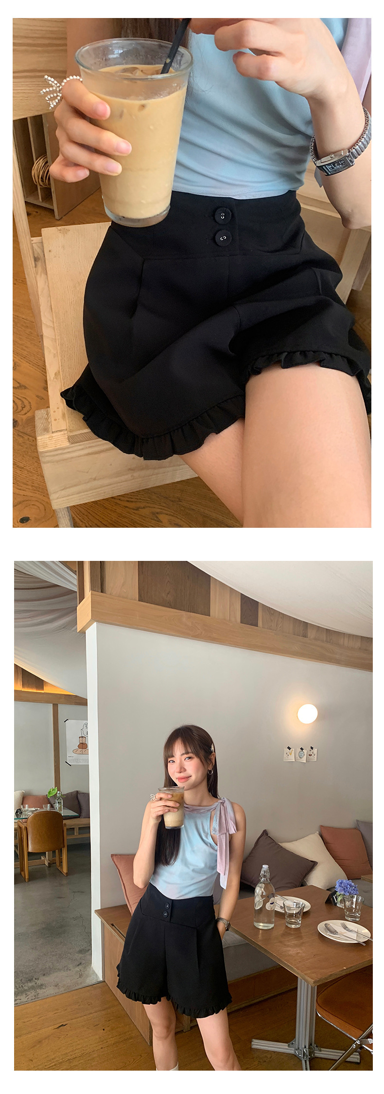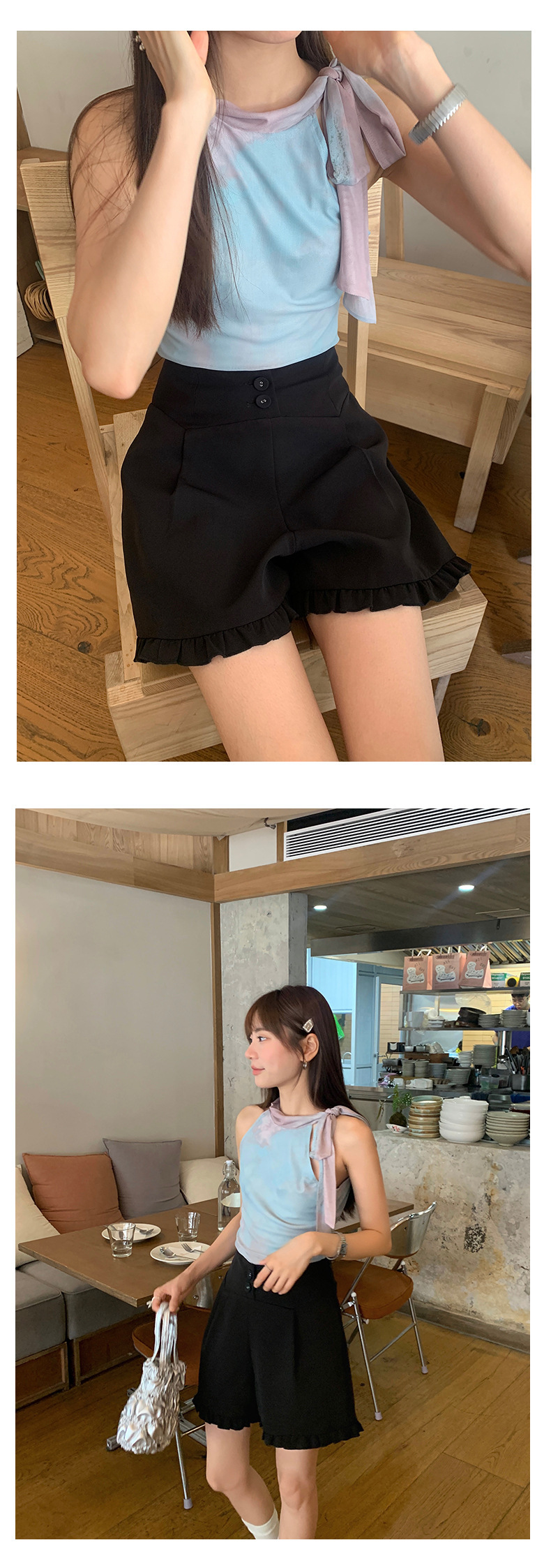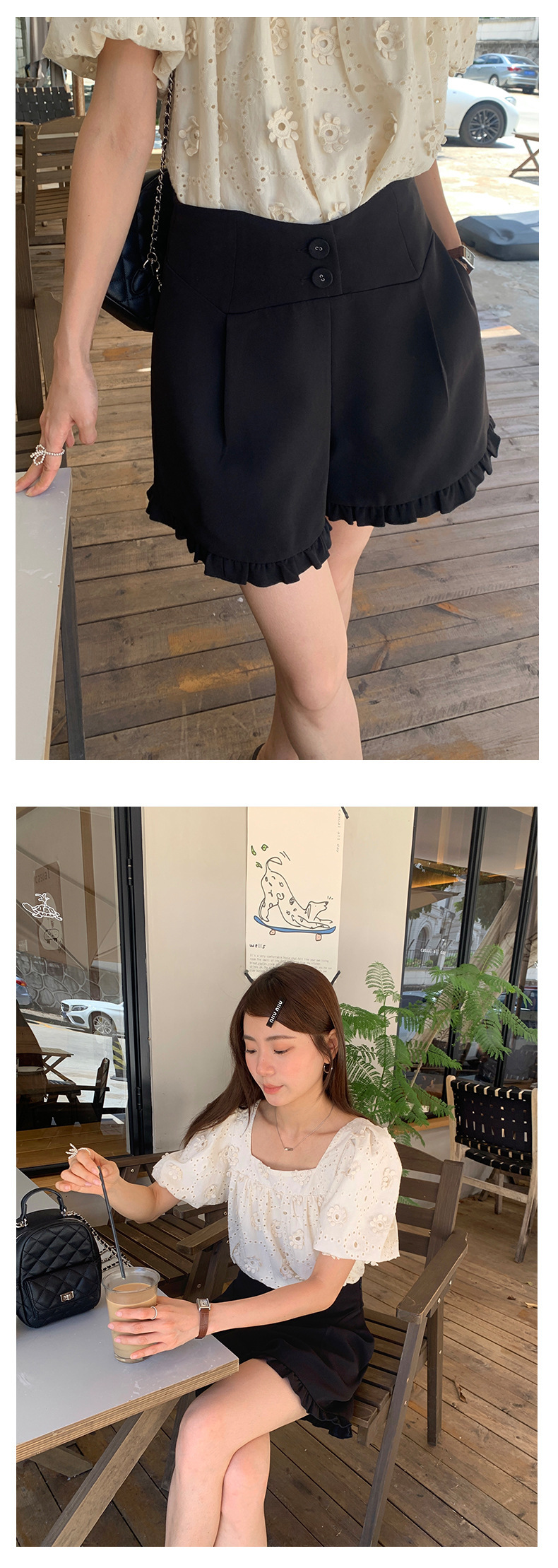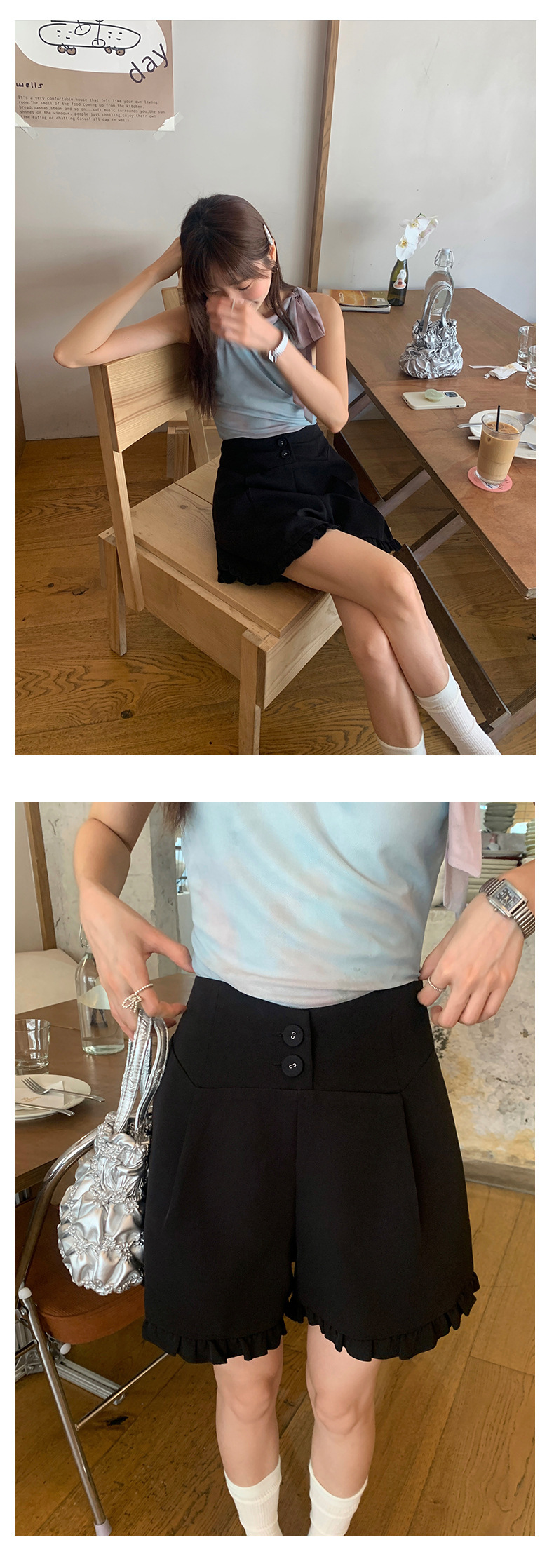 *o-ha-you*【FHZ142KH5062】設計感木耳邊高腰闊腿短褲2024夏季顯瘦A字包臀褲