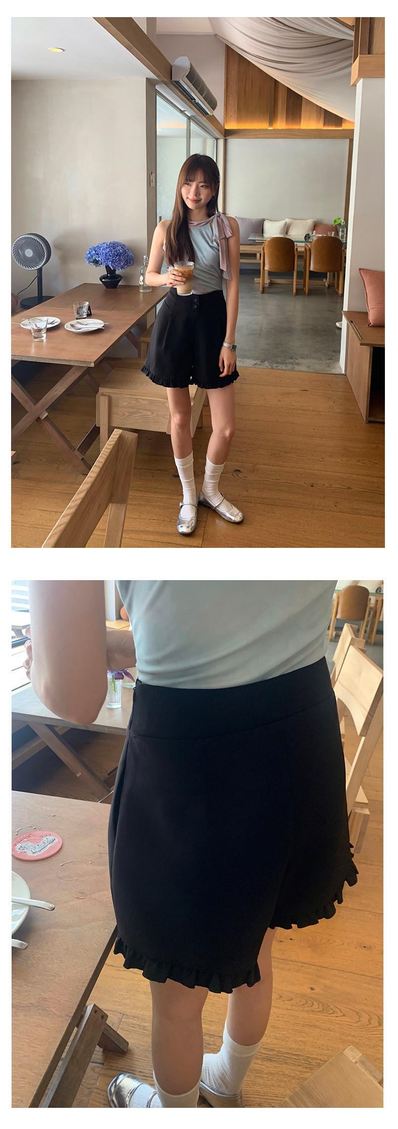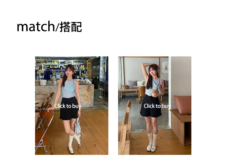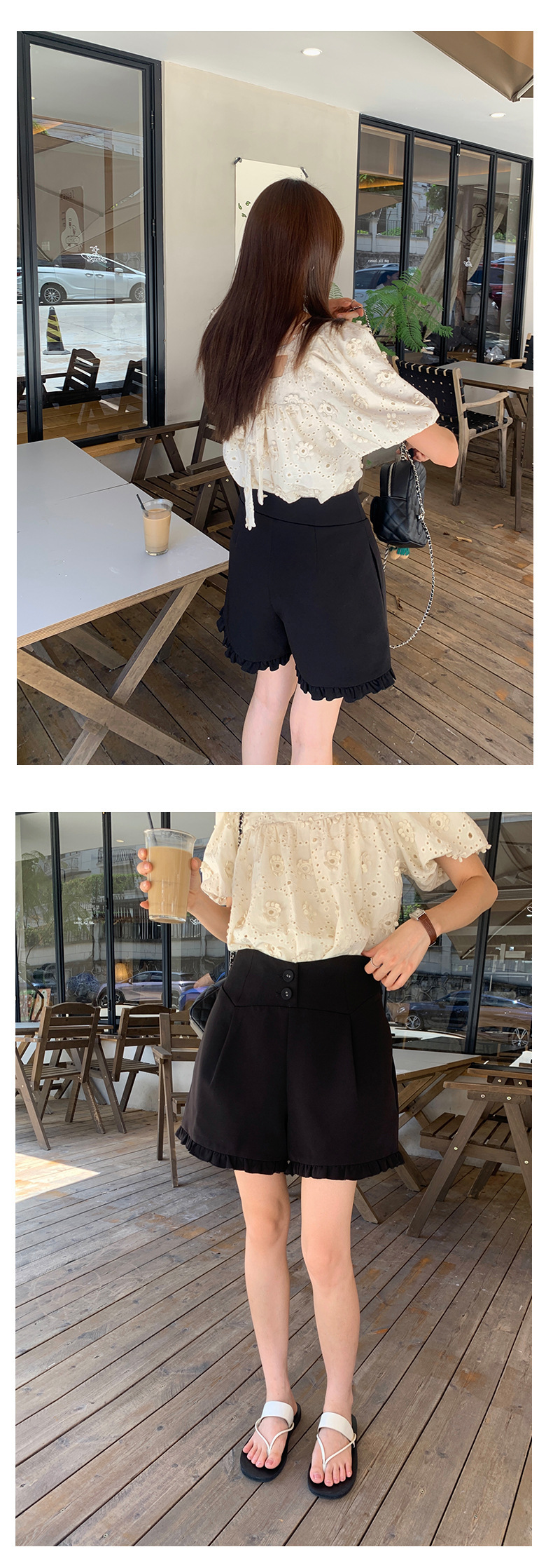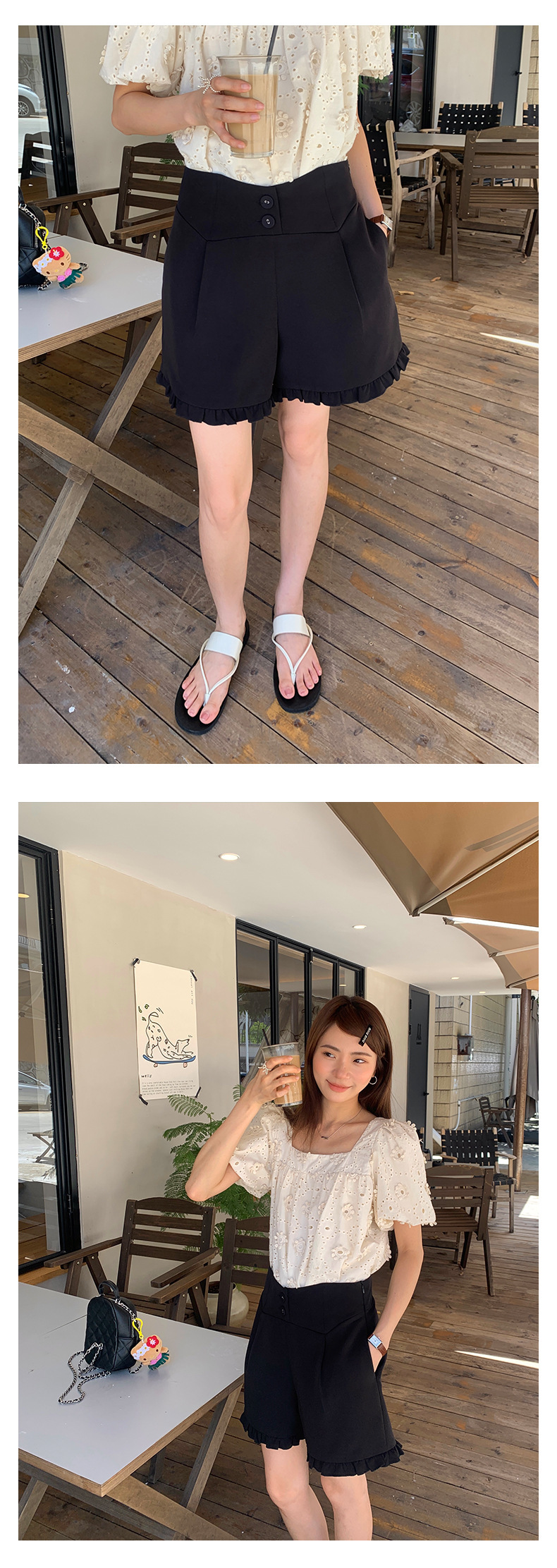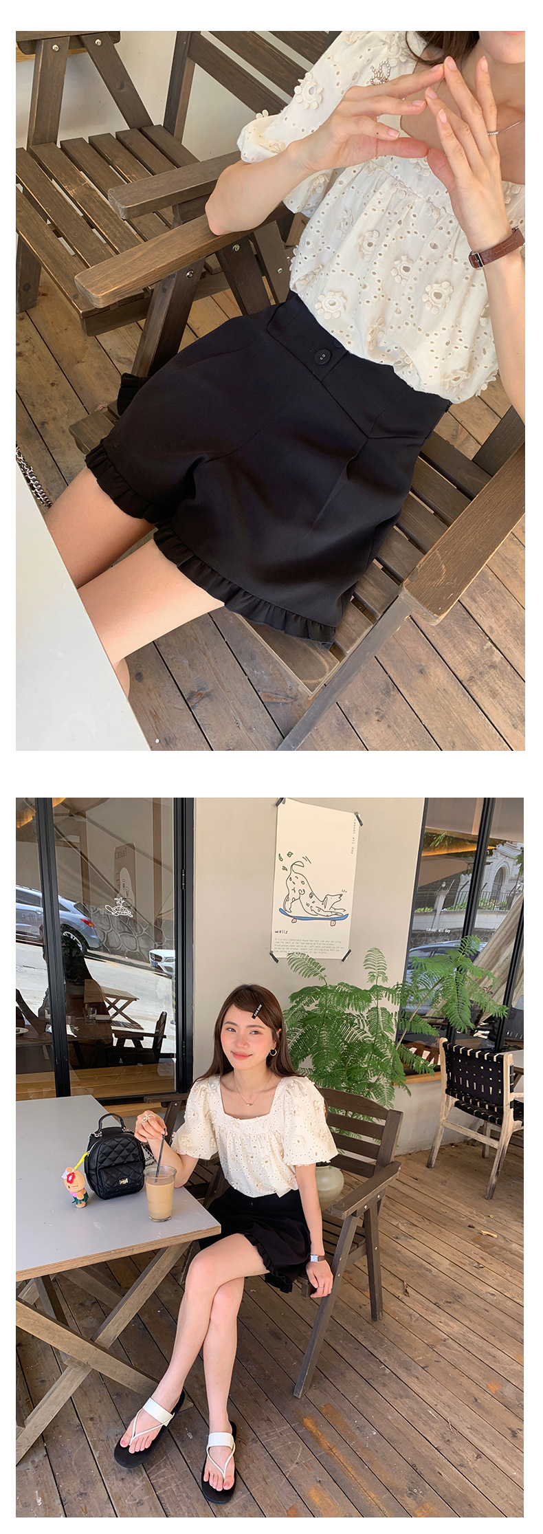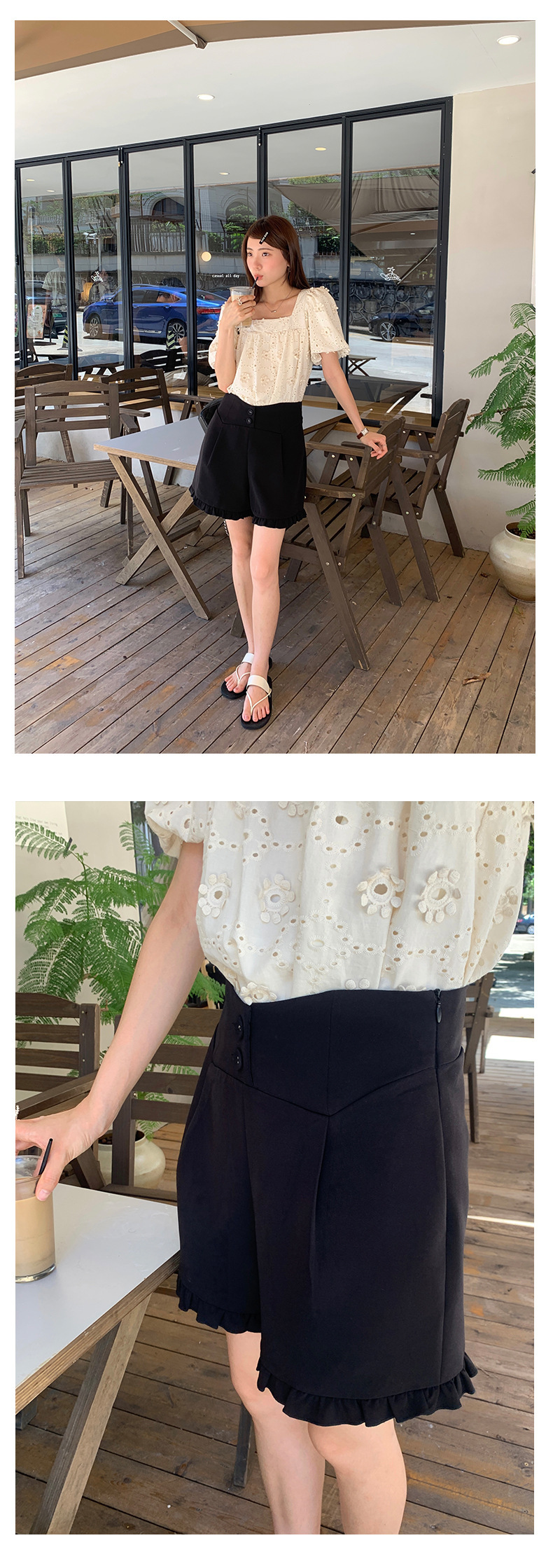 *o-ha-you*【FHZ142KH5062】設計感木耳邊高腰闊腿短褲2024夏季顯瘦A字包臀褲