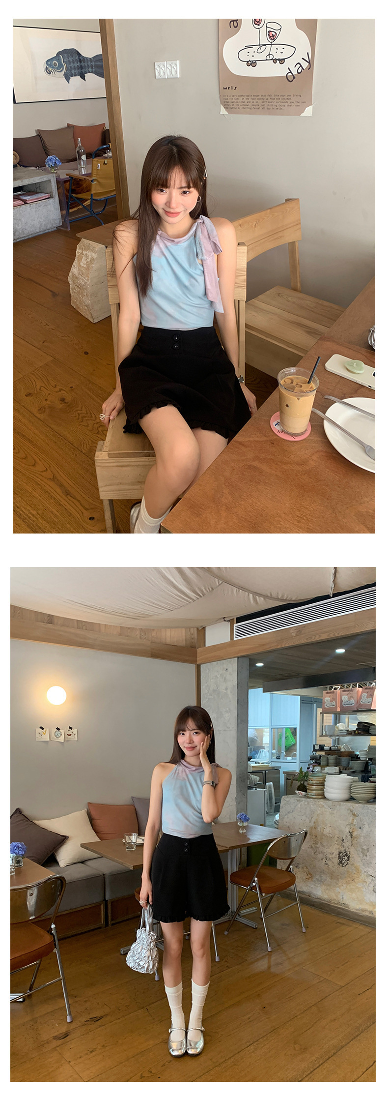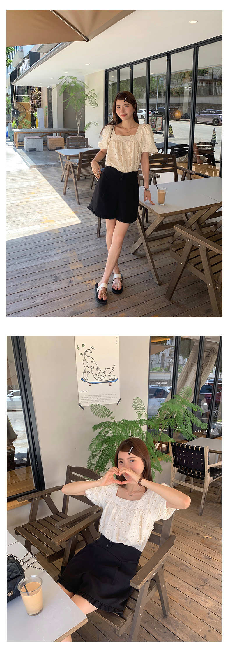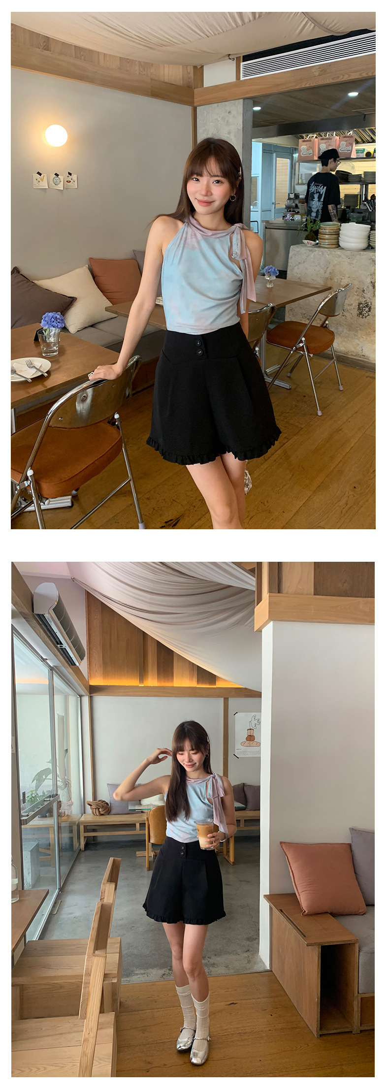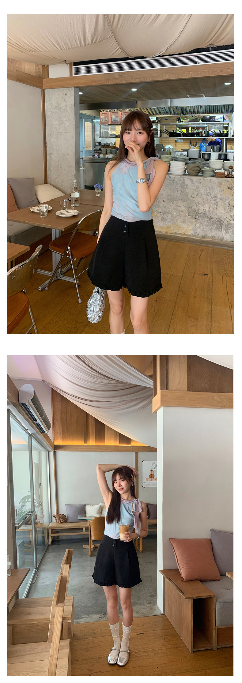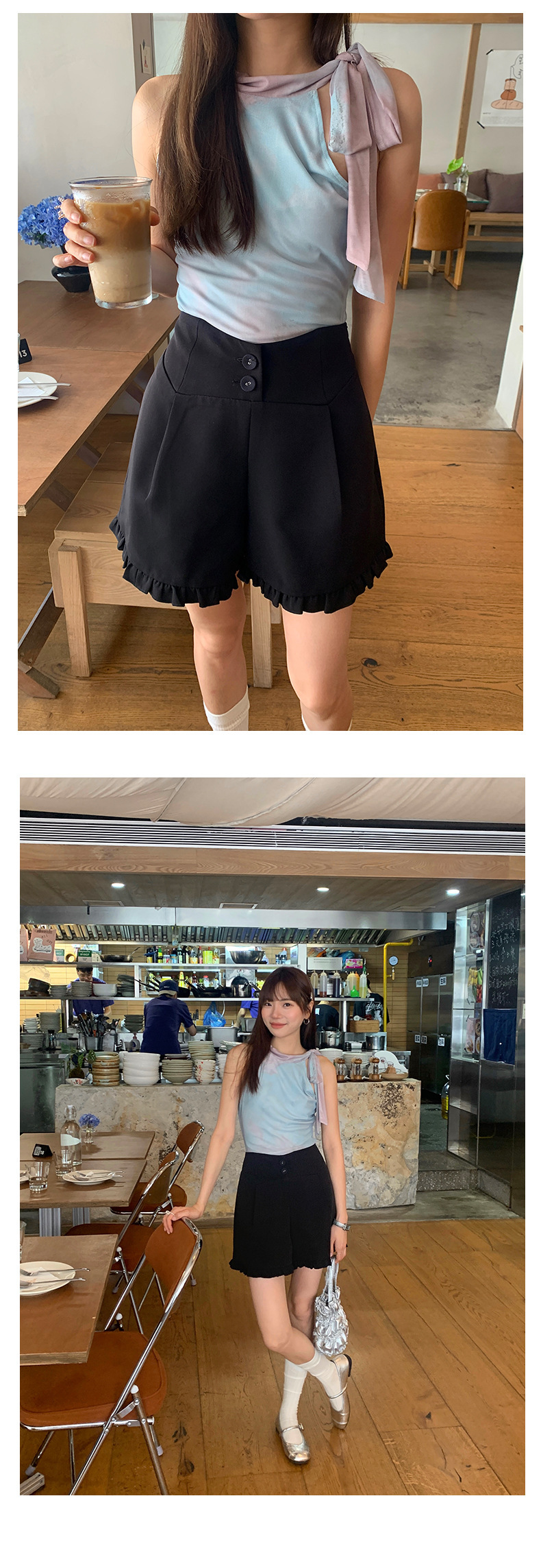 *o-ha-you*【FHZ142KH5062】設計感木耳邊高腰闊腿短褲2024夏季顯瘦A字包臀褲