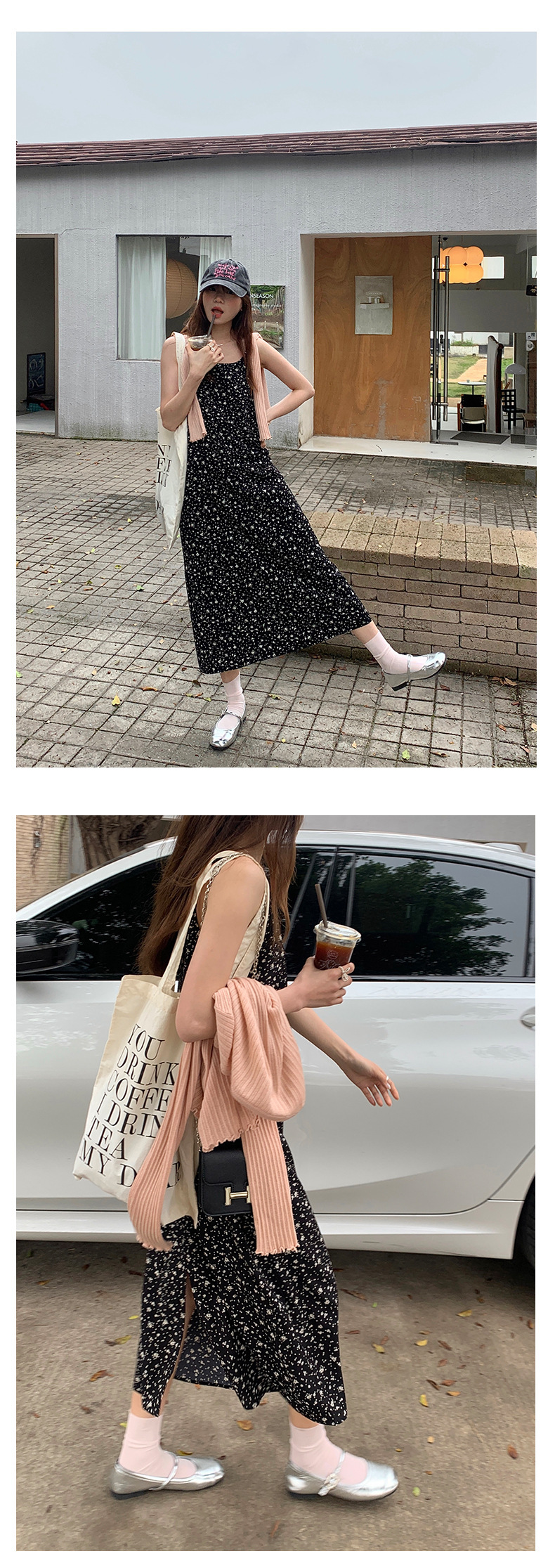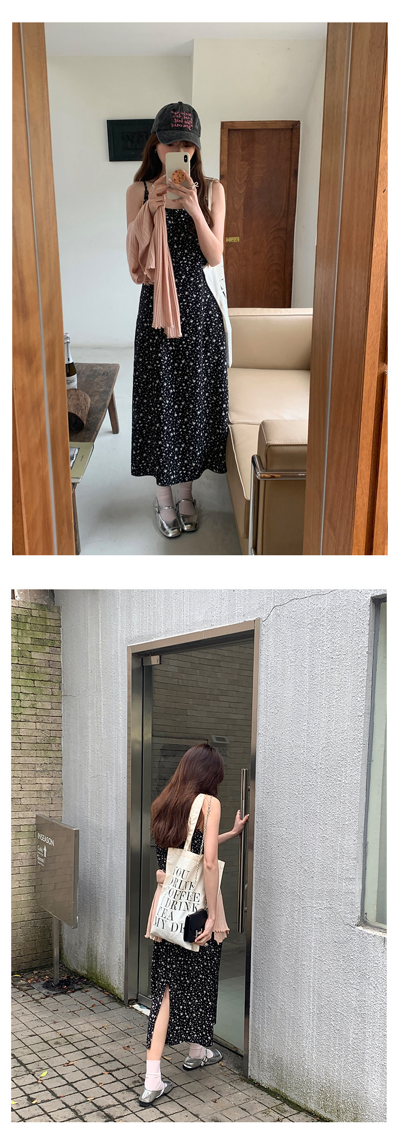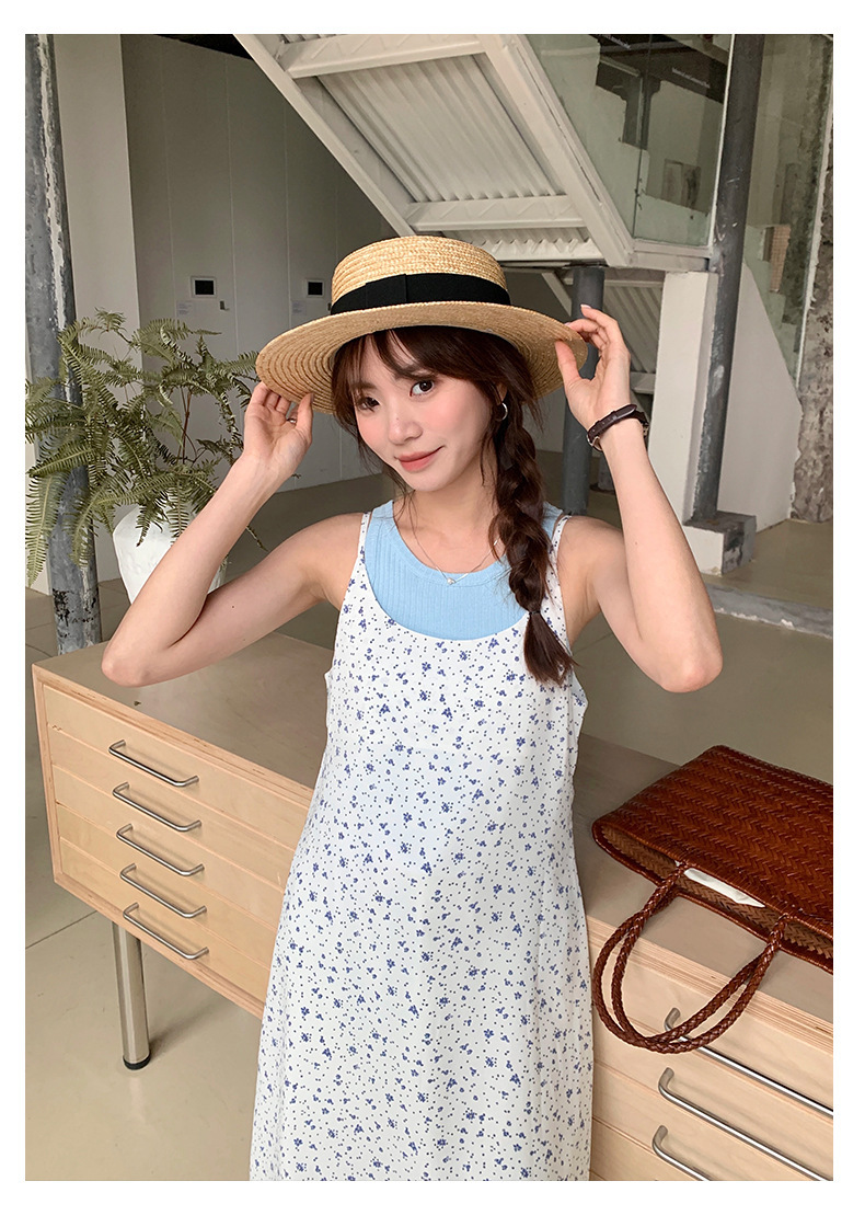 *o-ha-you*【FHZ142LH2027】簡約碎花吊帶連衣裙2024夏季韓版百搭顯瘦過膝裙洋裝-2色-如有需要請先諮詢