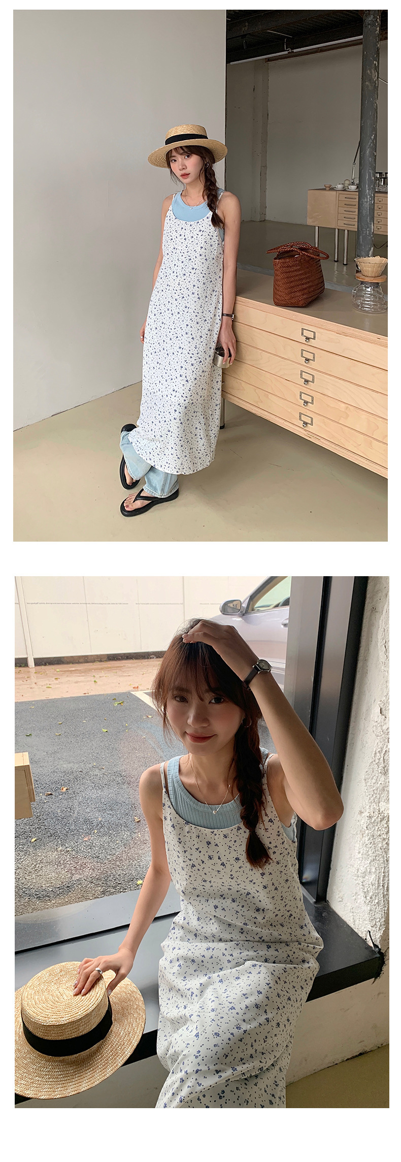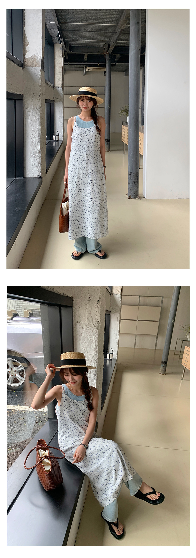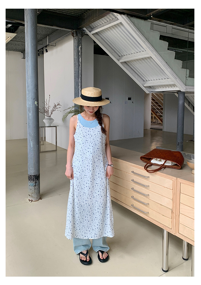 *o-ha-you*【FHZ142LH2027】簡約碎花吊帶連衣裙2024夏季韓版百搭顯瘦過膝裙洋裝-2色-如有需要請先諮詢