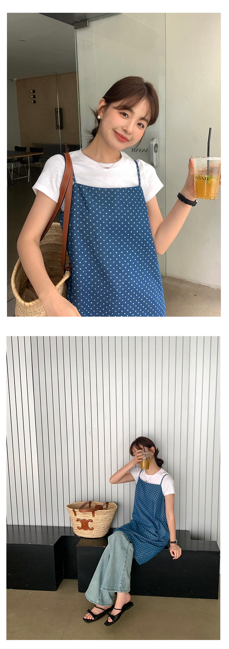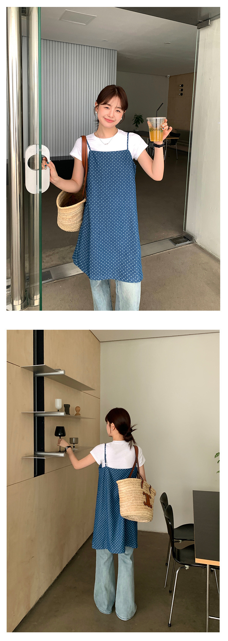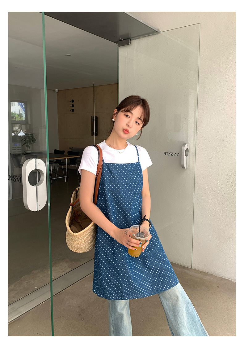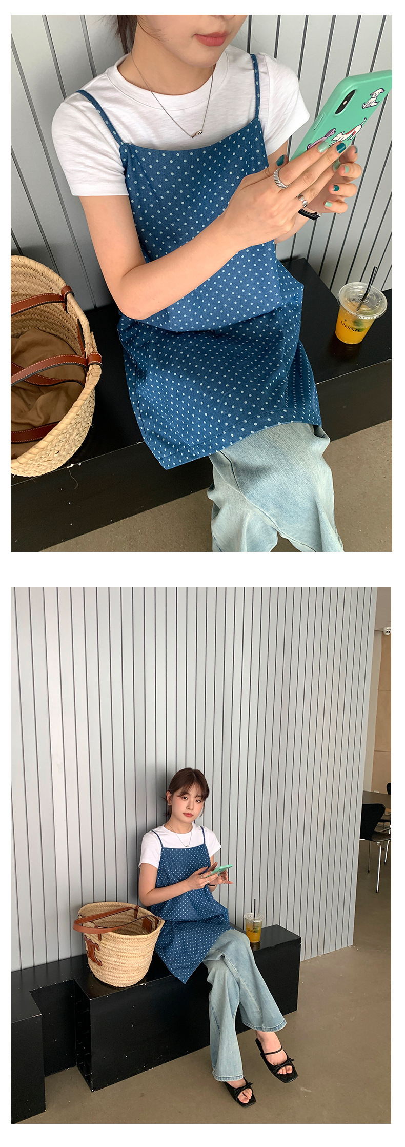 *o-ha-you*【FHZ142LH3057】辣妹風可調式吊帶波點連衣裙2024夏休閒牛仔背心裙洋裝-2色-如有需要請先諮詢