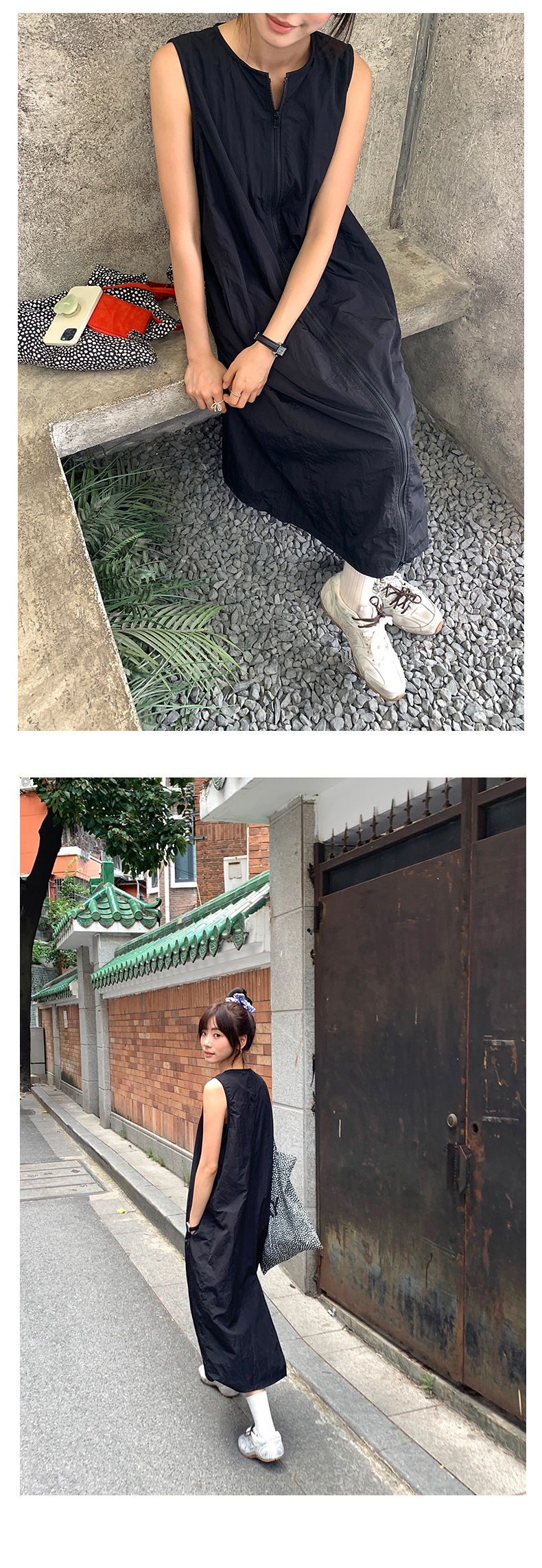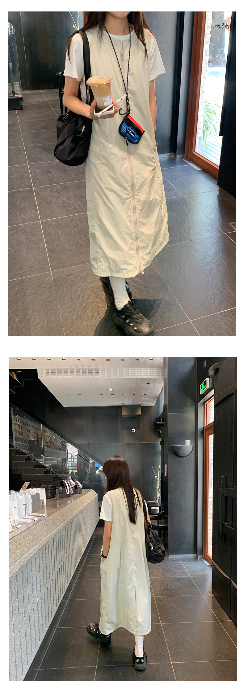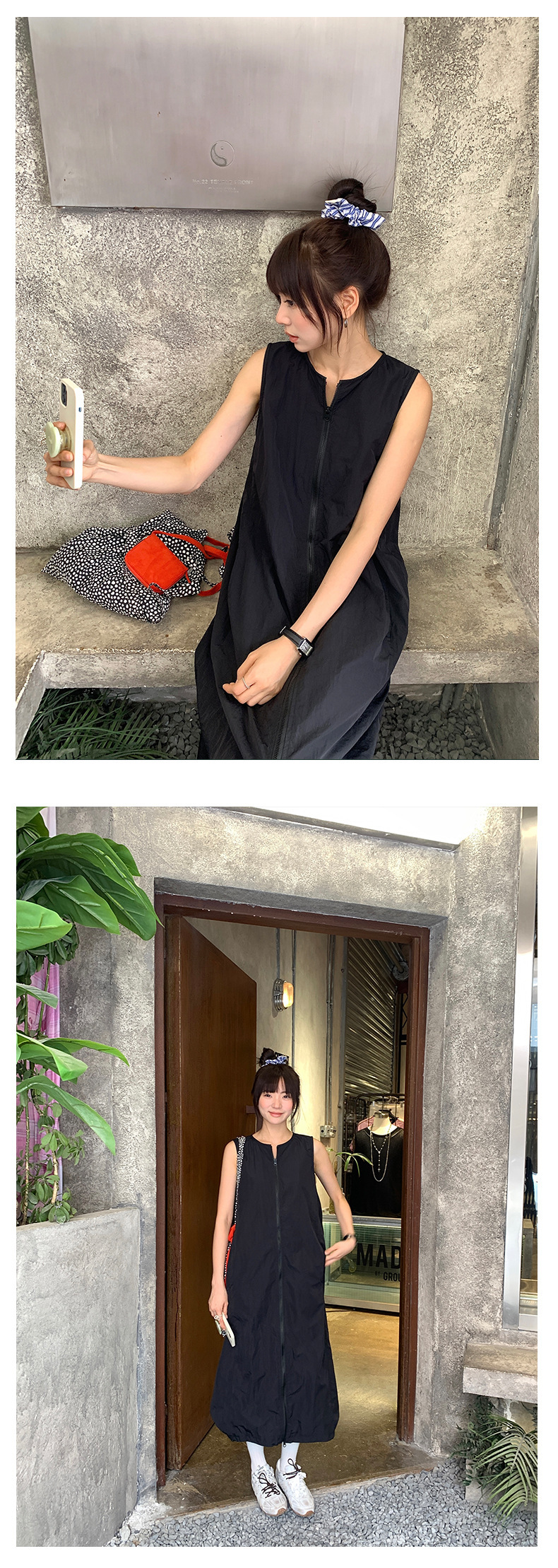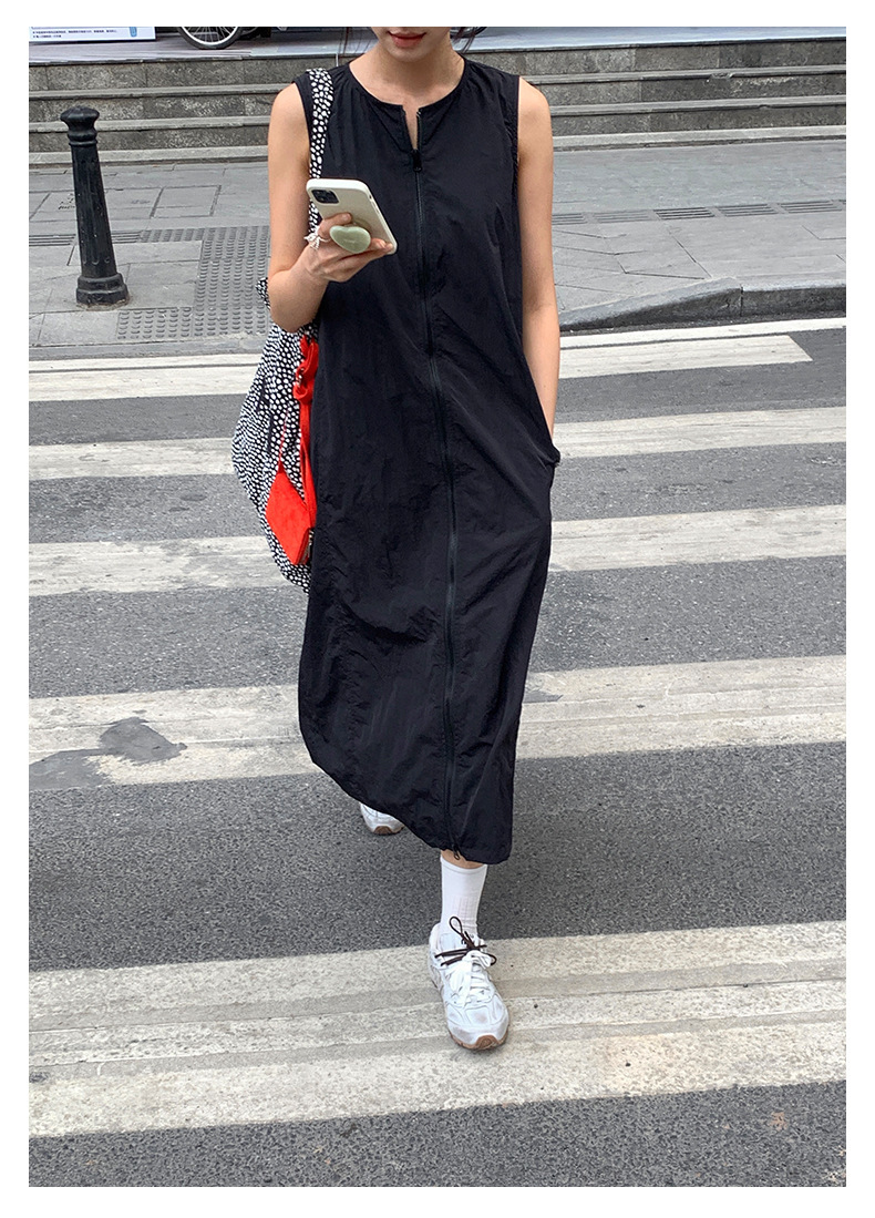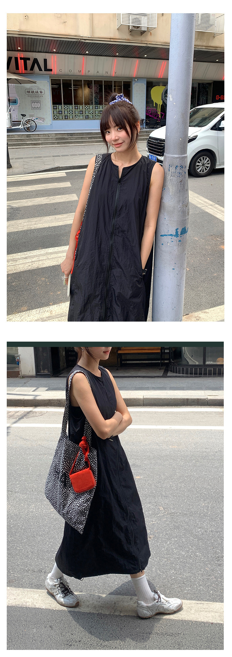 *o-ha-you*【FHZ142LH5070】復古工裝拉鍊背心連衣裙2024夏季寬鬆無袖連身長裙洋裝-2色