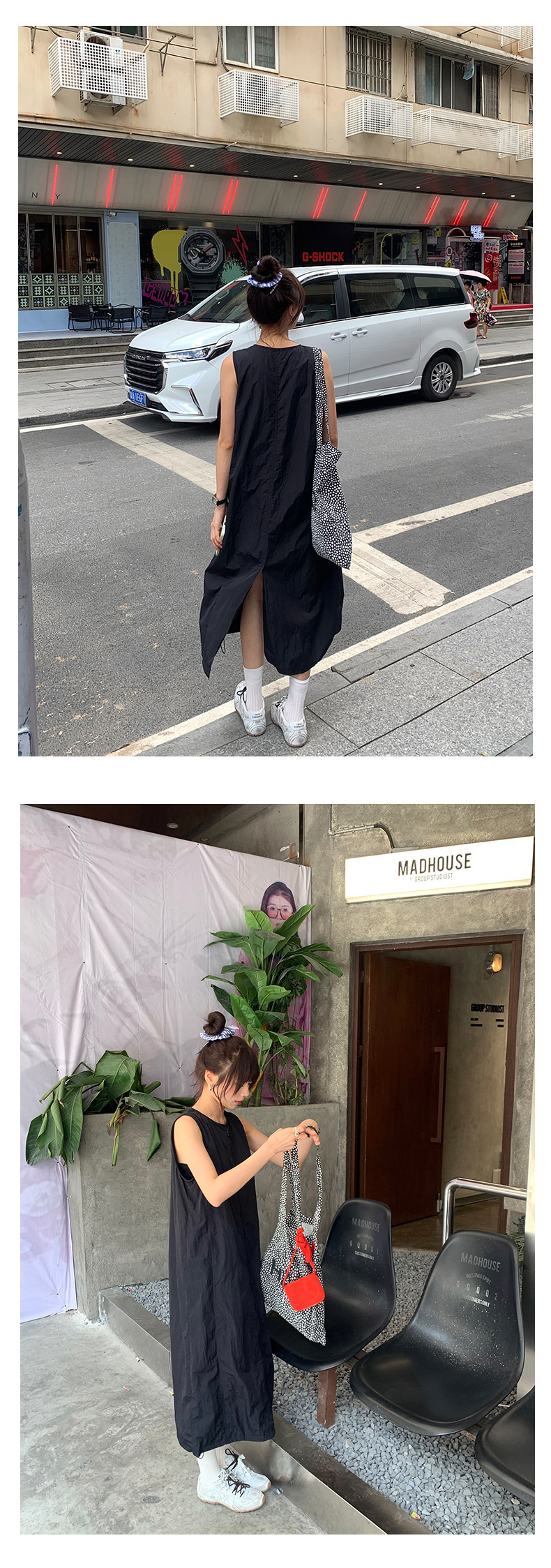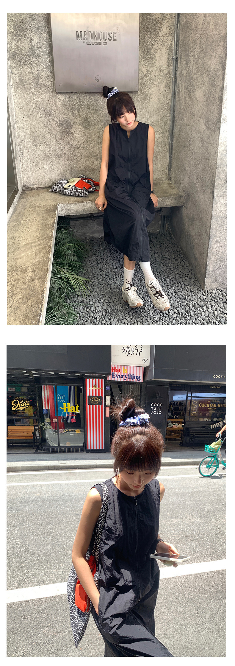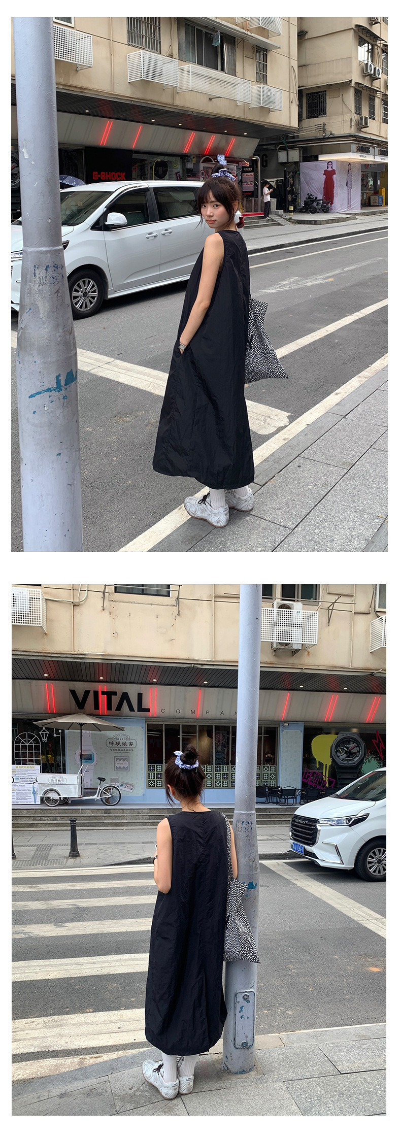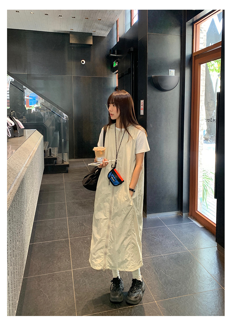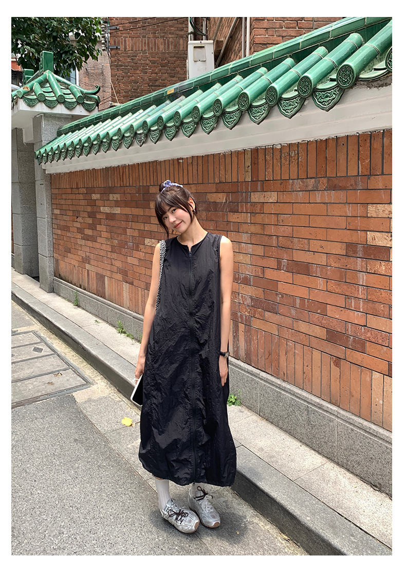 *o-ha-you*【FHZ142LH5070】復古工裝拉鍊背心連衣裙2024夏季寬鬆無袖連身長裙洋裝-2色