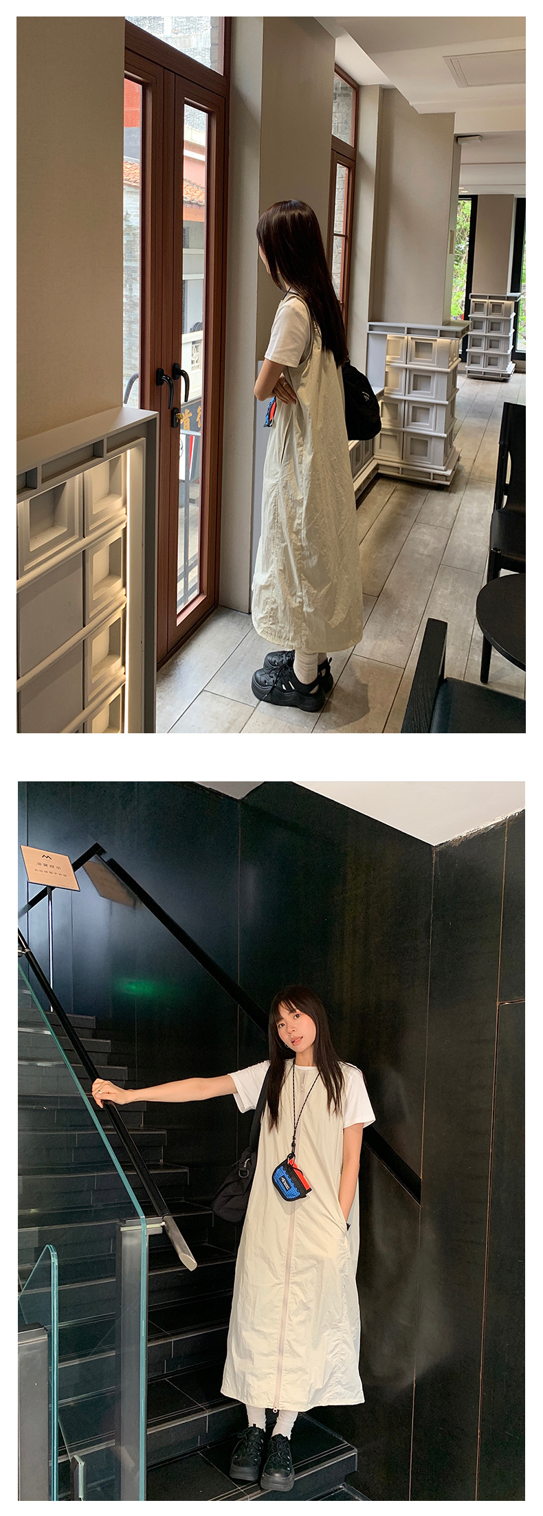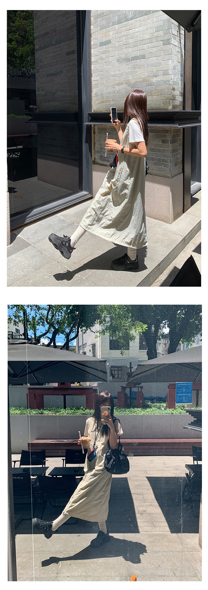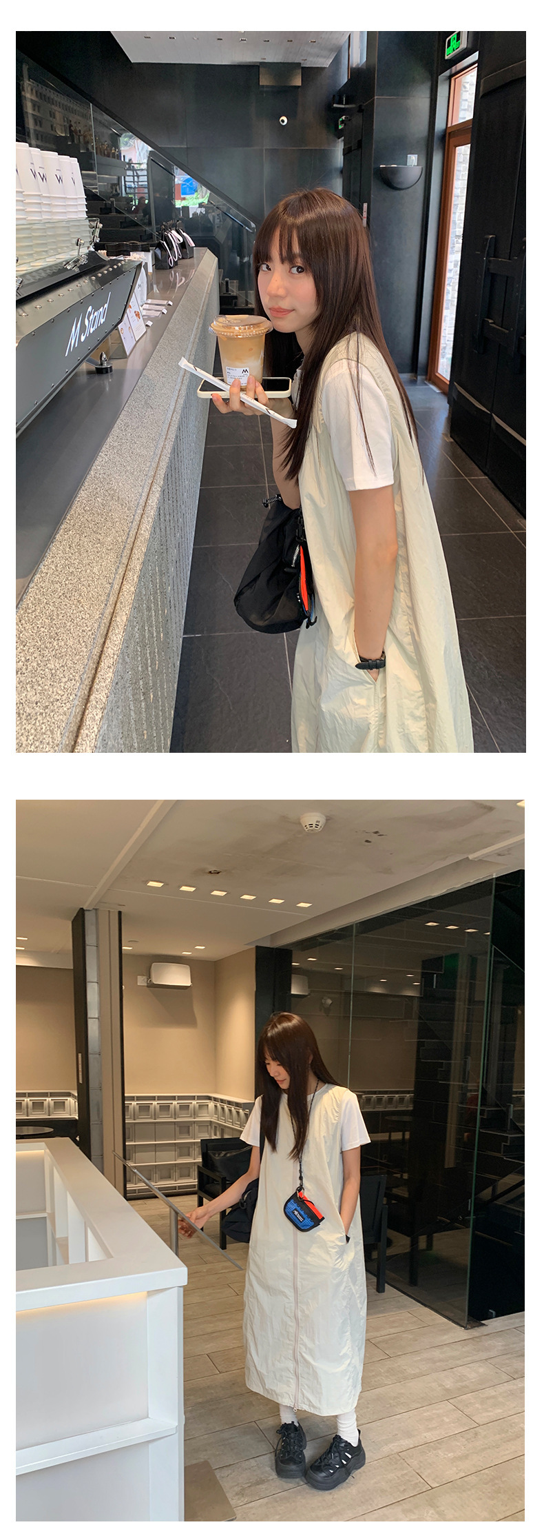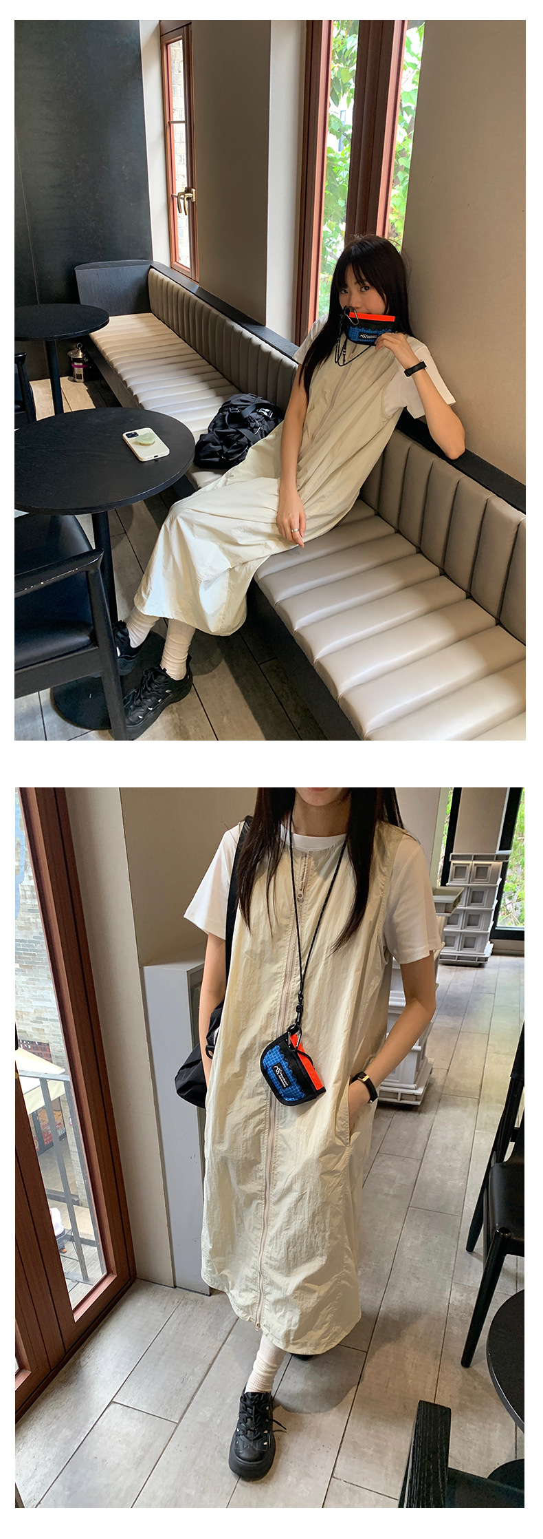 *o-ha-you*【FHZ142LH5070】復古工裝拉鍊背心連衣裙2024夏季寬鬆無袖連身長裙洋裝-2色