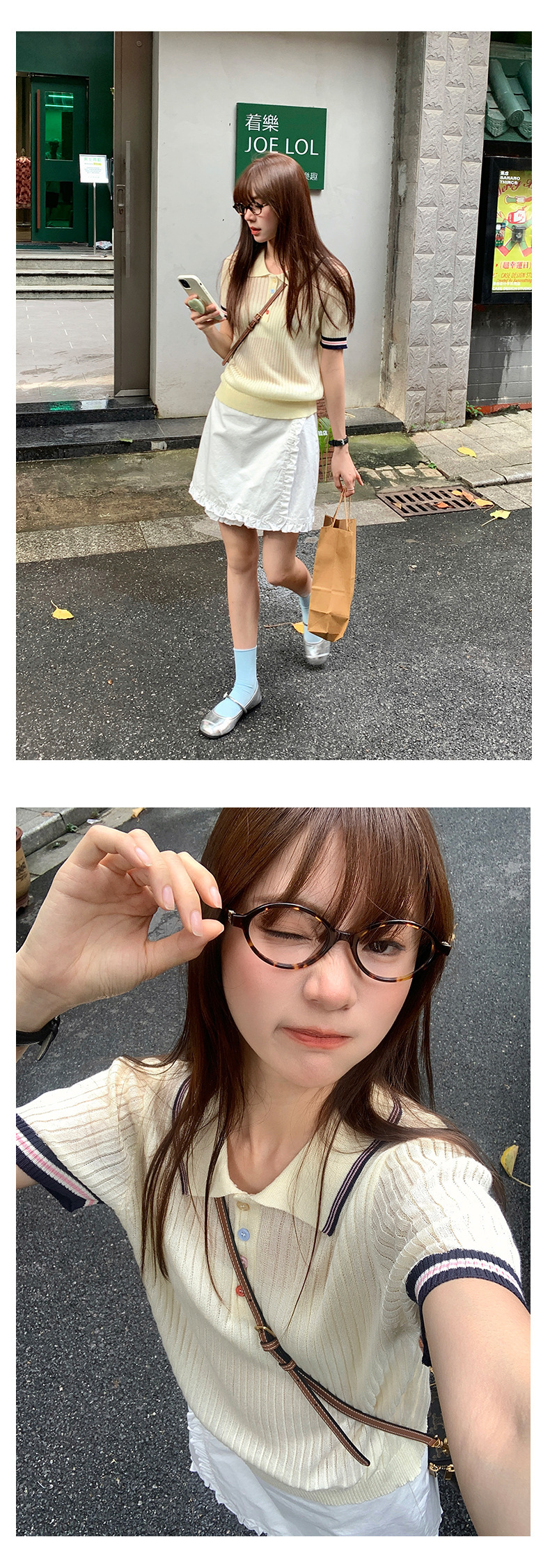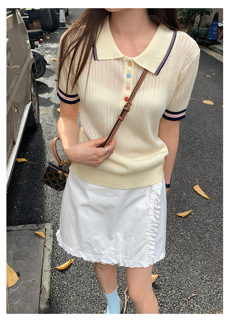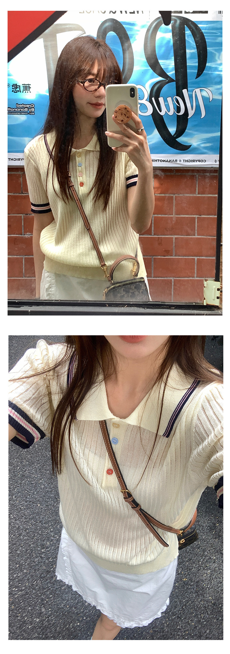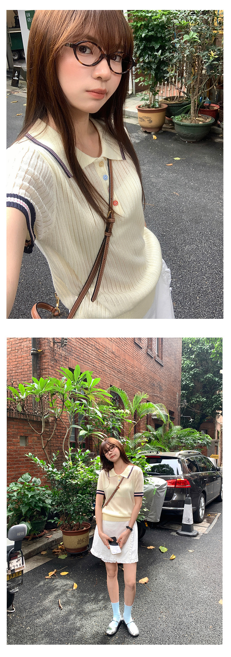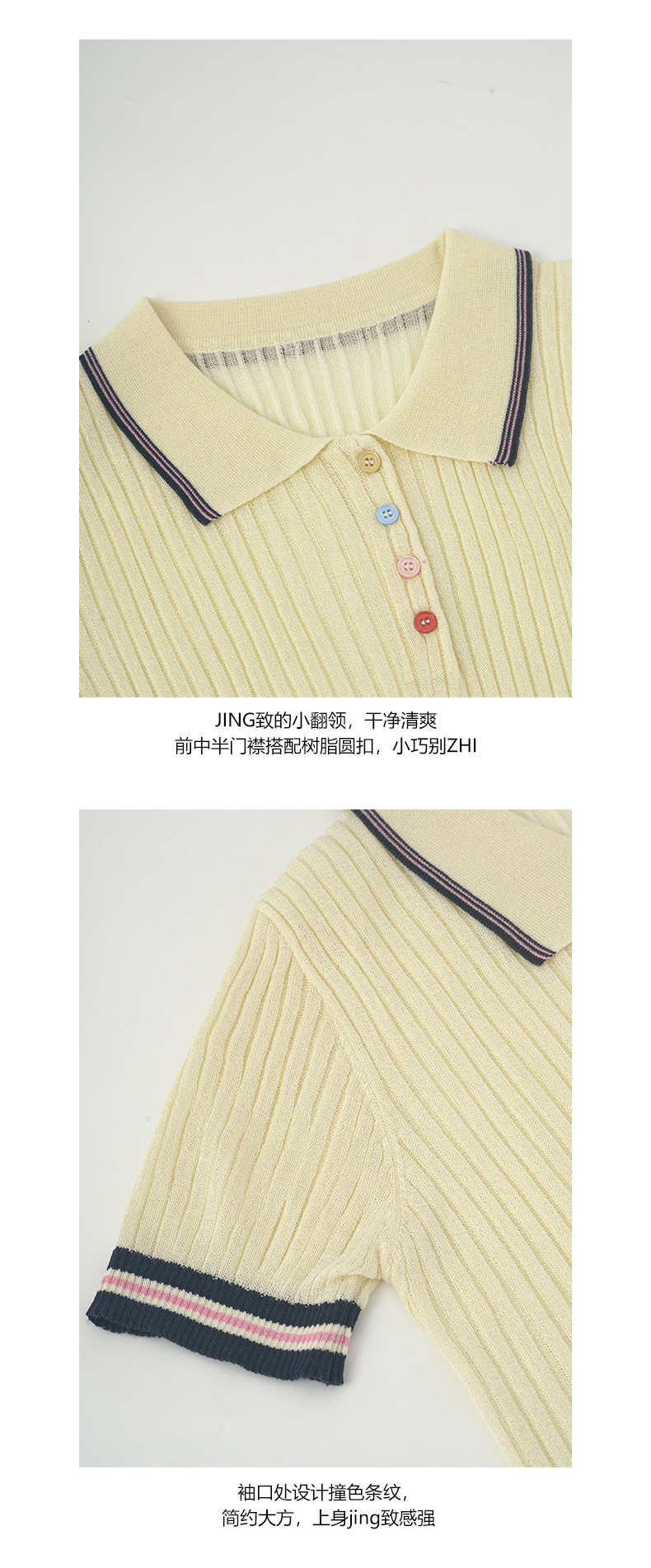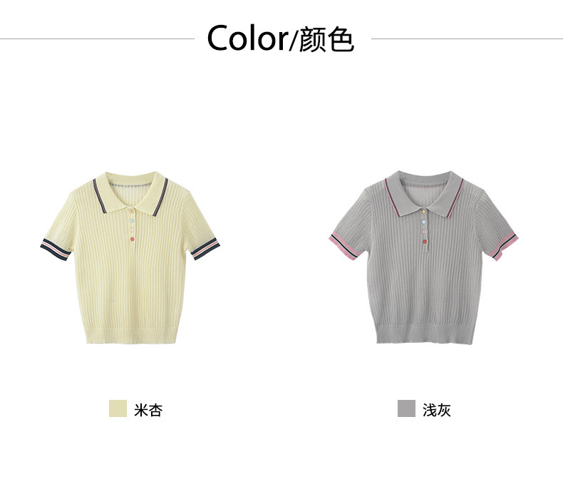 *o-ha-you*【FHZ142MH5030】法式Polo衫針織短袖T恤2024夏季修身正肩短款上衣-2色