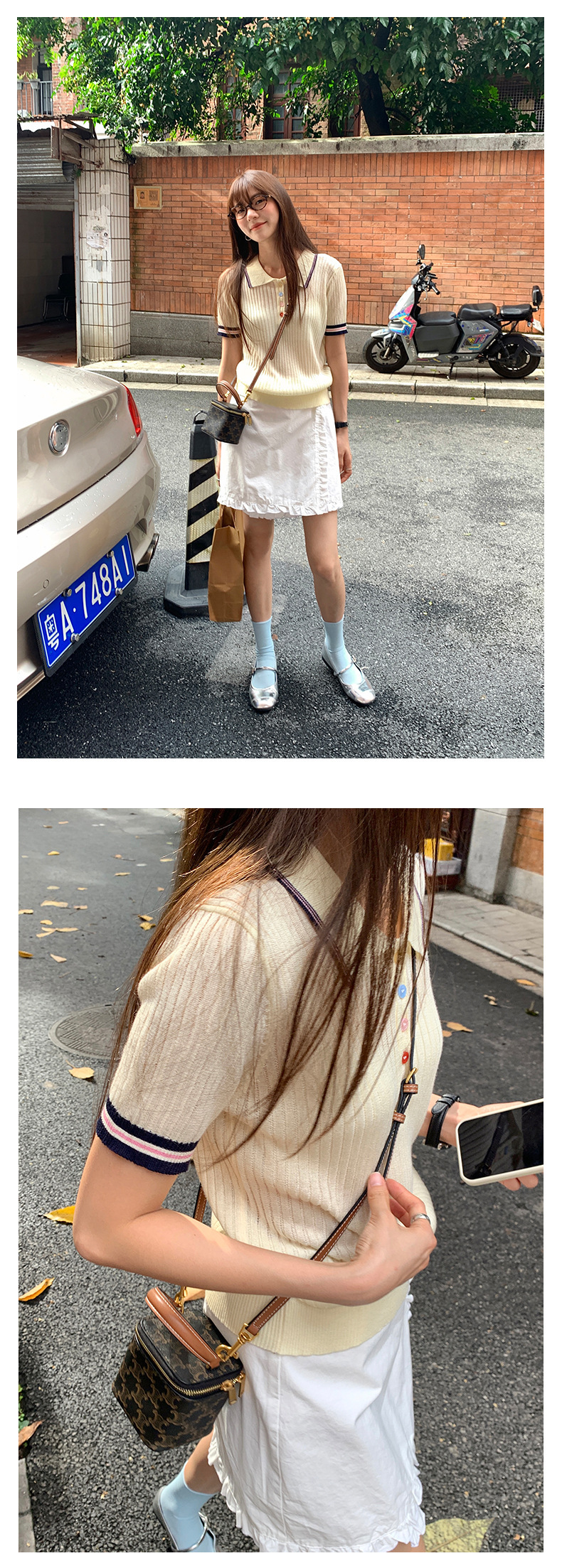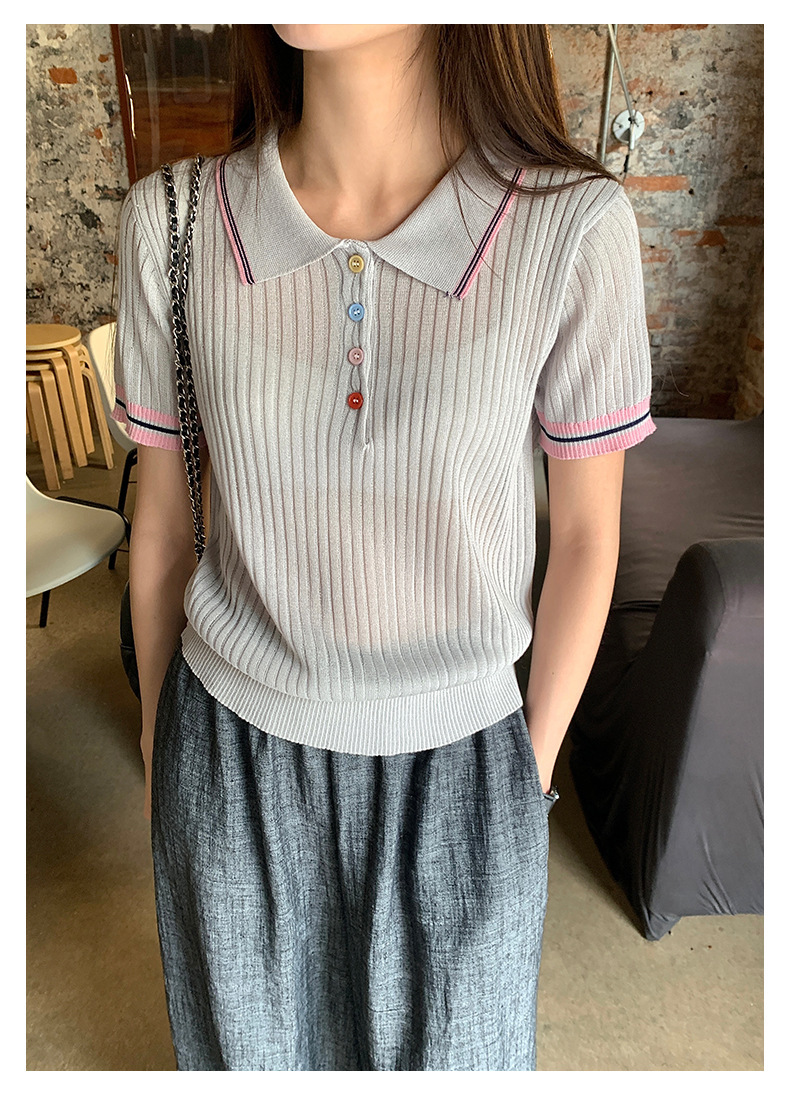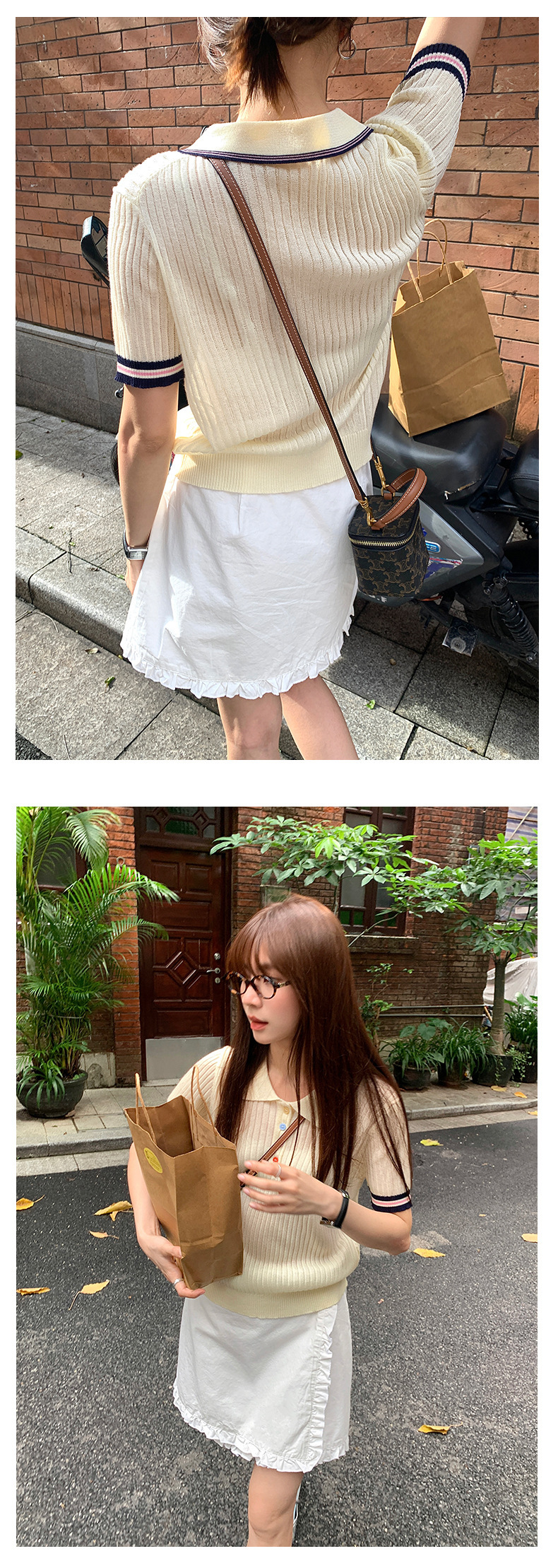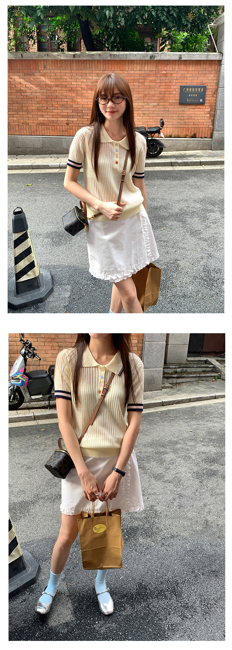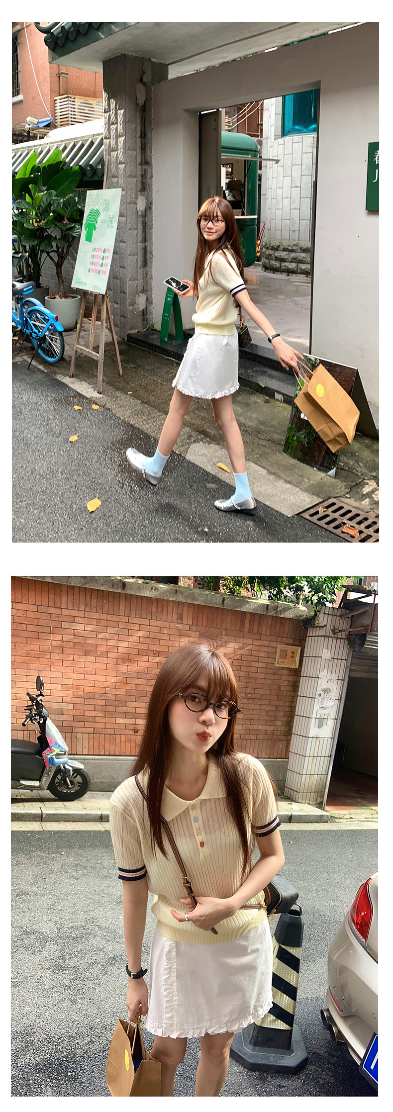 *o-ha-you*【FHZ142MH5030】法式Polo衫針織短袖T恤2024夏季修身正肩短款上衣-2色