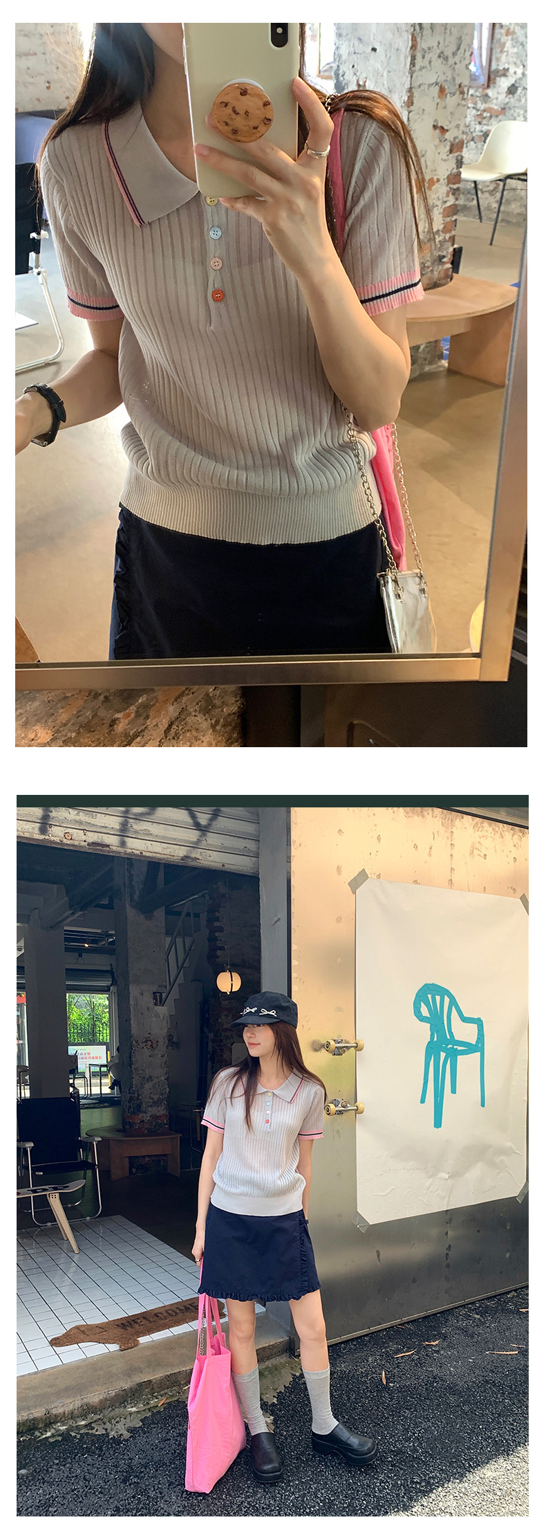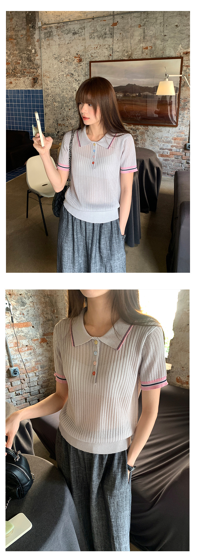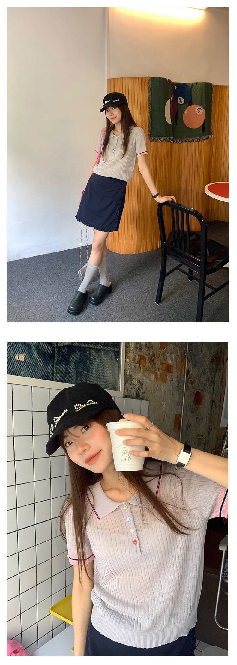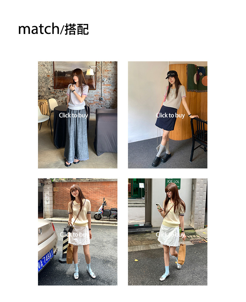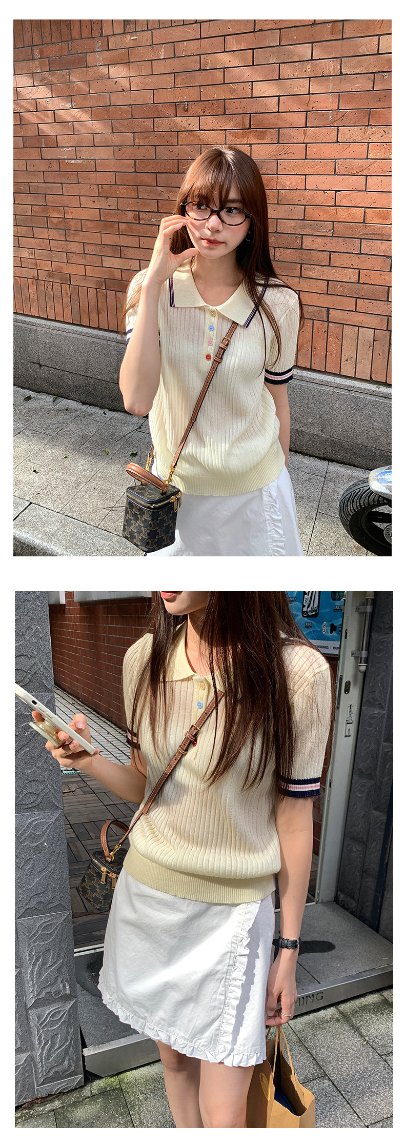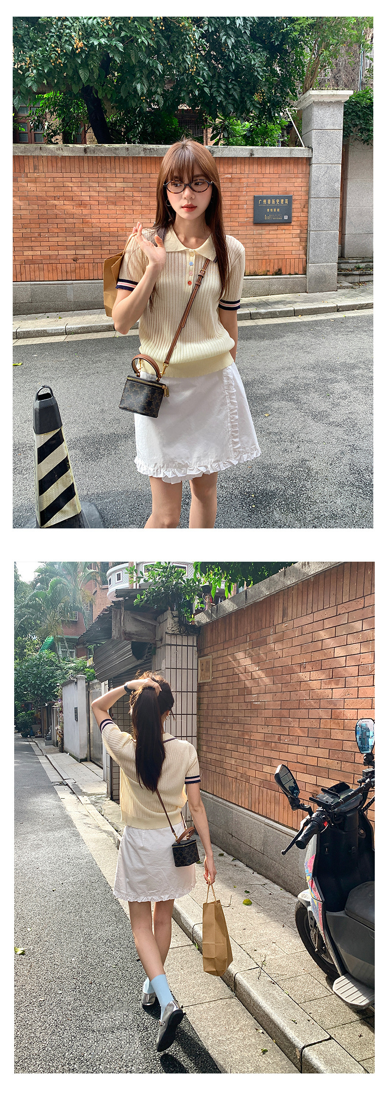 *o-ha-you*【FHZ142MH5030】法式Polo衫針織短袖T恤2024夏季修身正肩短款上衣-2色