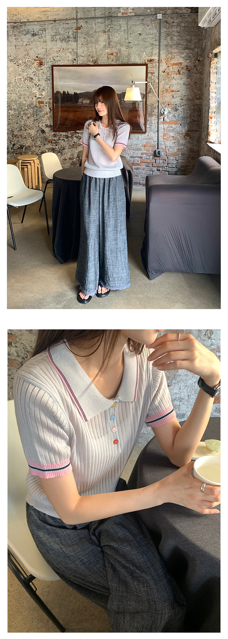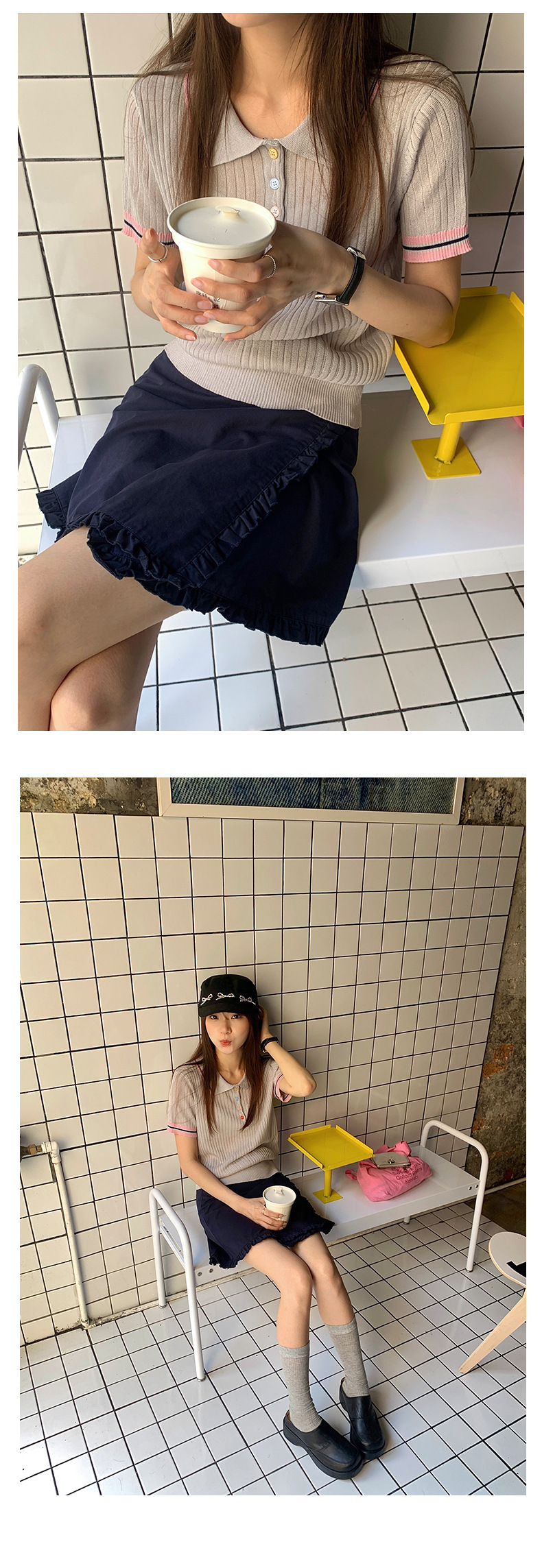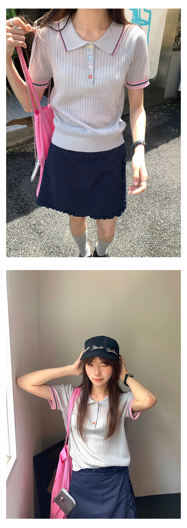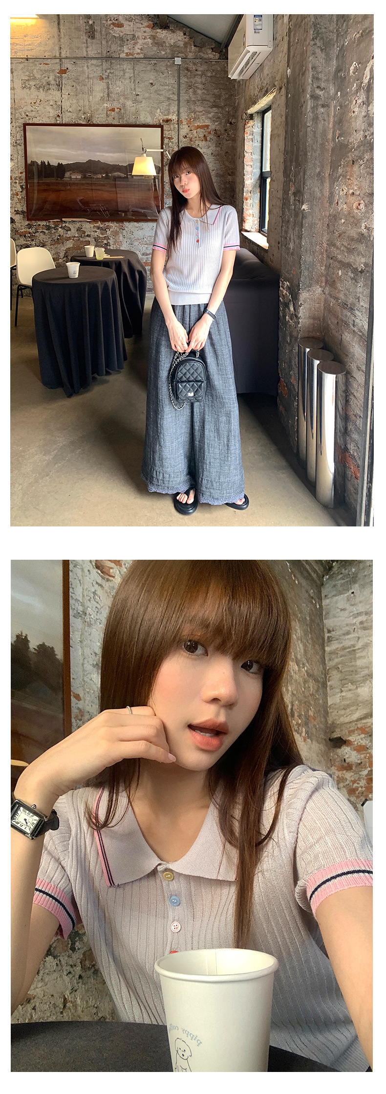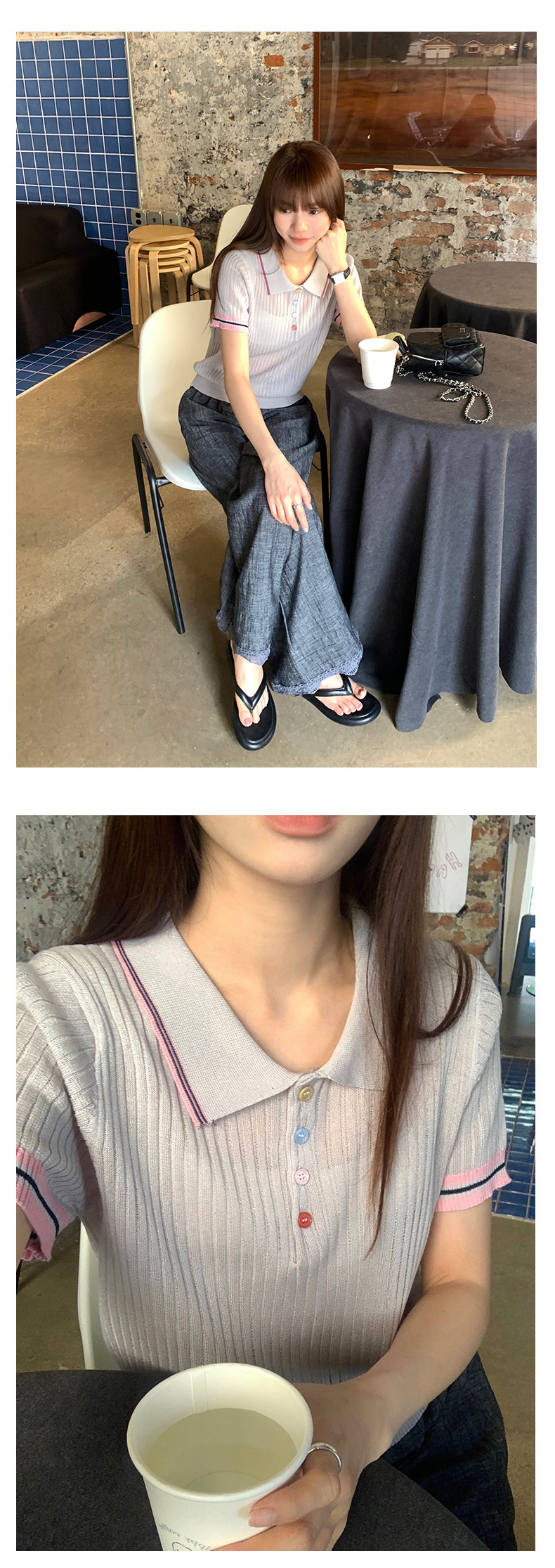 *o-ha-you*【FHZ142MH5030】法式Polo衫針織短袖T恤2024夏季修身正肩短款上衣-2色