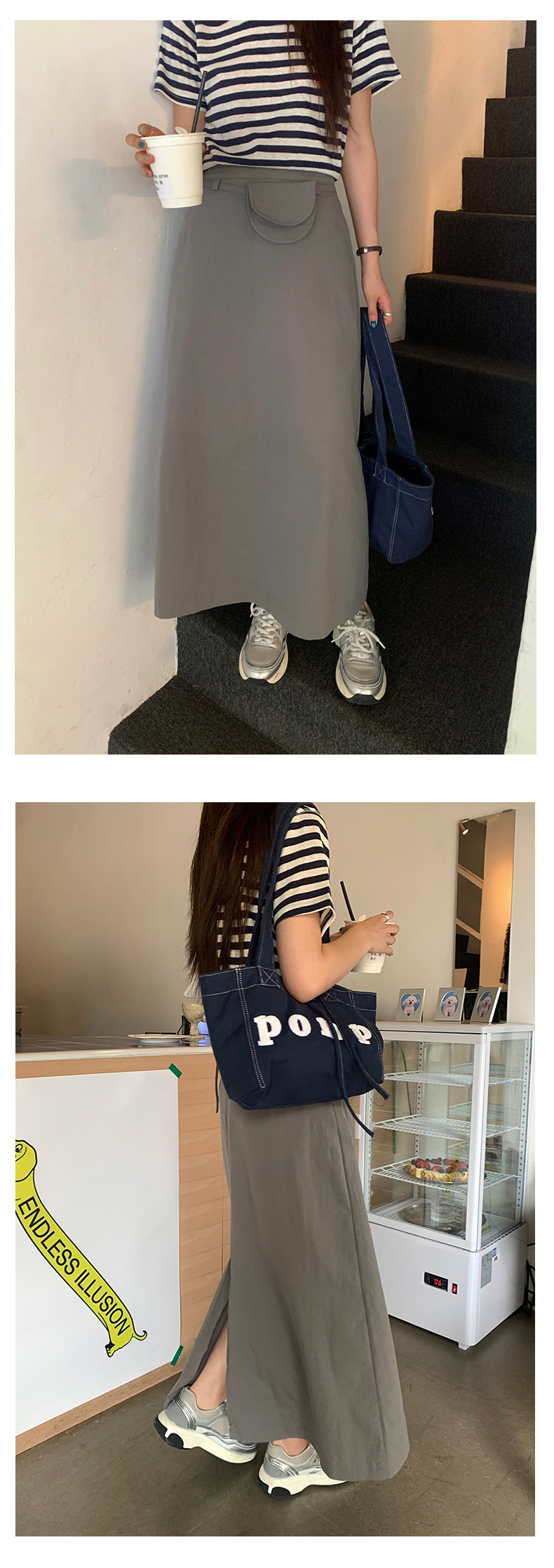 *o-ha-you*【FHZ142QH3027】甜酷配腰包高腰工裝半身裙2024夏季百搭顯瘦A字裙-2色-如有需要請先諮詢
