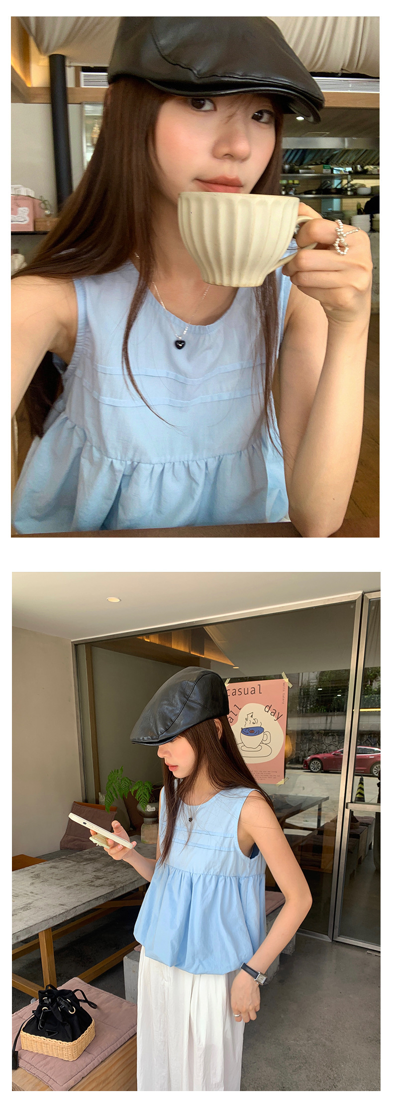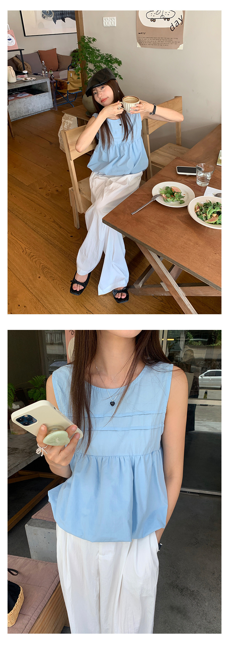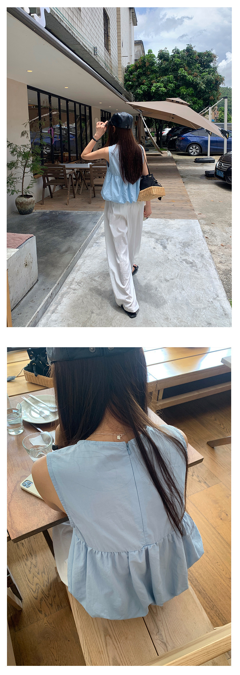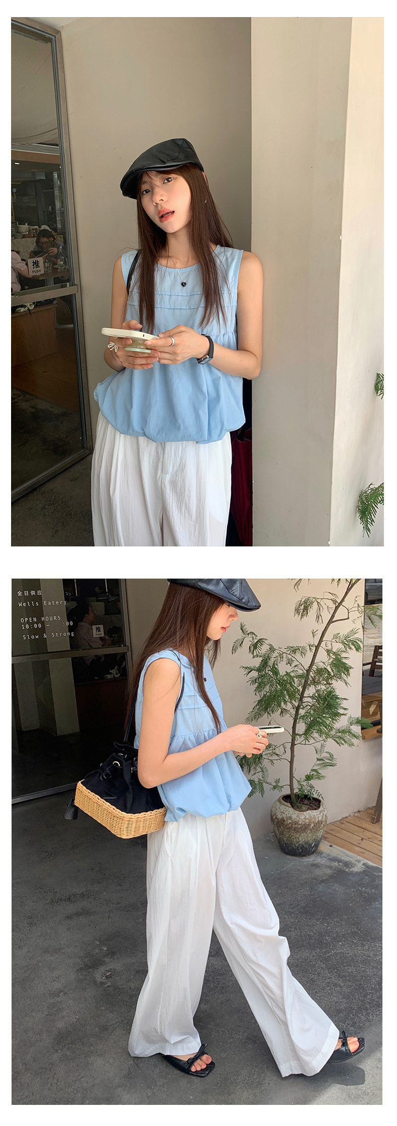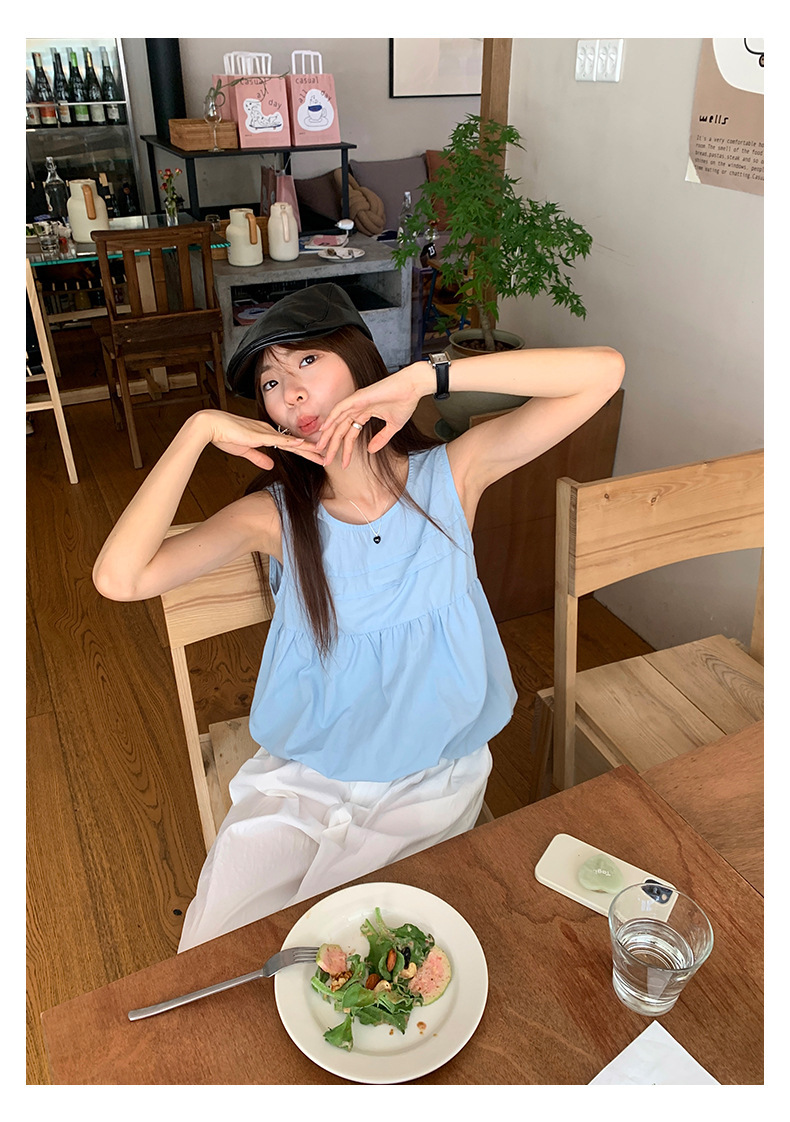 *o-ha-you*【FHZ142SH4076】甜系圓領背心襯衣襯衫2024夏季寬鬆顯瘦無袖小衫-2色