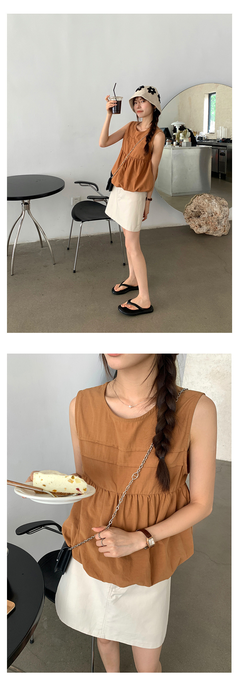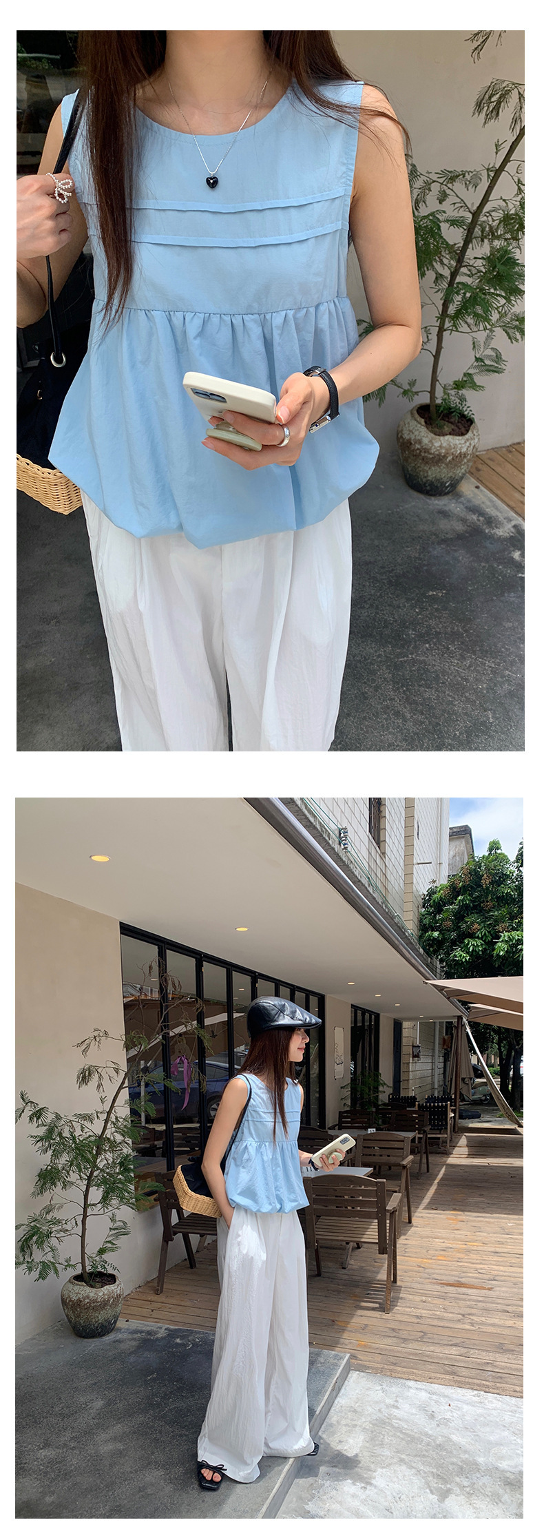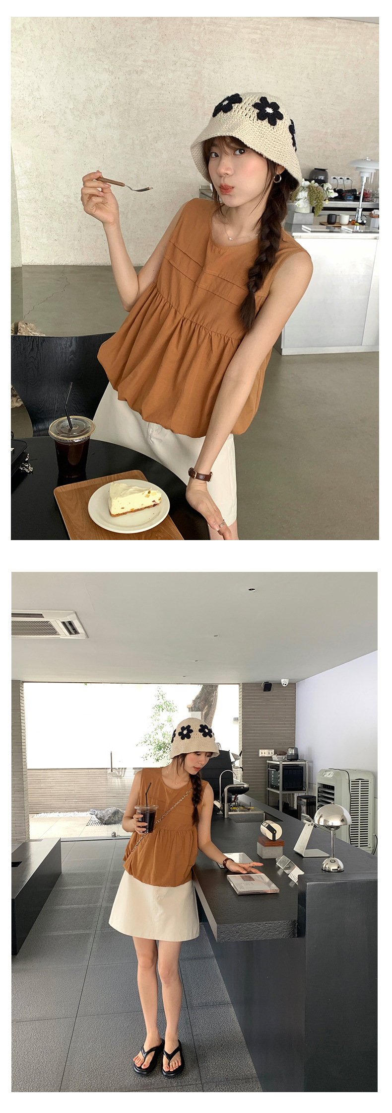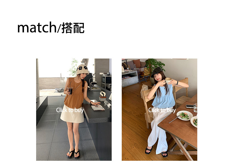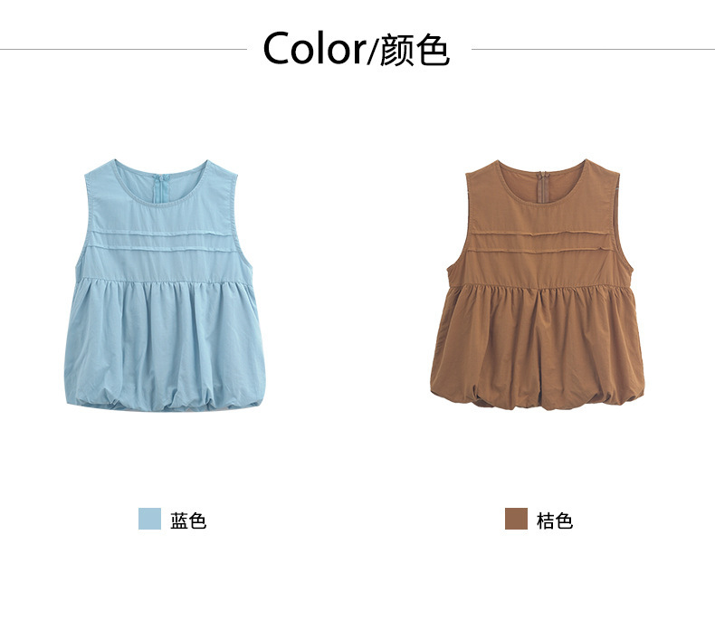 *o-ha-you*【FHZ142SH4076】甜系圓領背心襯衣襯衫2024夏季寬鬆顯瘦無袖小衫-2色
