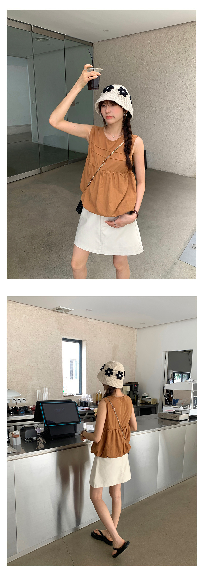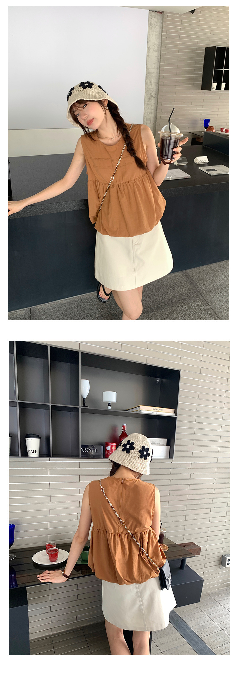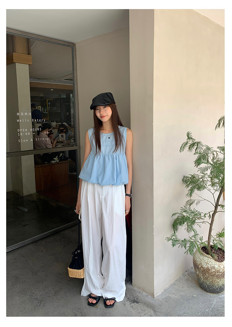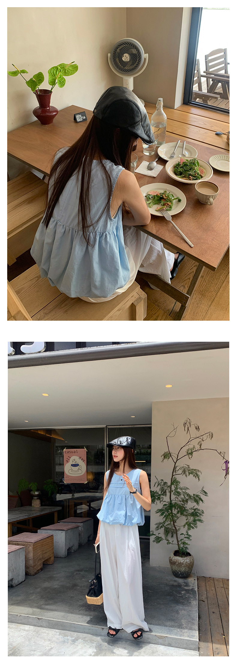*o-ha-you*【FHZ142SH4076】甜系圓領背心襯衣襯衫2024夏季寬鬆顯瘦無袖小衫-2色