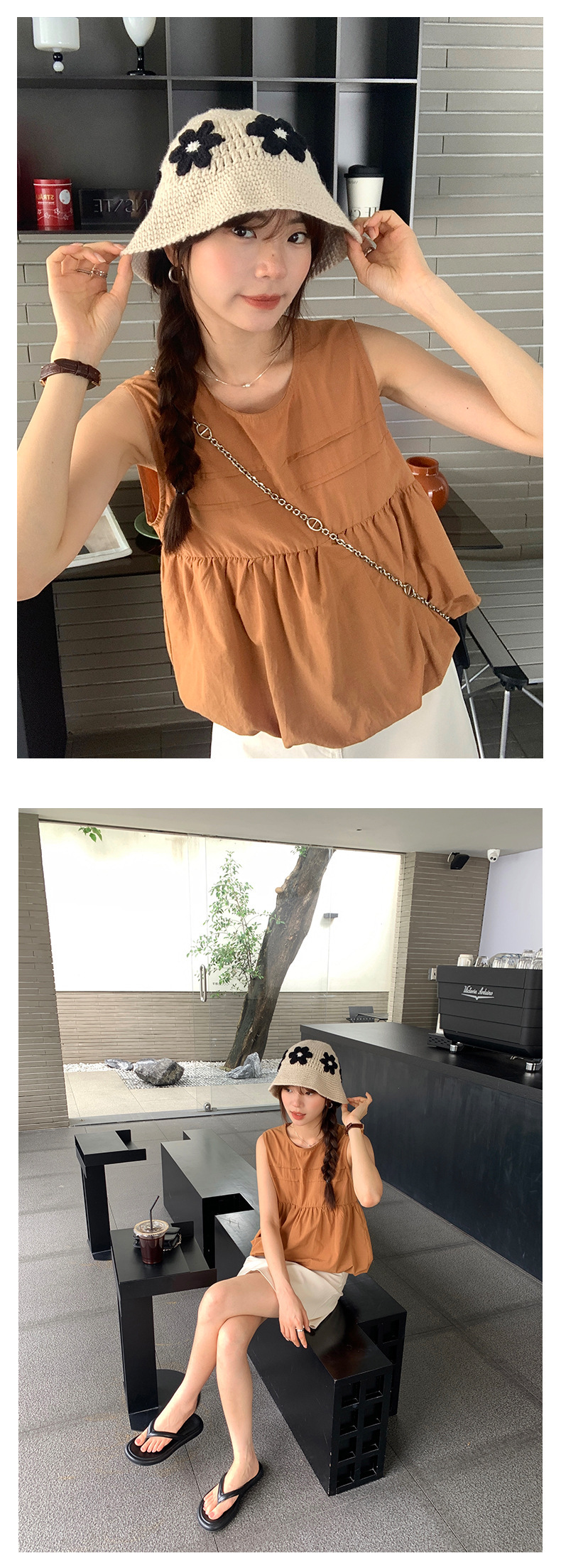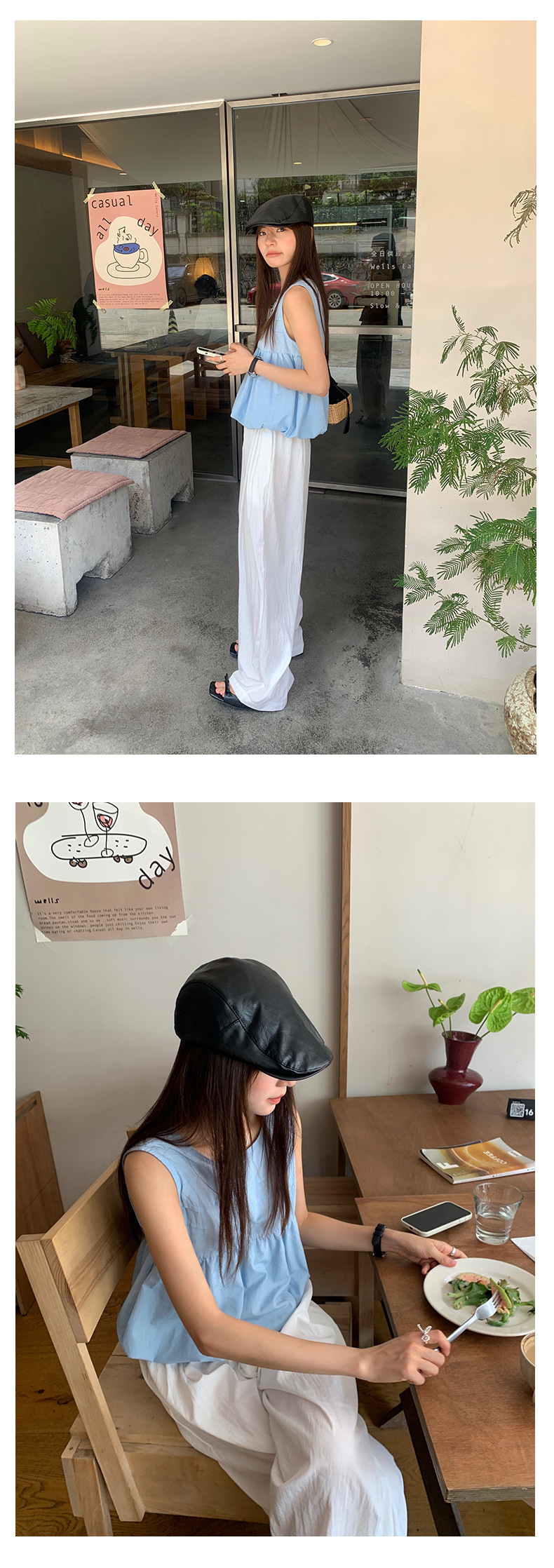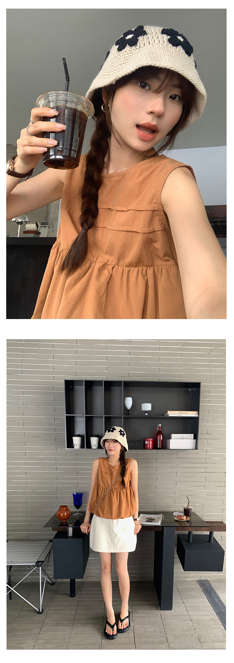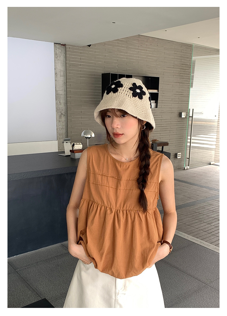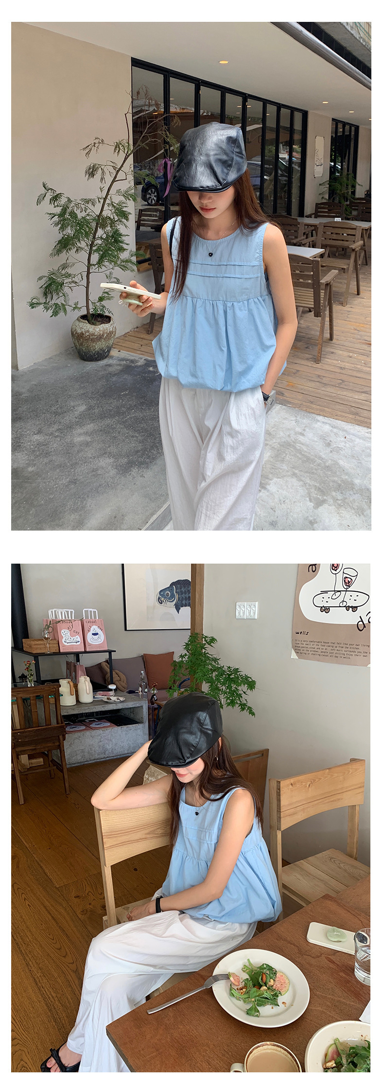 *o-ha-you*【FHZ142SH4076】甜系圓領背心襯衣襯衫2024夏季寬鬆顯瘦無袖小衫-2色